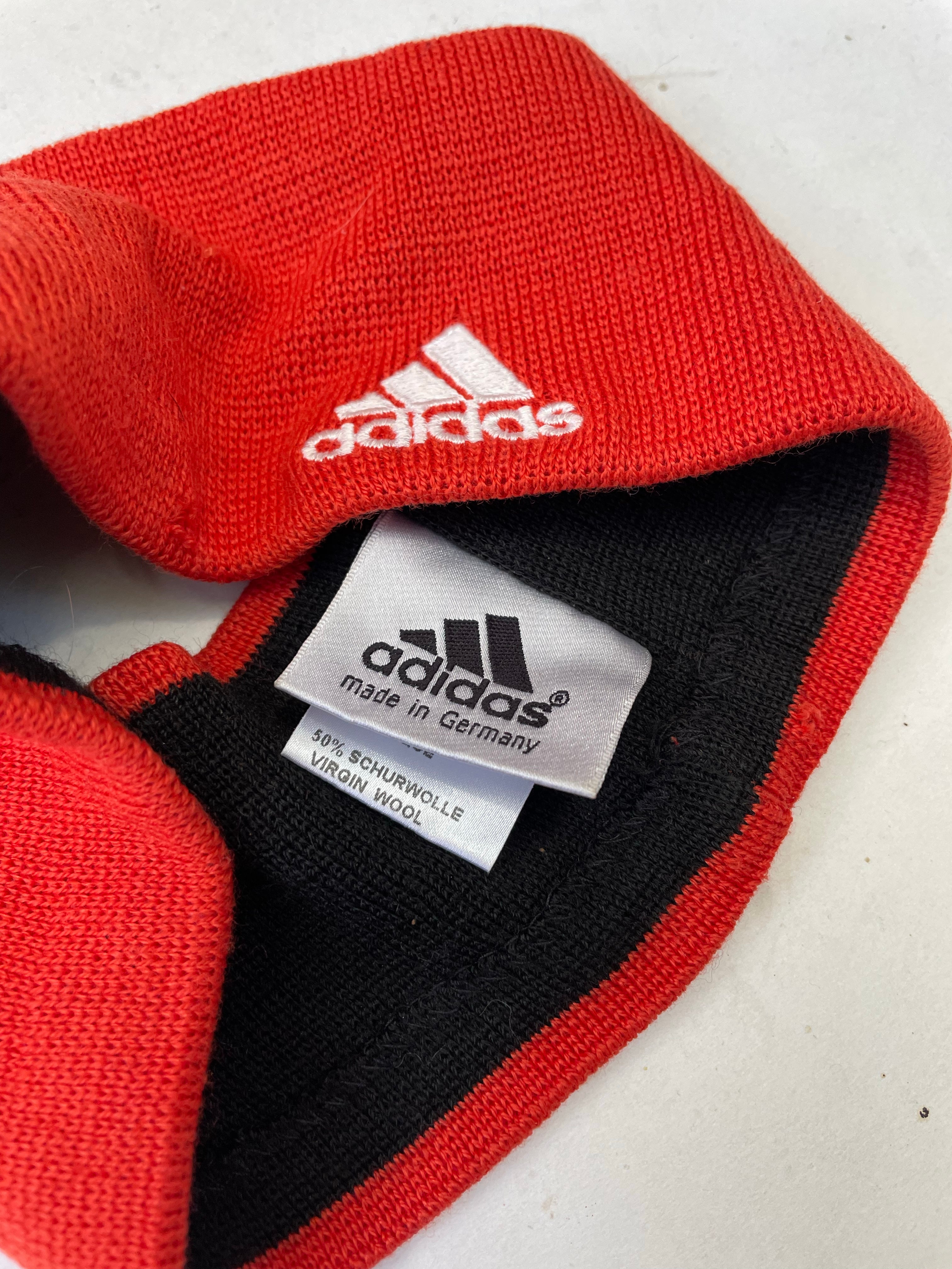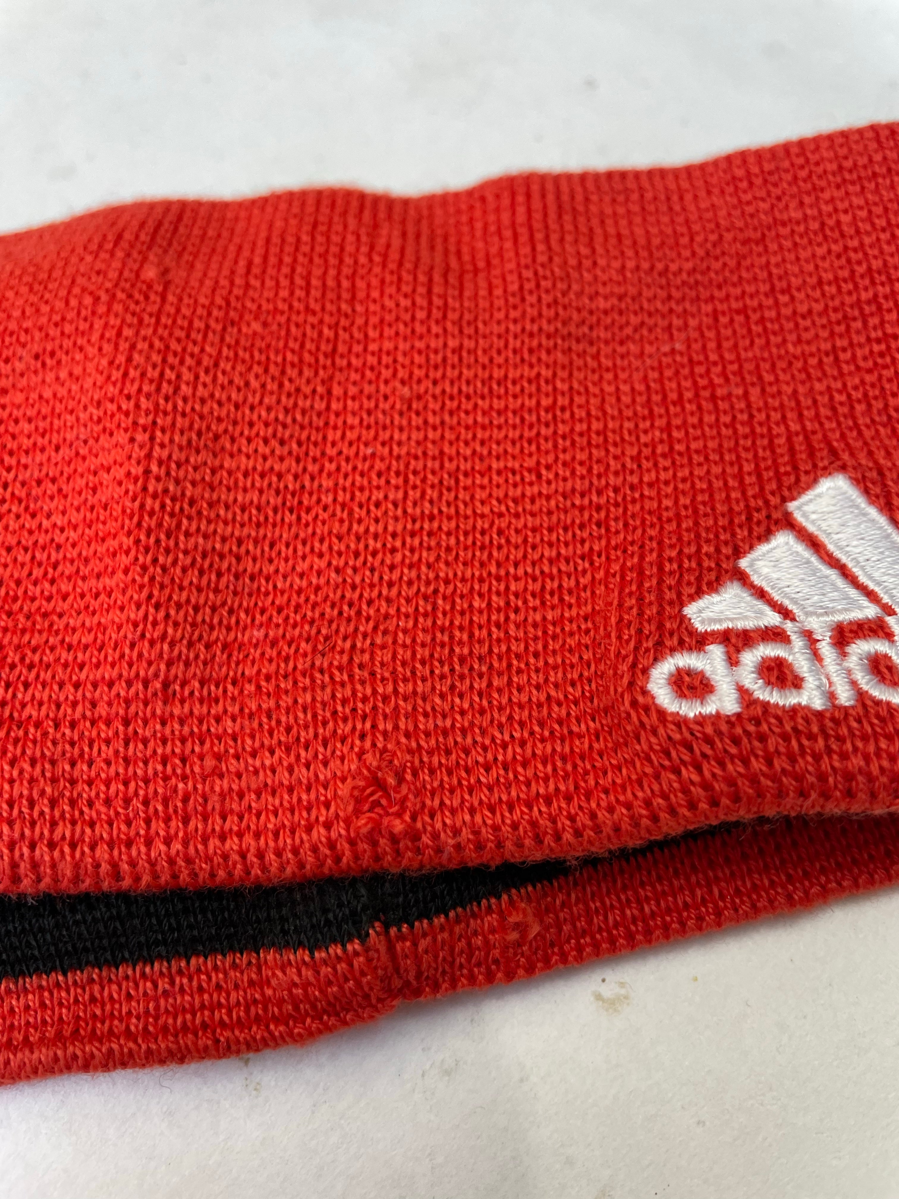 Vintage Adidas headband in red. Made in Germany. Features the classic Adidas logo. Great for sports or casual wear. Pre-owned, has a slight pull in the knit, see photos. Color: Red.