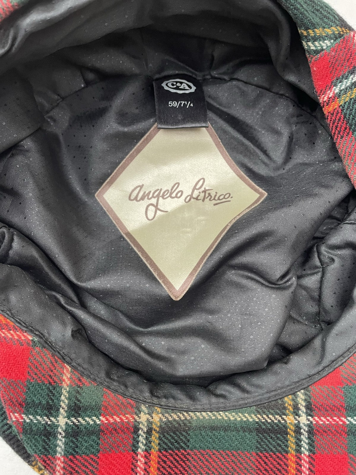 Vintage Angelo Litrico flat cap hat in a classic red and green plaid pattern. Features a comfortable lining and embroidered text 'FULL SPEED' on the side. Perfect for adding a touch of retro style to any outfit. Size 59/71.