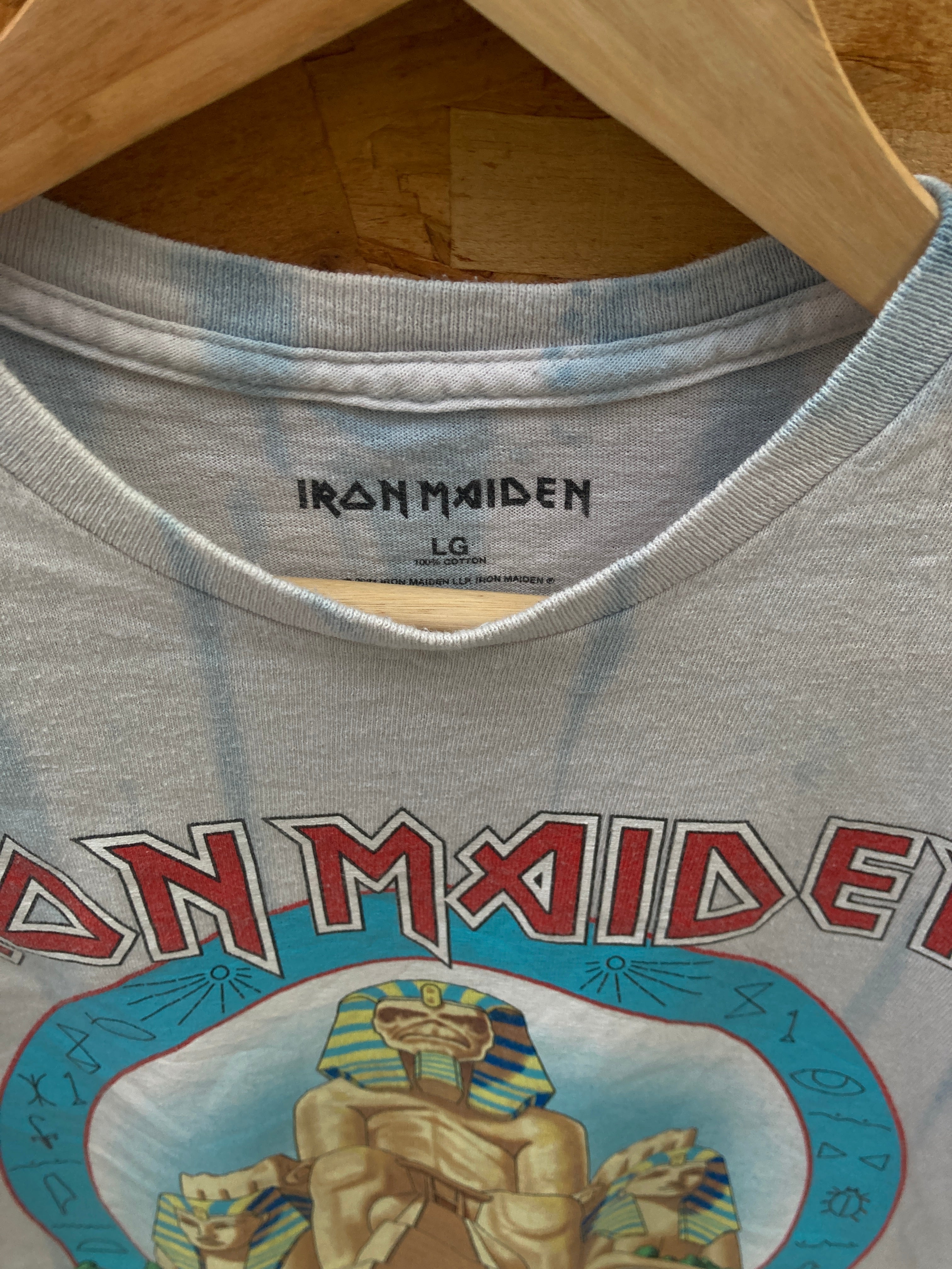 Iron Maiden Powerslave all over tie dye blue rock band t-shirt size large
