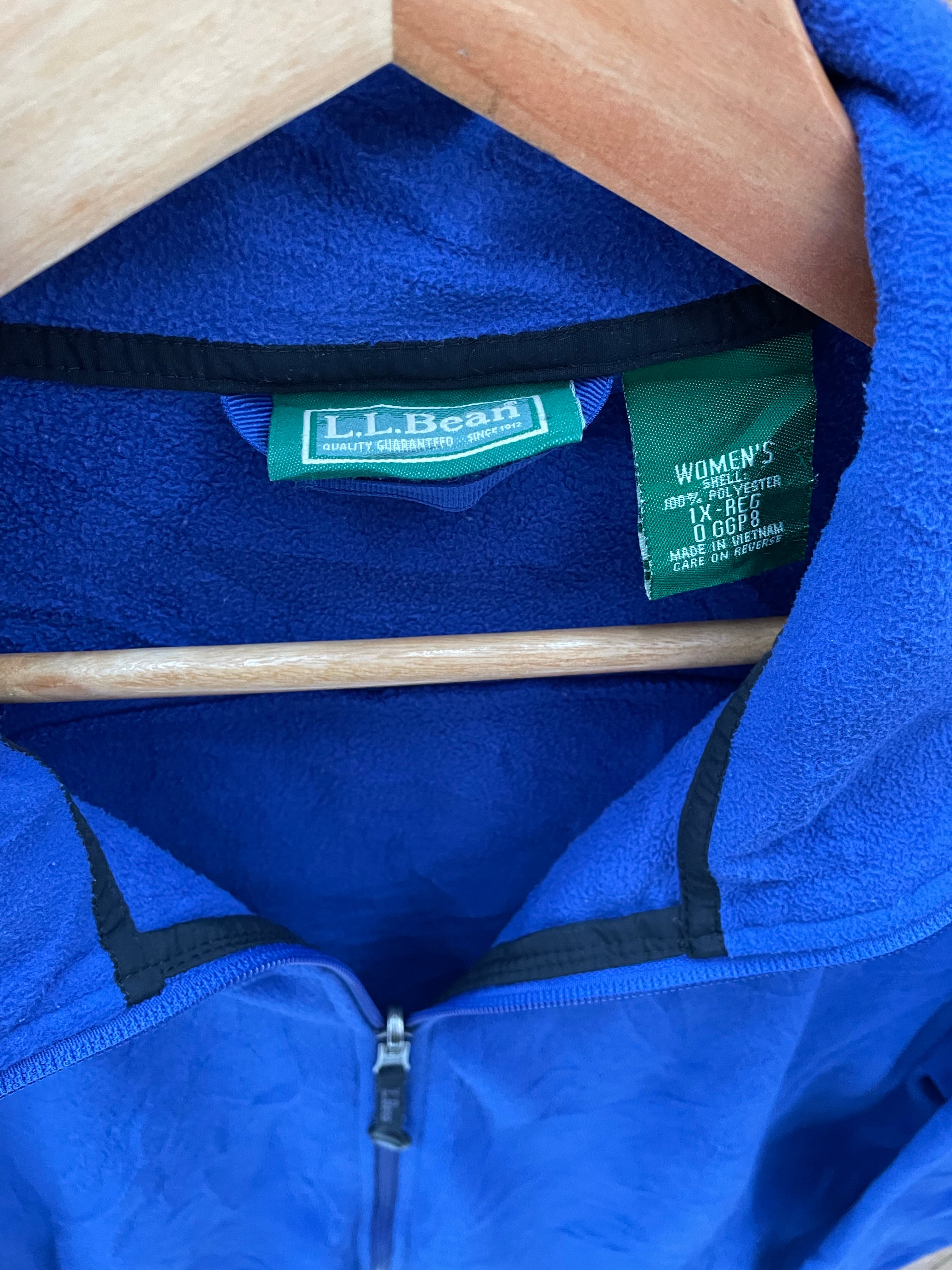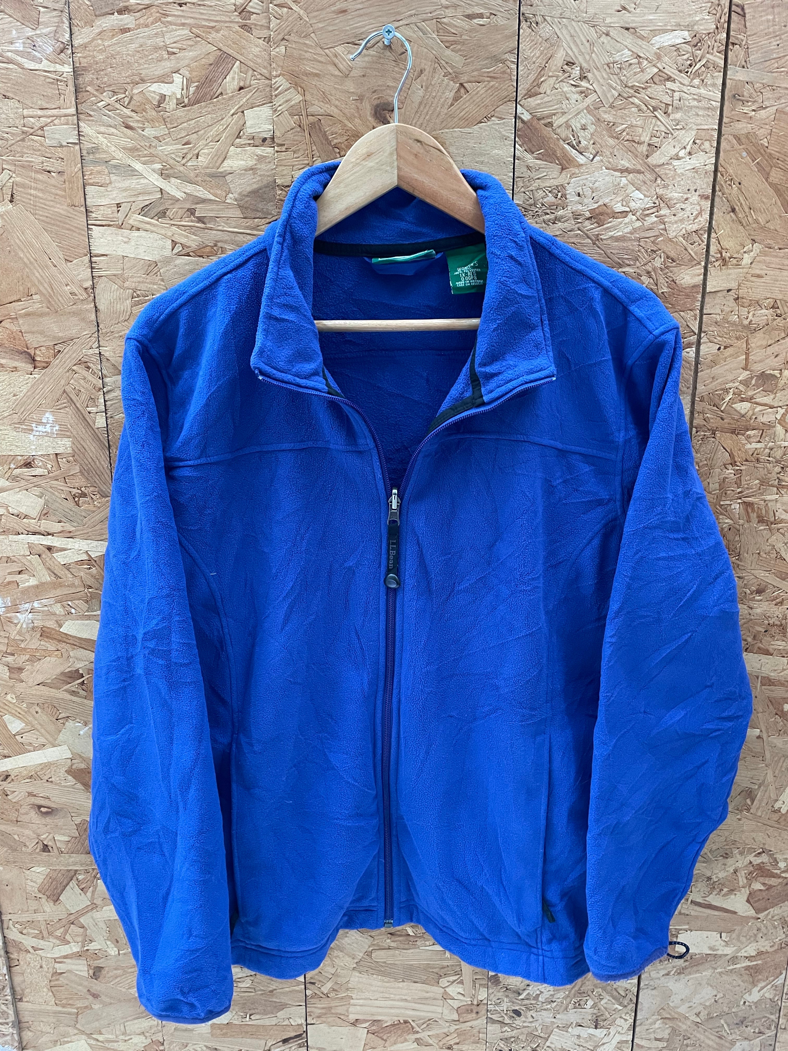 Stay warm and comfortable in this L.L. Bean Women's fleece jacket. Features a full zip closure, stand-up collar, and two zippered hand pockets. Perfect for outdoor adventures or casual everyday wear. Made from 100% polyester for durability and softness.