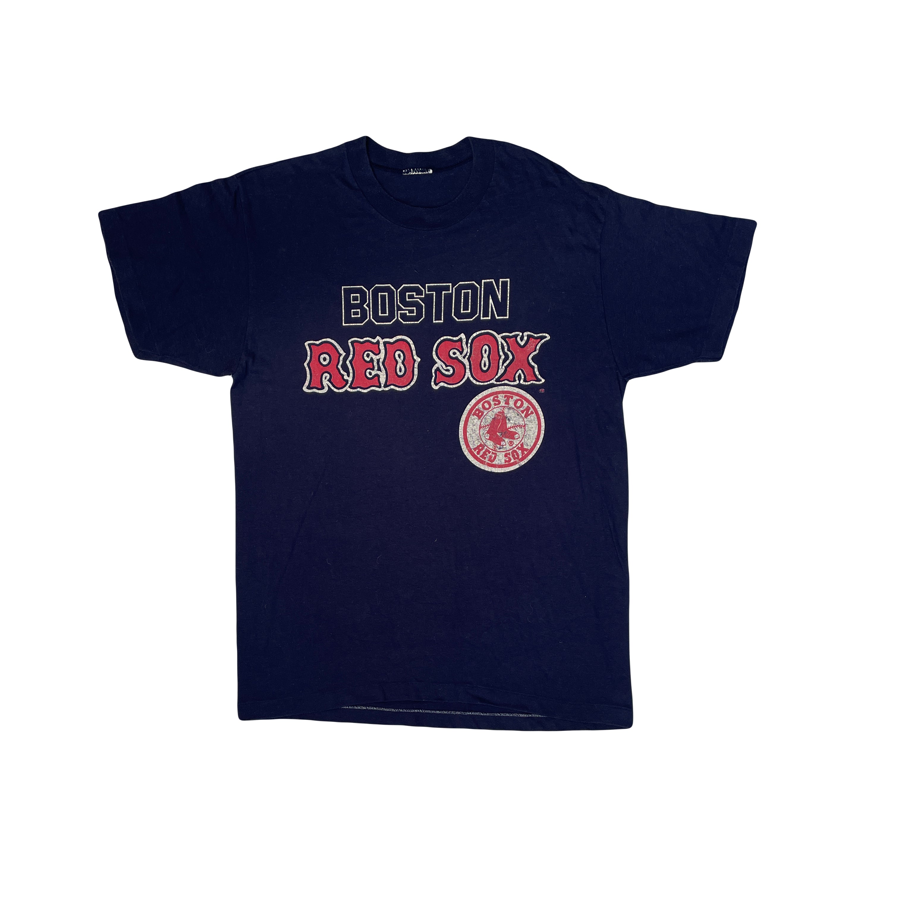 Vintage Boston Red Sox t-shirt in navy blue. Features a distressed graphic print of the team logo and name. Great condition for its age. Perfect for baseball fans! no size label, fits as M Color: Navy Blue.