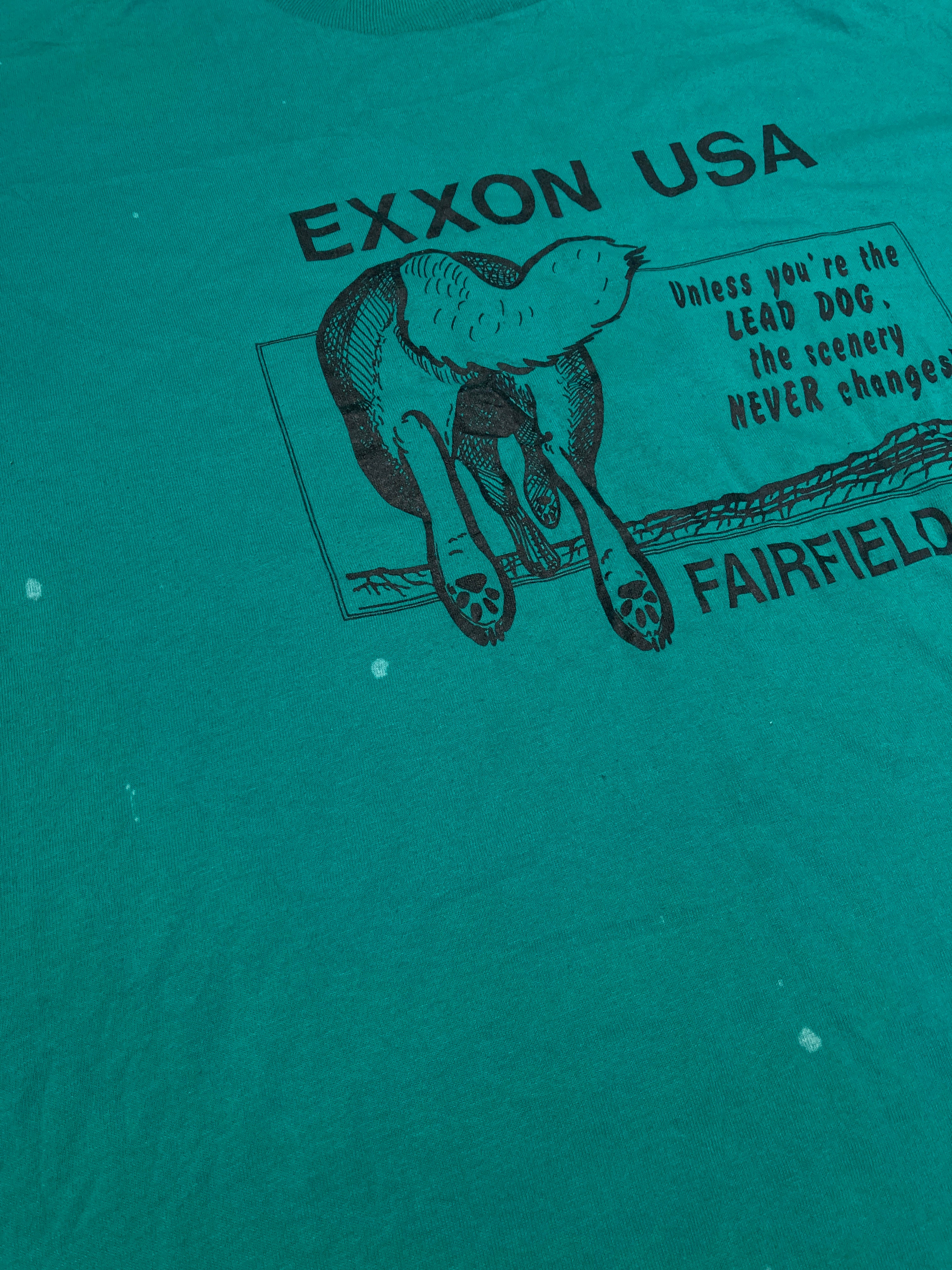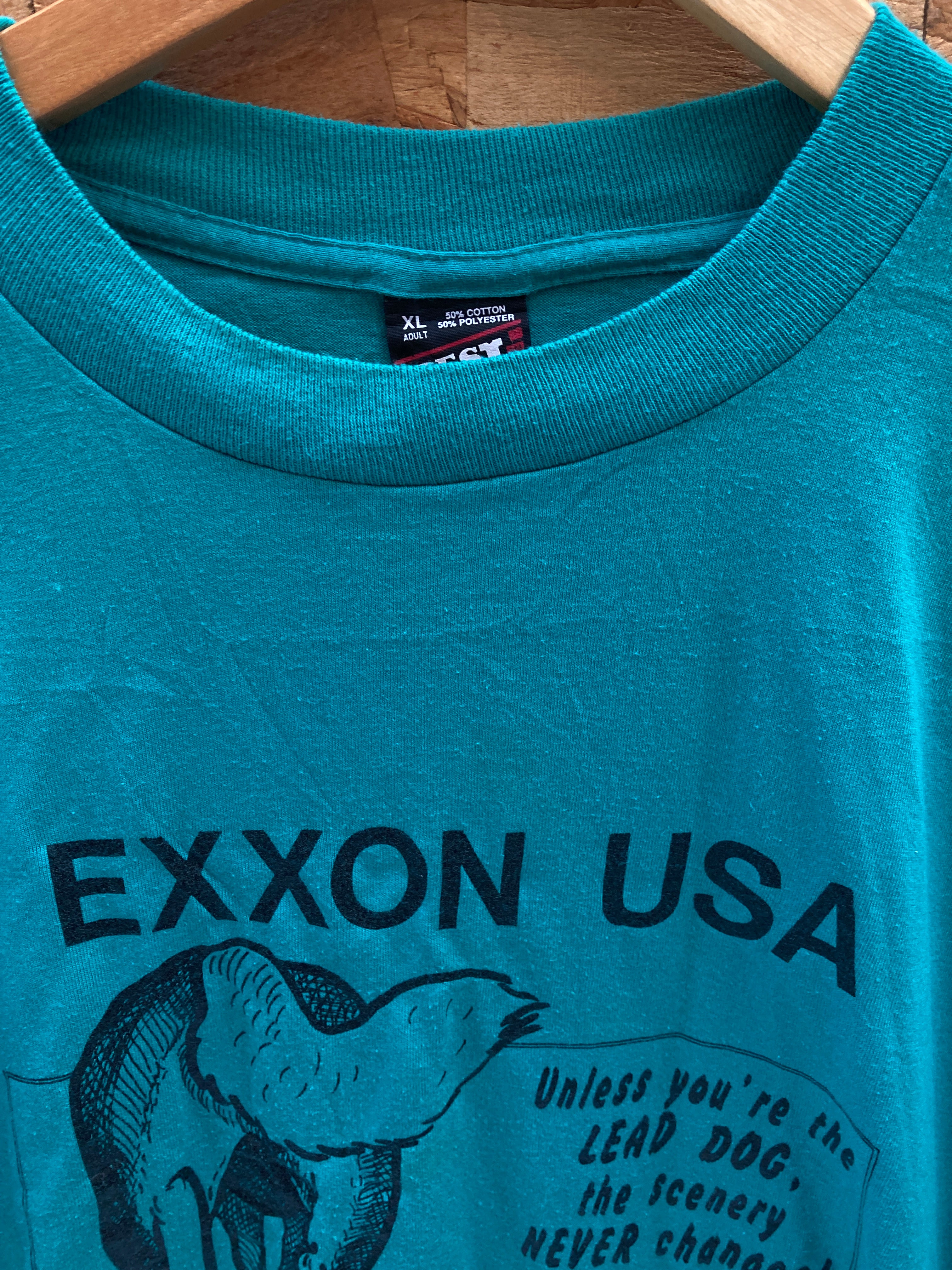 Vintage 80s turquoise green Exxon USA Fairfield dog single stitch souvenir t-shirt size XL by Fruit of the loom
