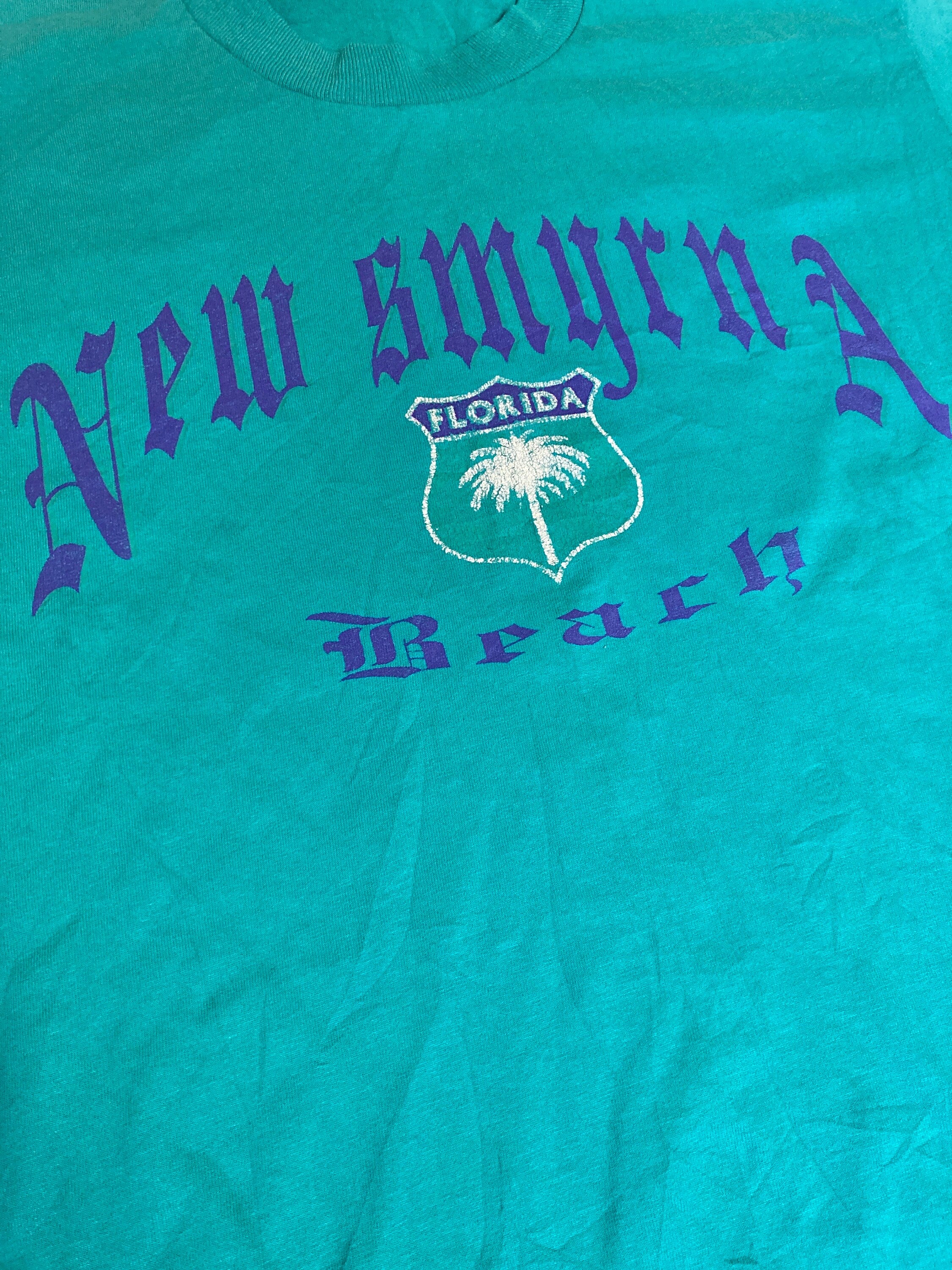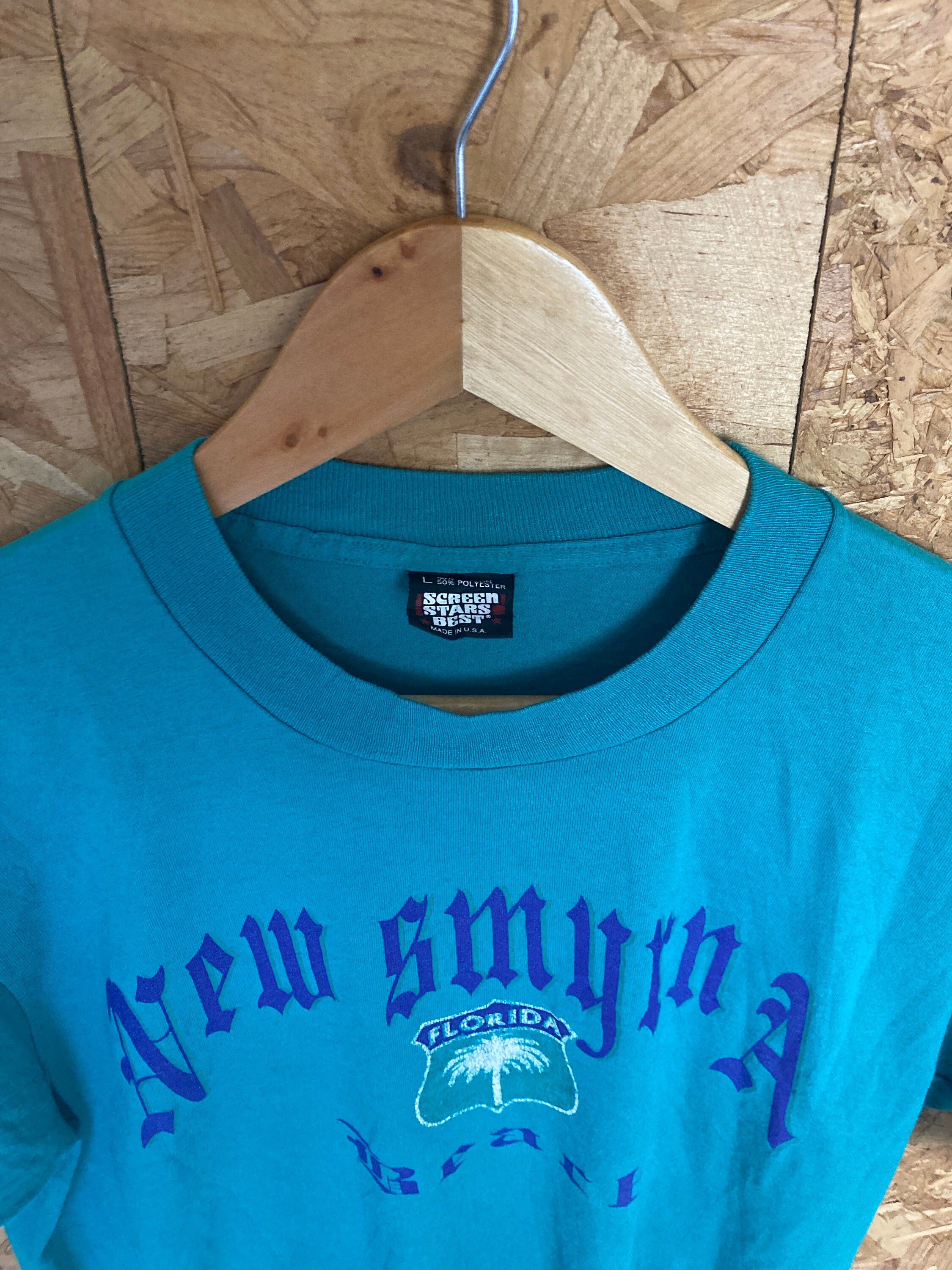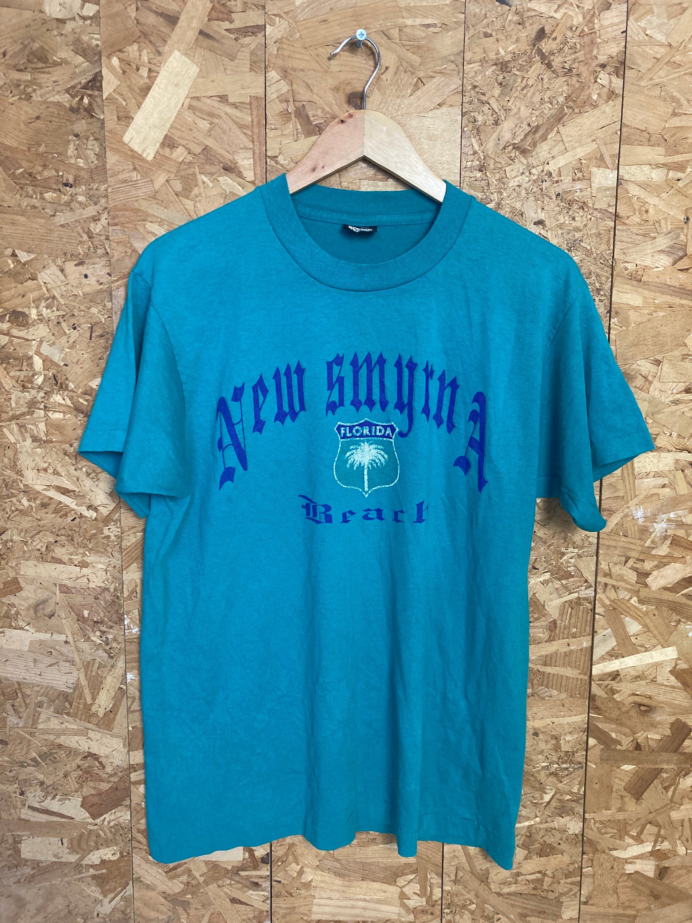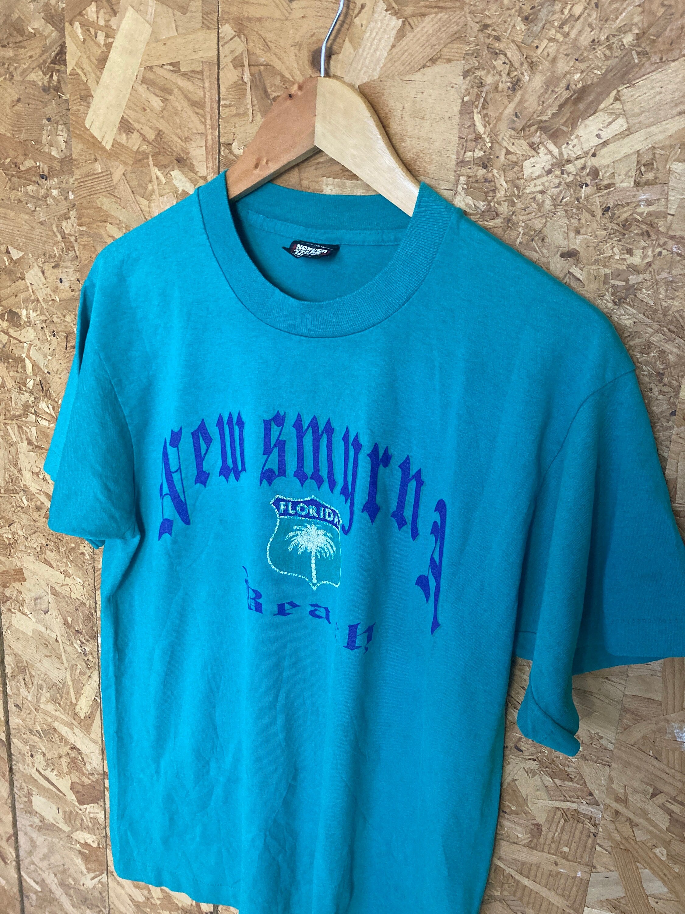 Vintage 80s turquoise green New Smyrna Beach USA souvenir single stitch t-shirt size large