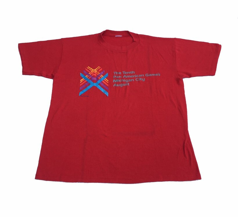 Vintage 85’ tenth pan American games Michigan city USA souvenir red t shirt size Medium