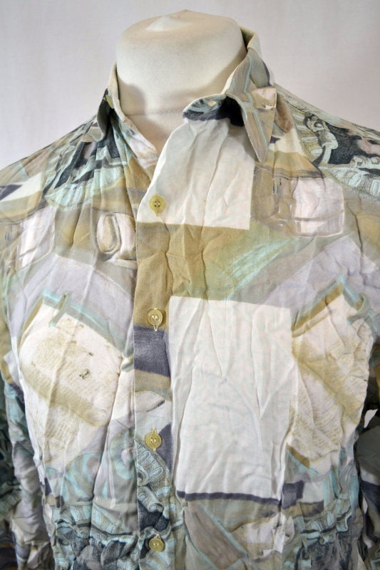 Vintage 90s Abstract Classical Art Print pastel watercolour shirt size large