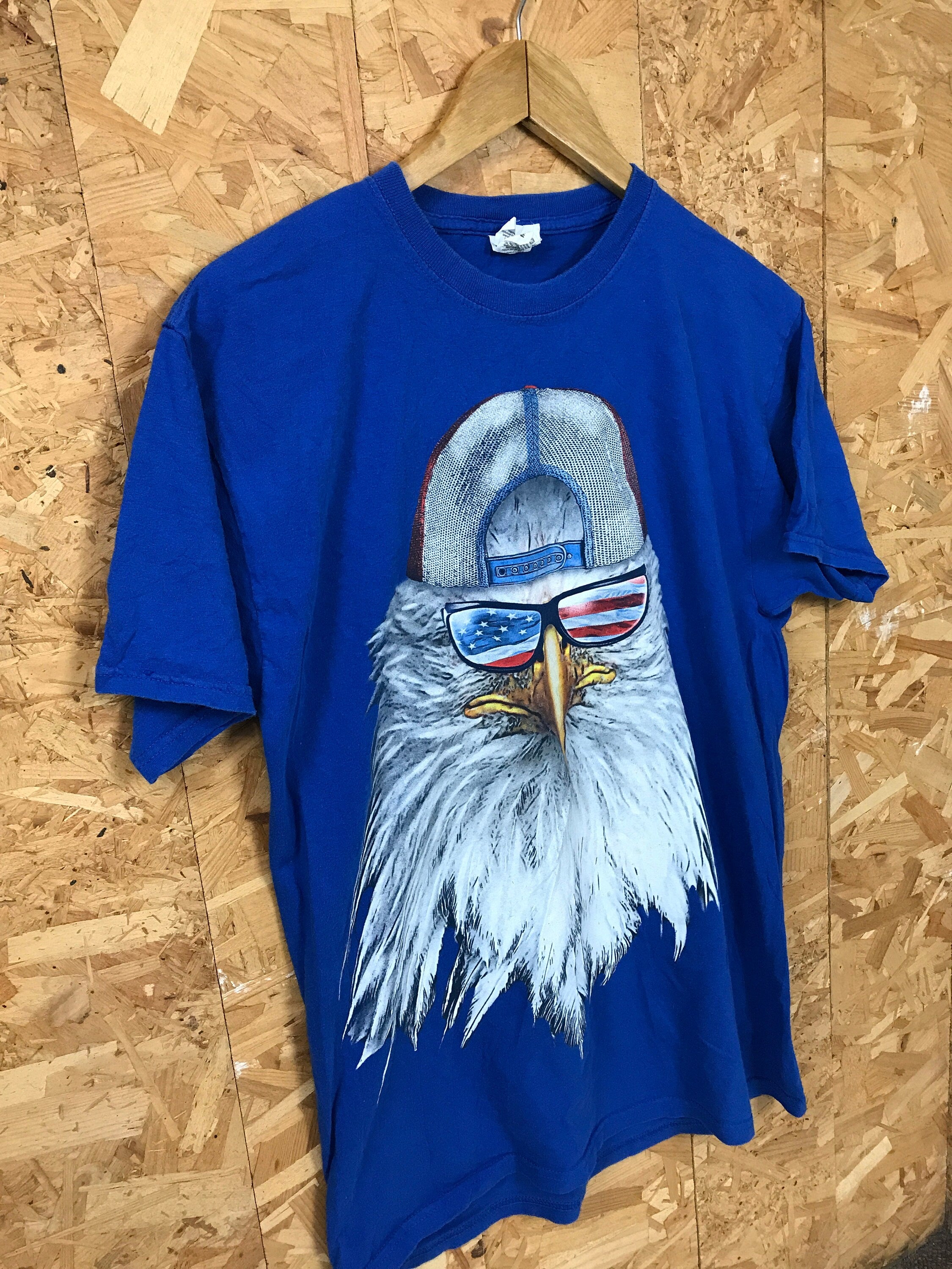 Vintage 90s American Eagle with beard and hat USA souvenir nature print blue quirky patriotic t-shirt size medium