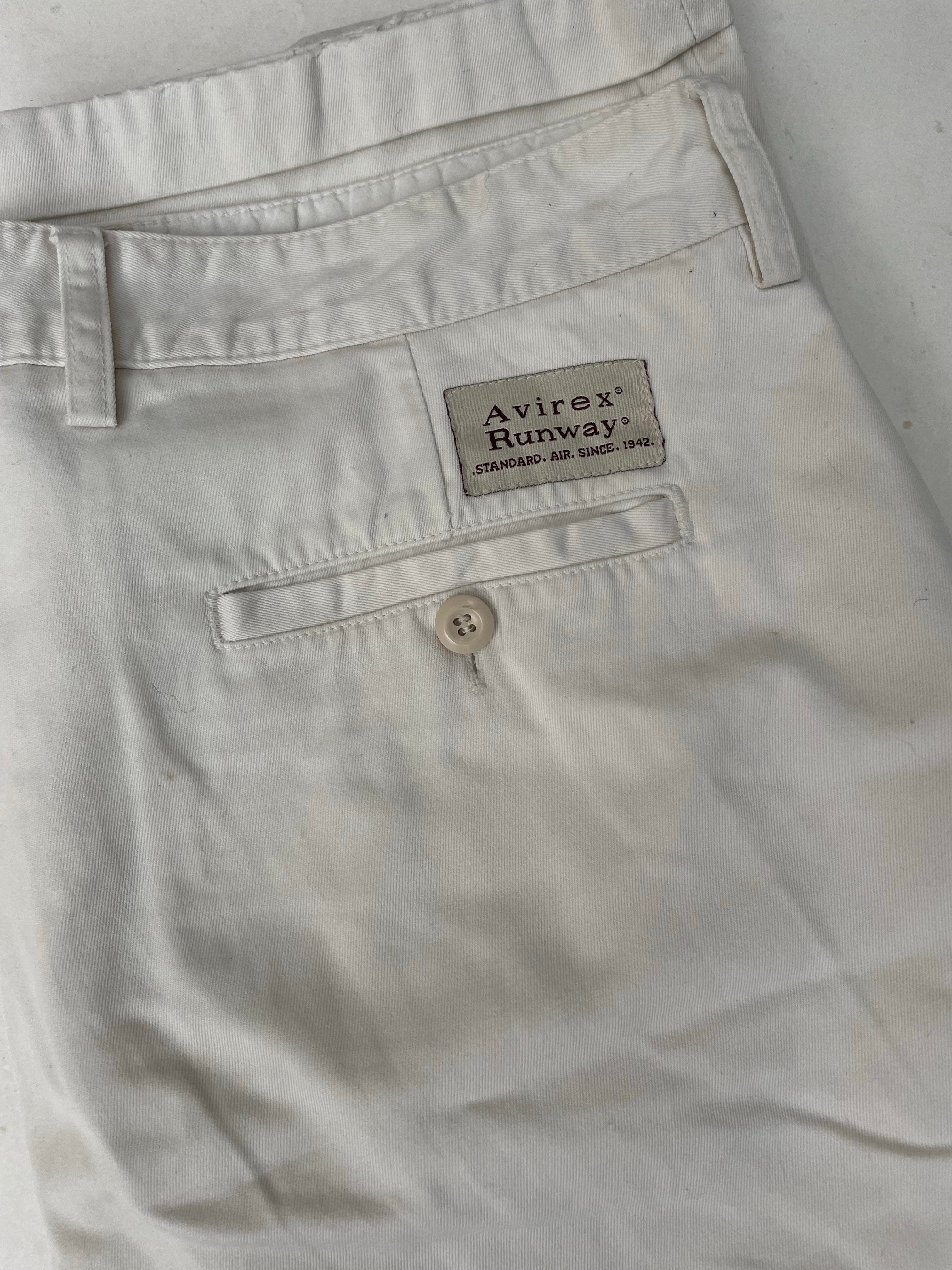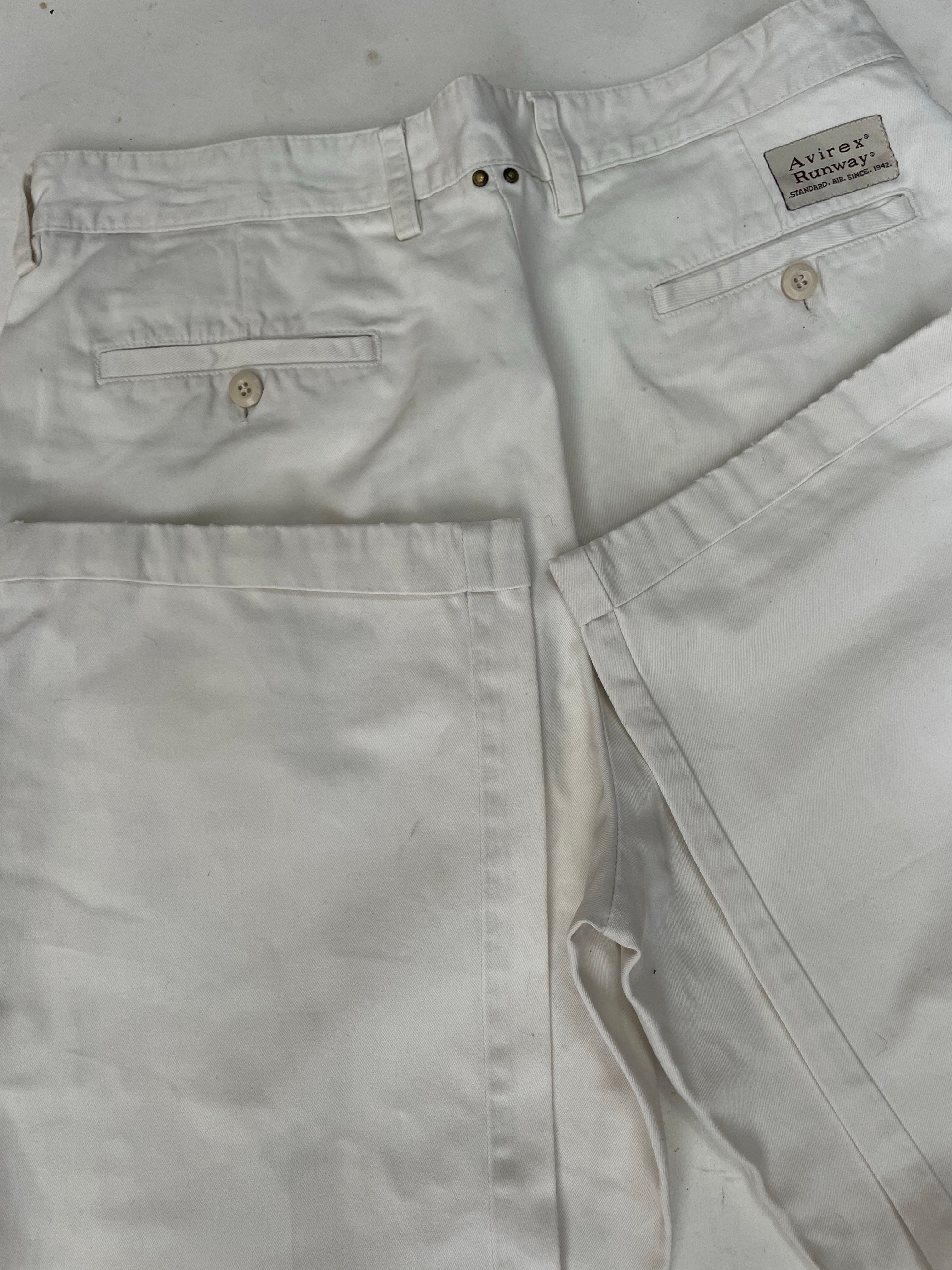 Avirex Runway collaboration white pants. Size 32. Excellent condition. Classic style, straight leg. Made of durable cotton. Color: White.