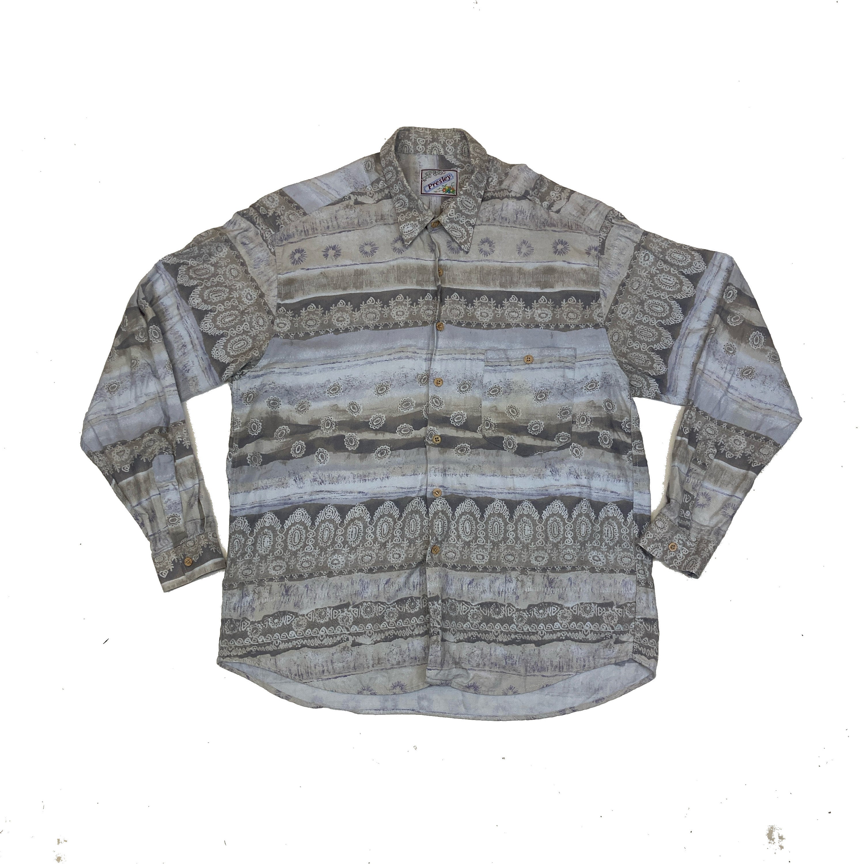 Vintage 90s Aztec stripe pattern pastel cream beige long sleeve brushed cotton shirt USA size large by priestly