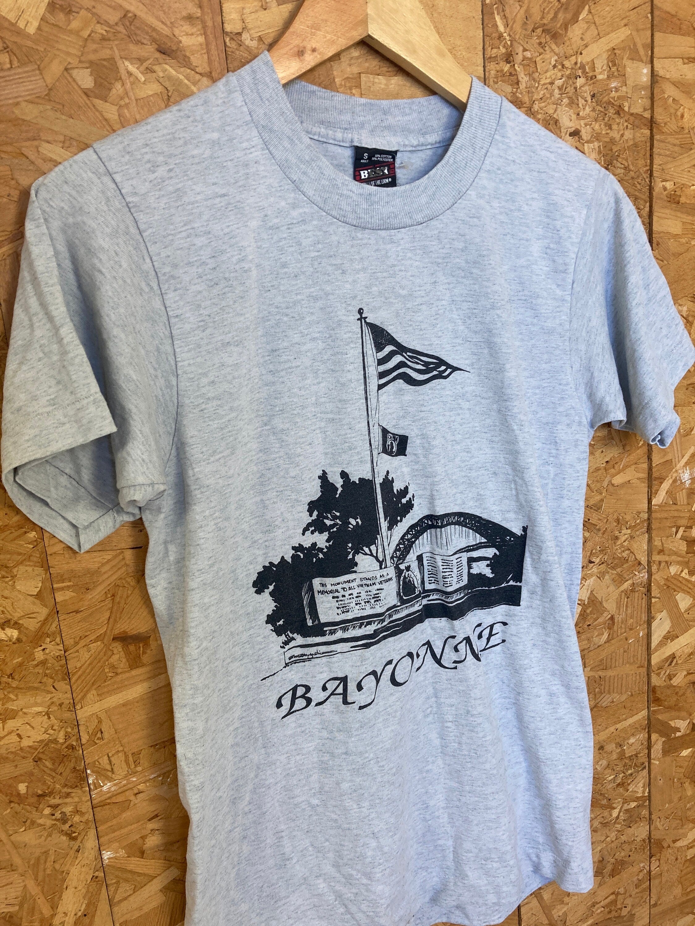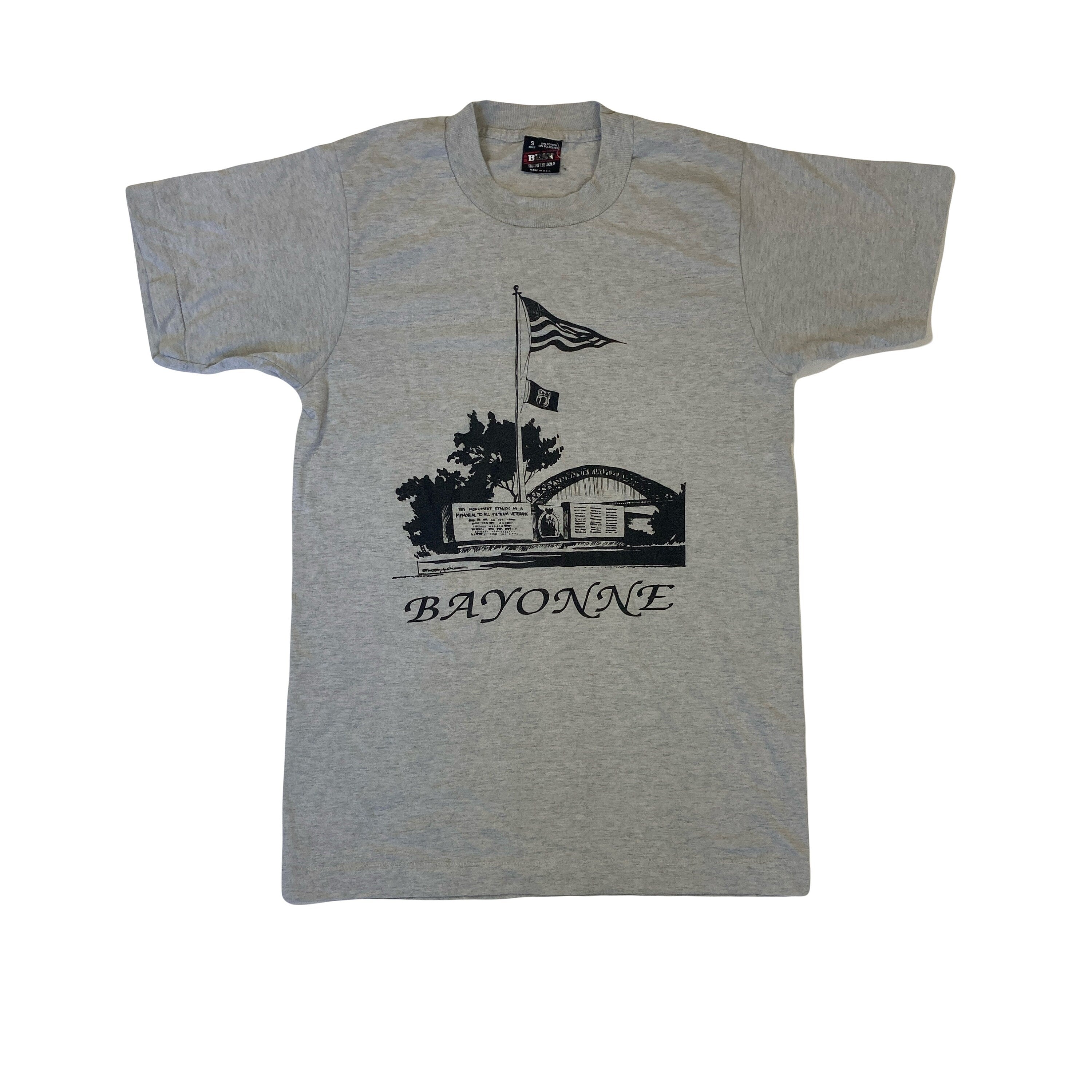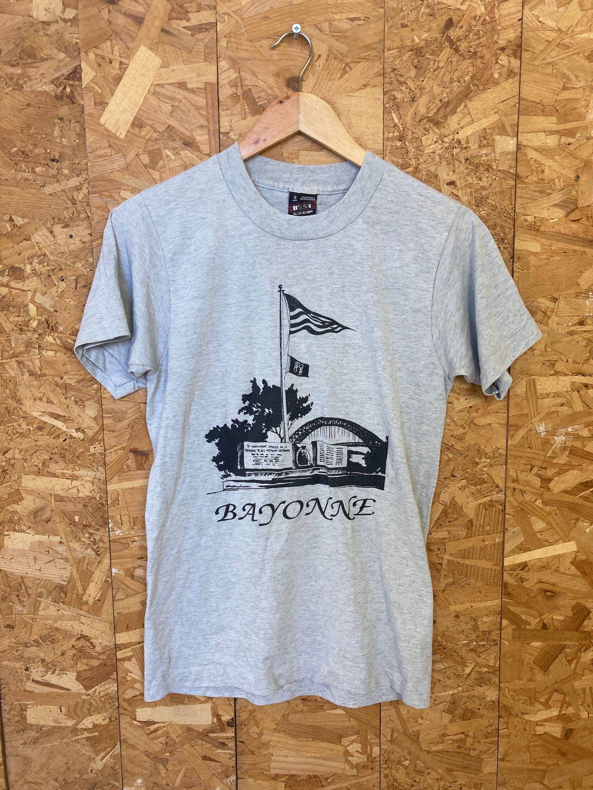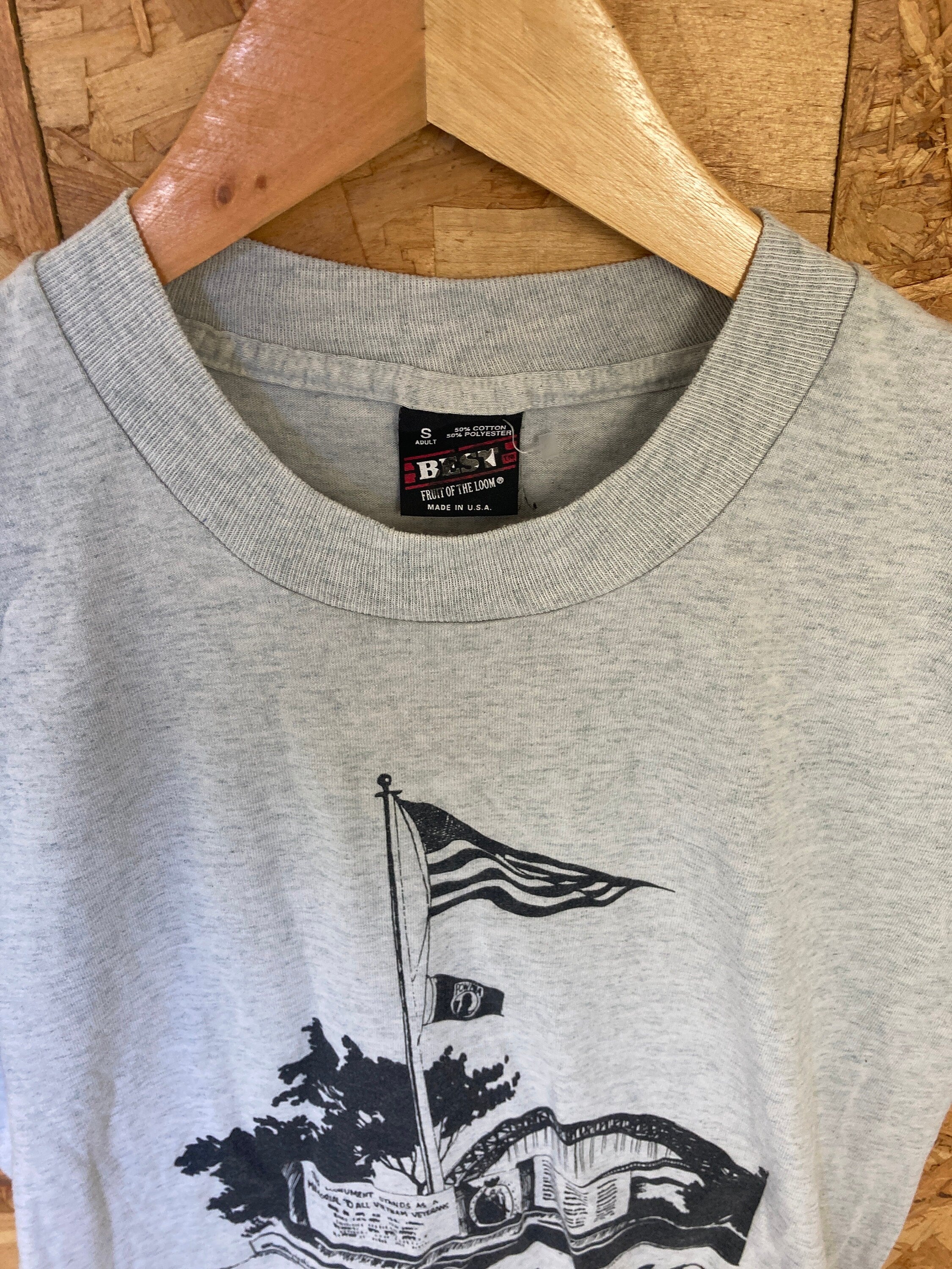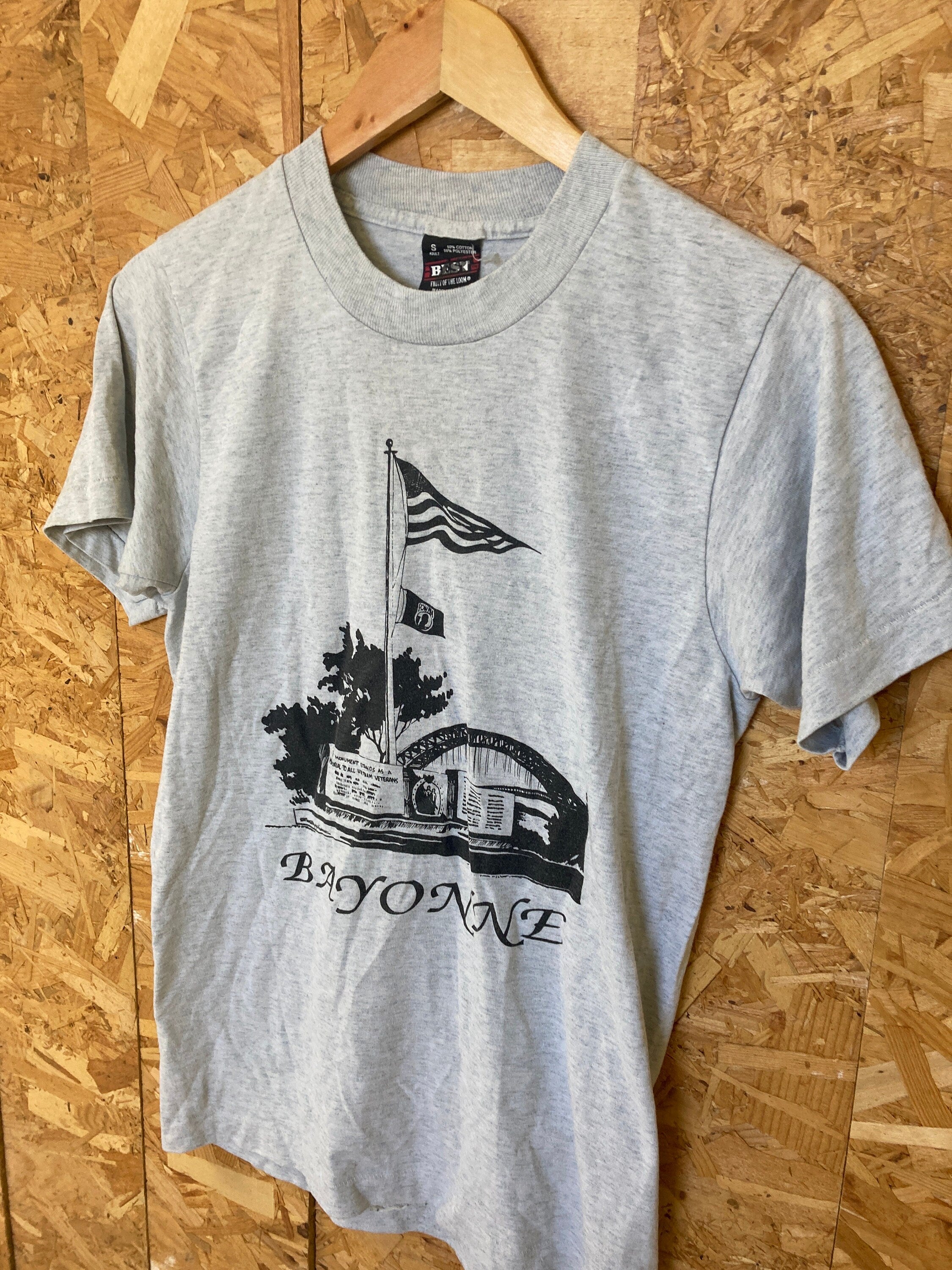 Vintage 90s Bayonne MIA Pow missing in action prisoners of war memorial USA grey souvenir single stitch t-shirt size small