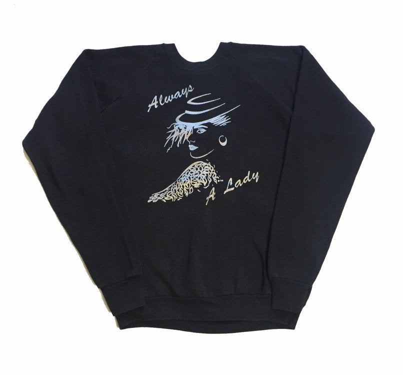 Vintage 90s black ‘Always a lady’ USA souvenir quirky theatre crew neck sweater size XL