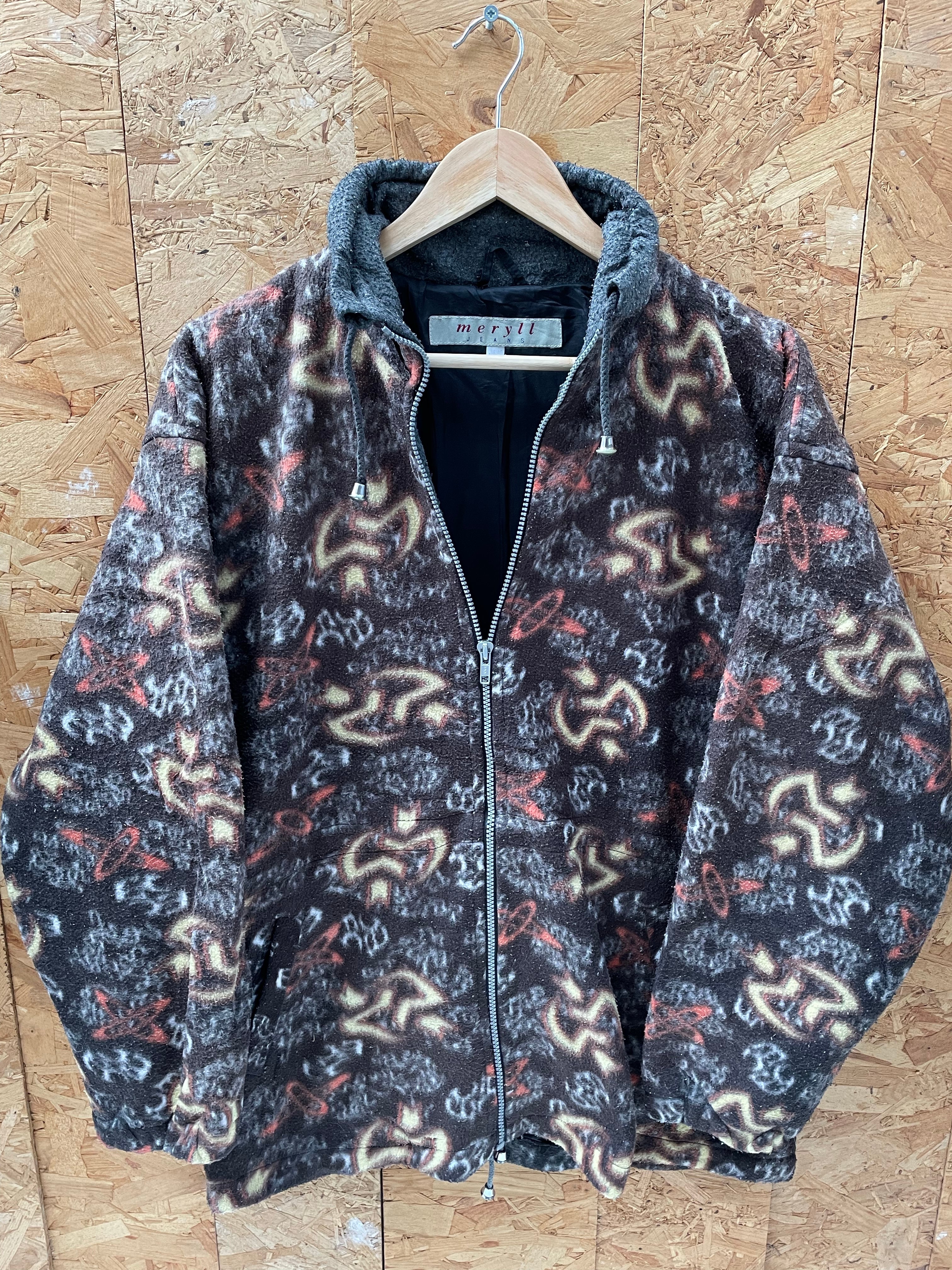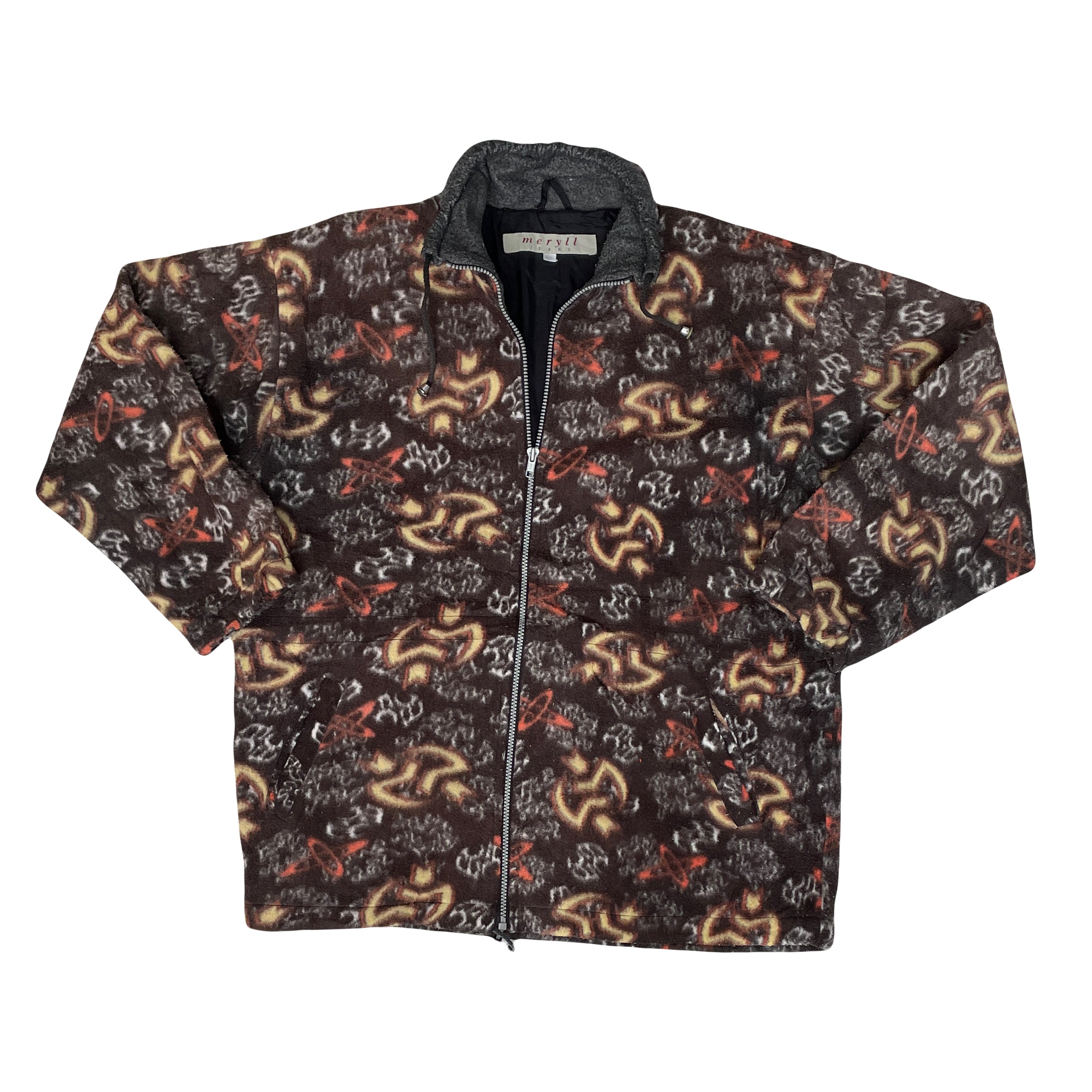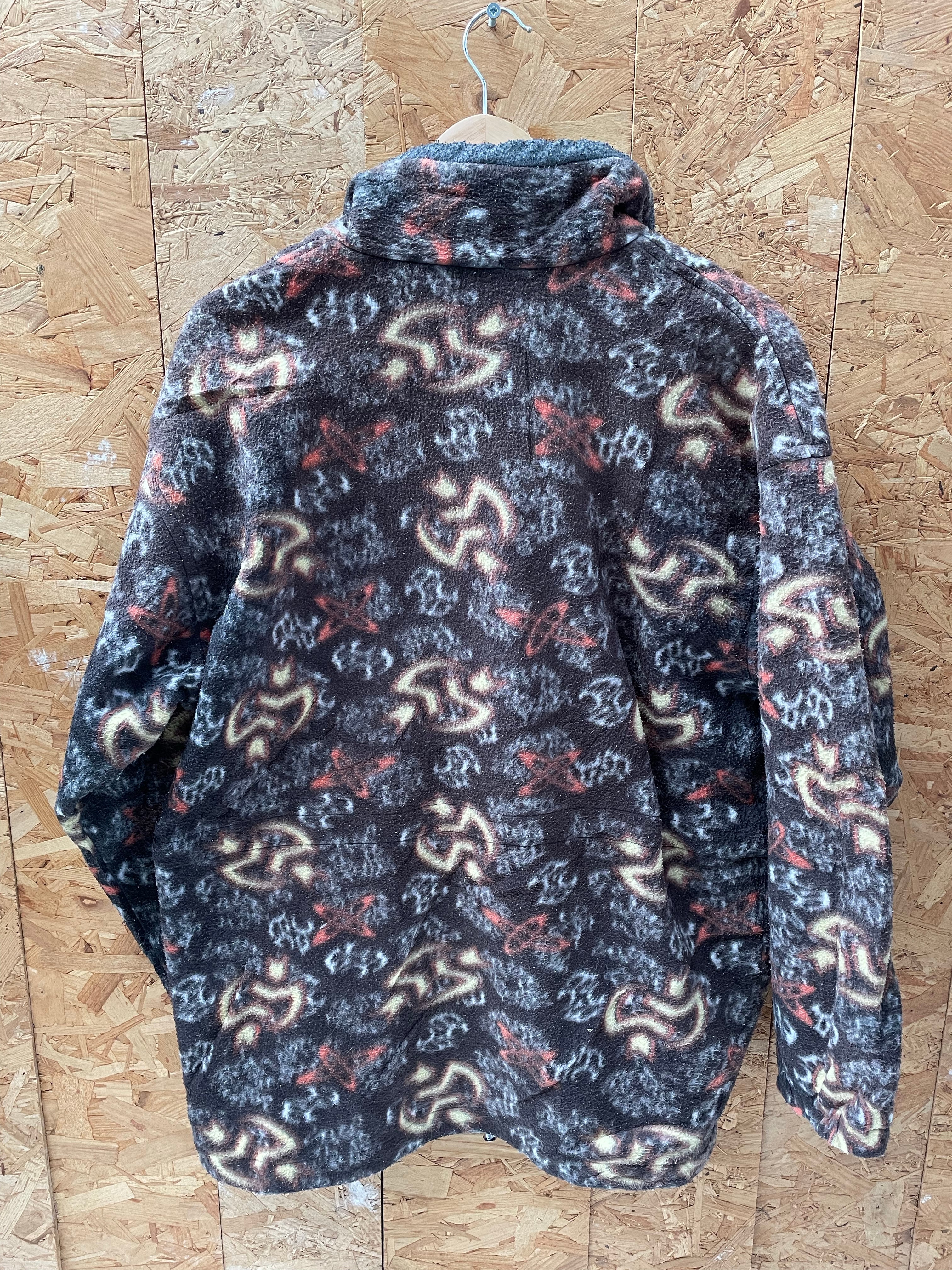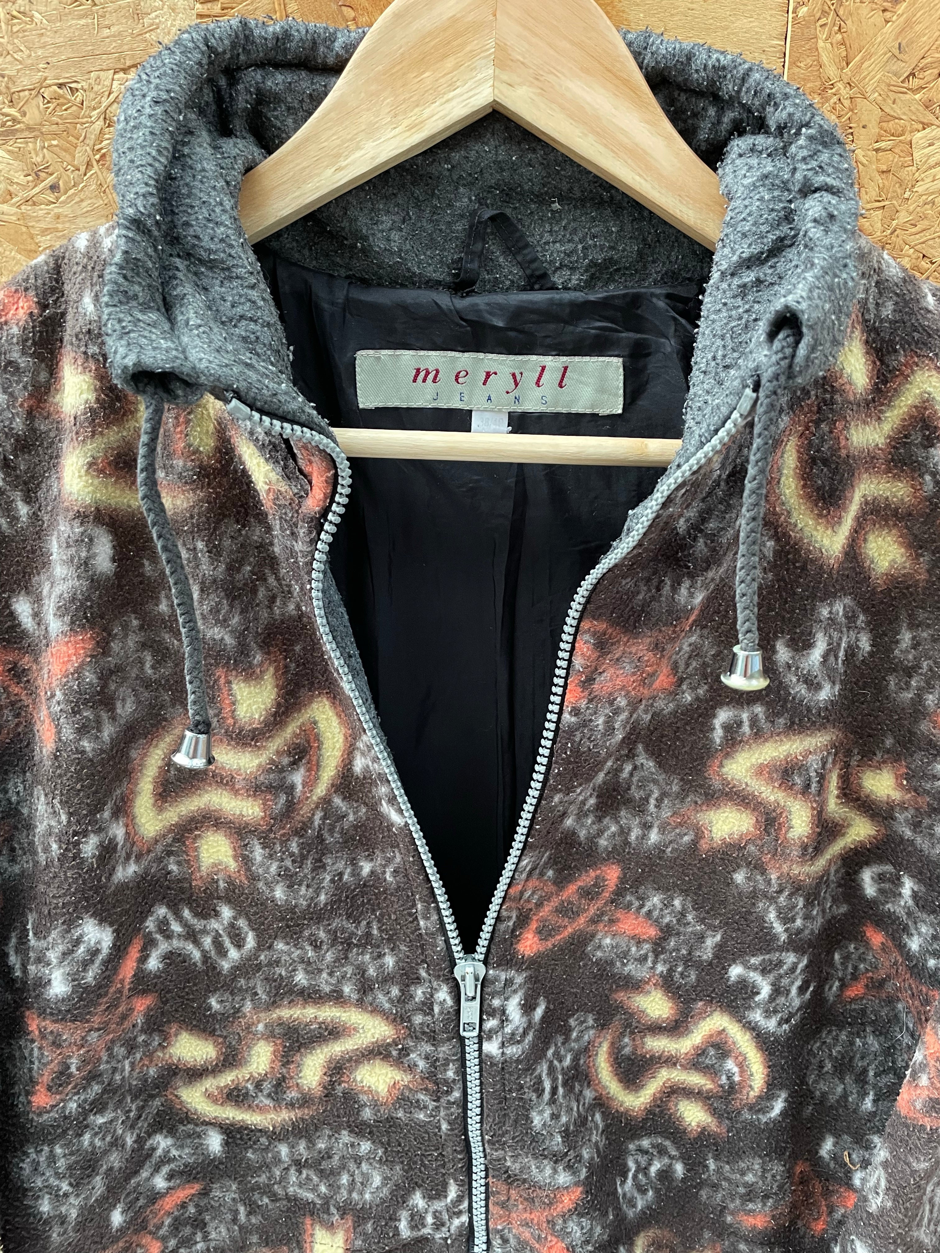 Vintage 90s brown grey crazy print abstract pattern fleece size large by Meryll label is 38/40 fits as a large