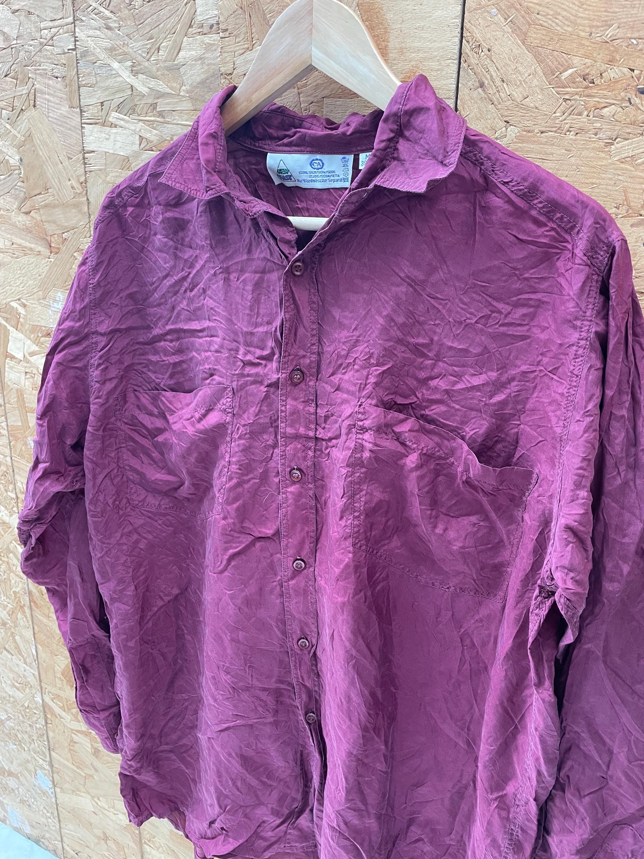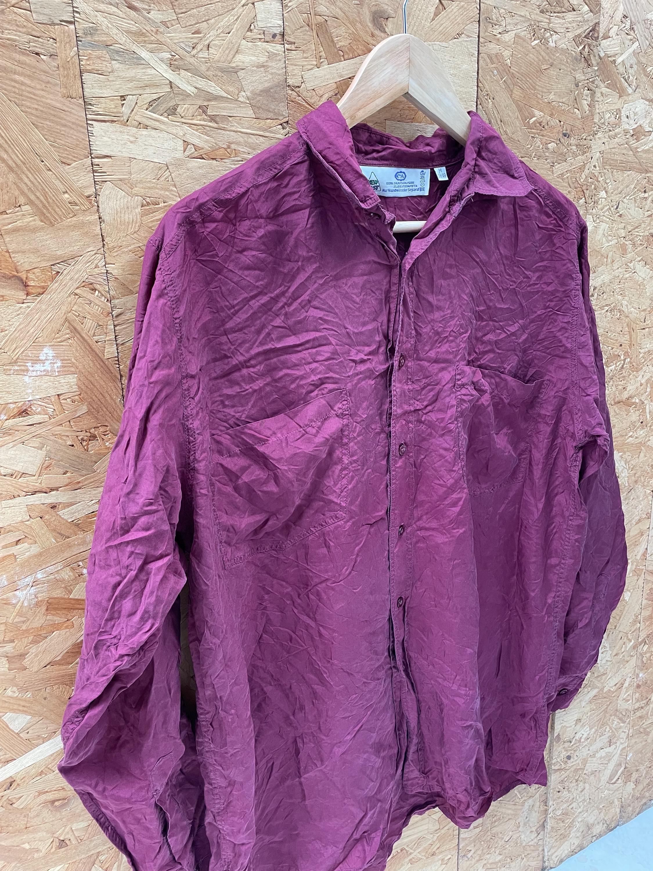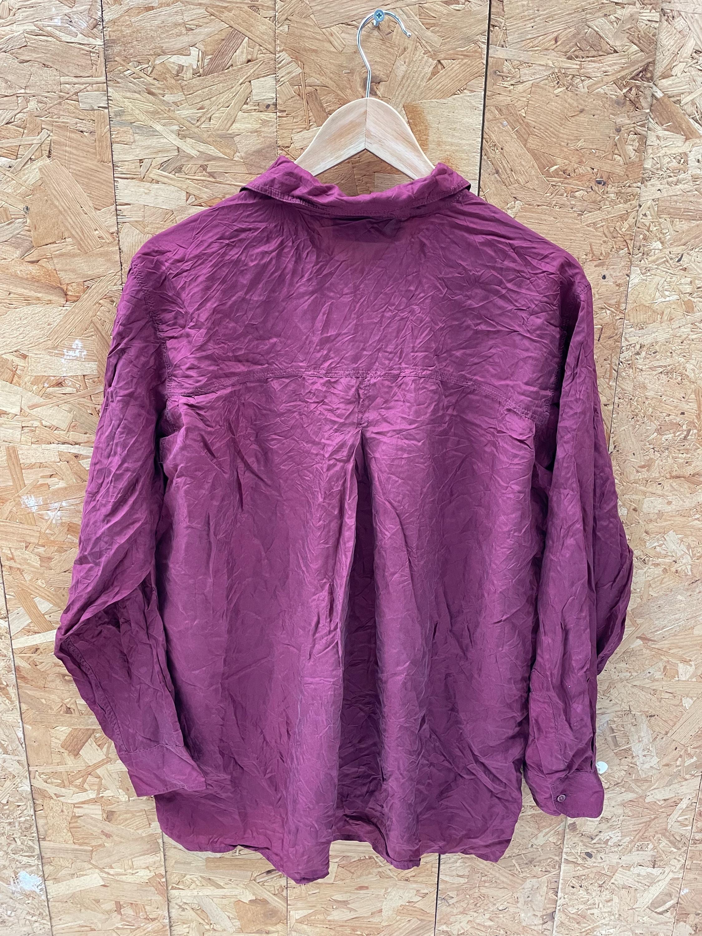 Vintage 90s burgundy maroon dark red/deep red pure silk long sleeve shirt oversized size medium oversized fit by New Fast
