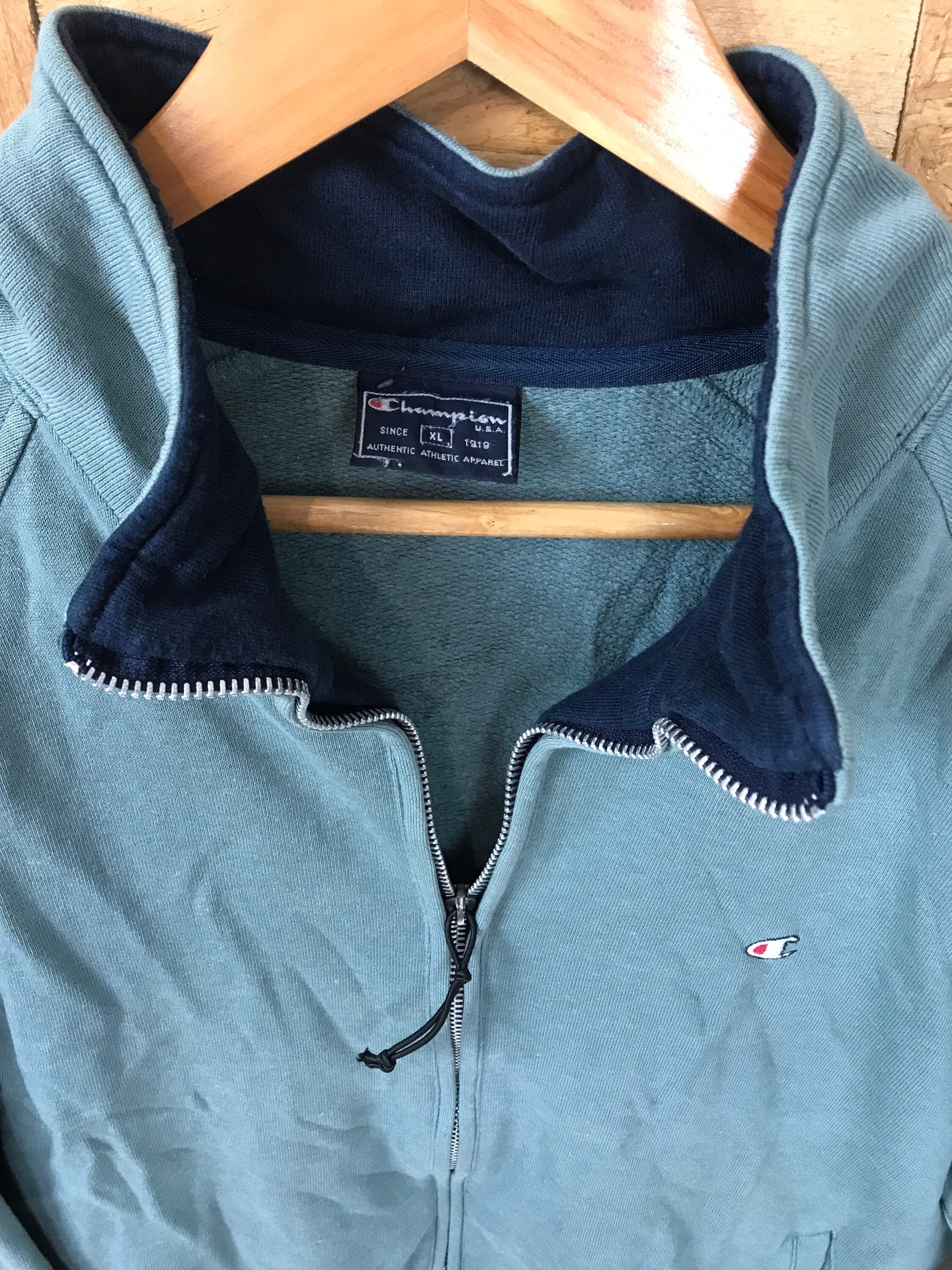 Vintage 90s Champion reverse weave zip sweat olive grungy light green size xl