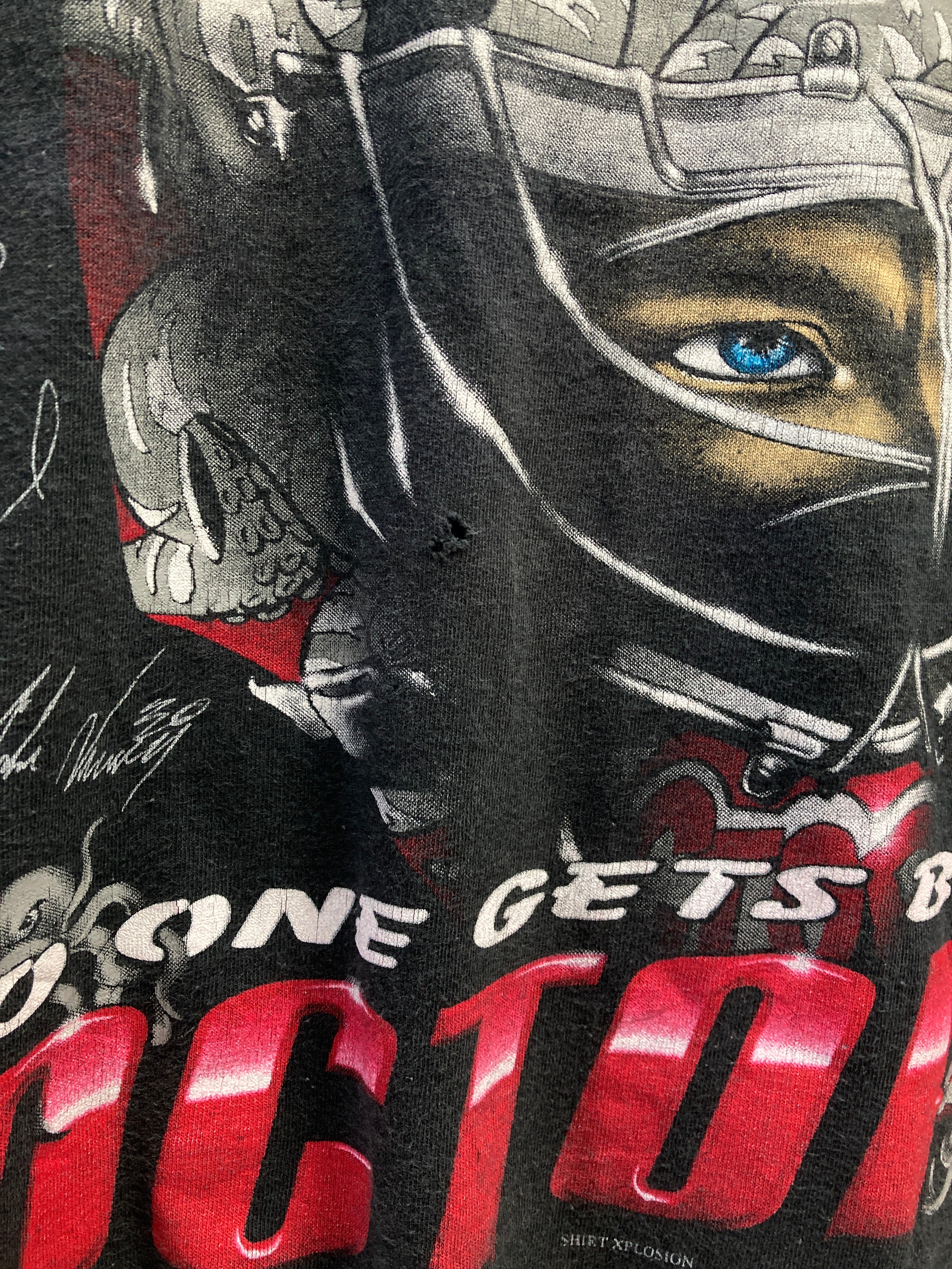 single stitch with helmet and squad signatures. small hole on front. nice all over fade.