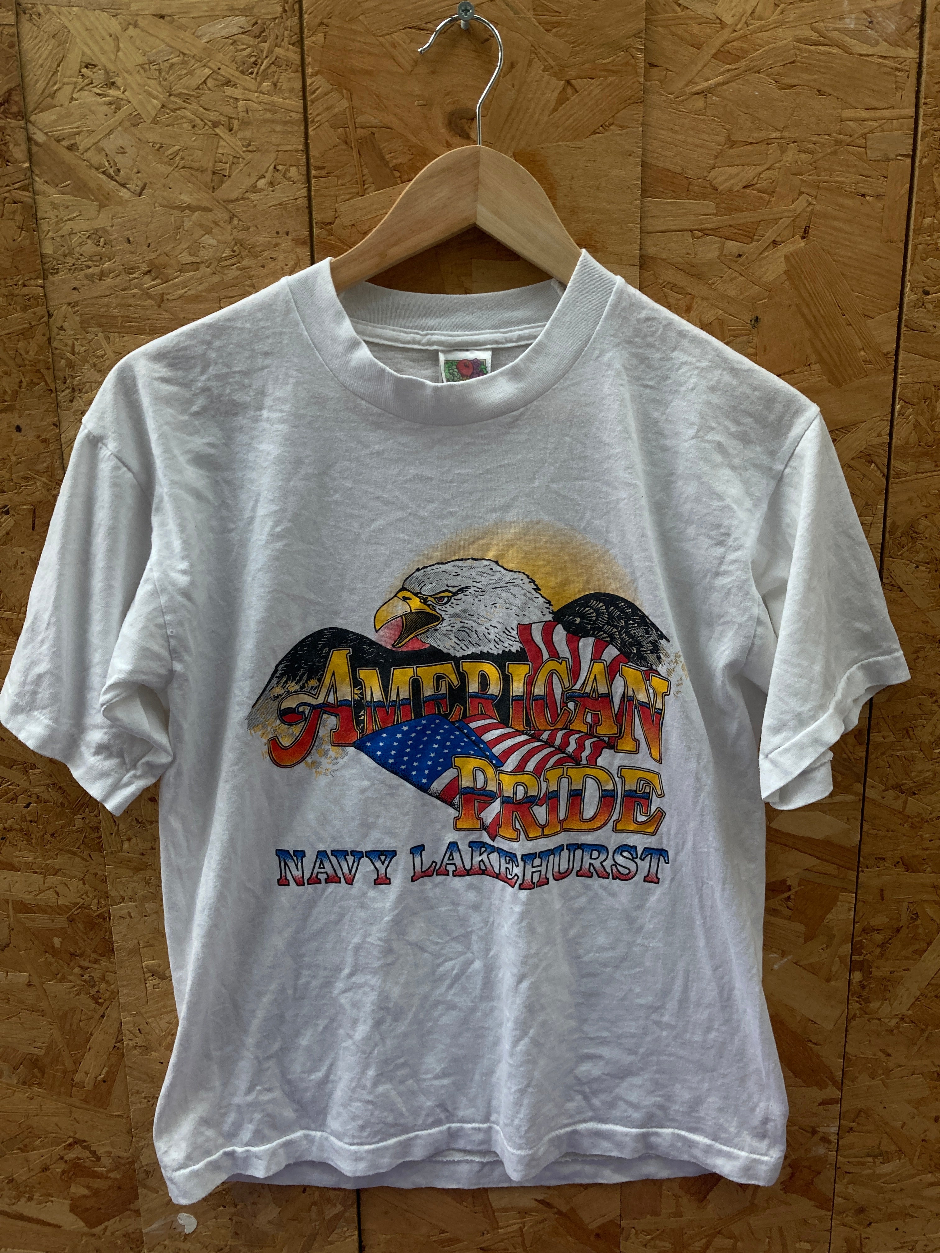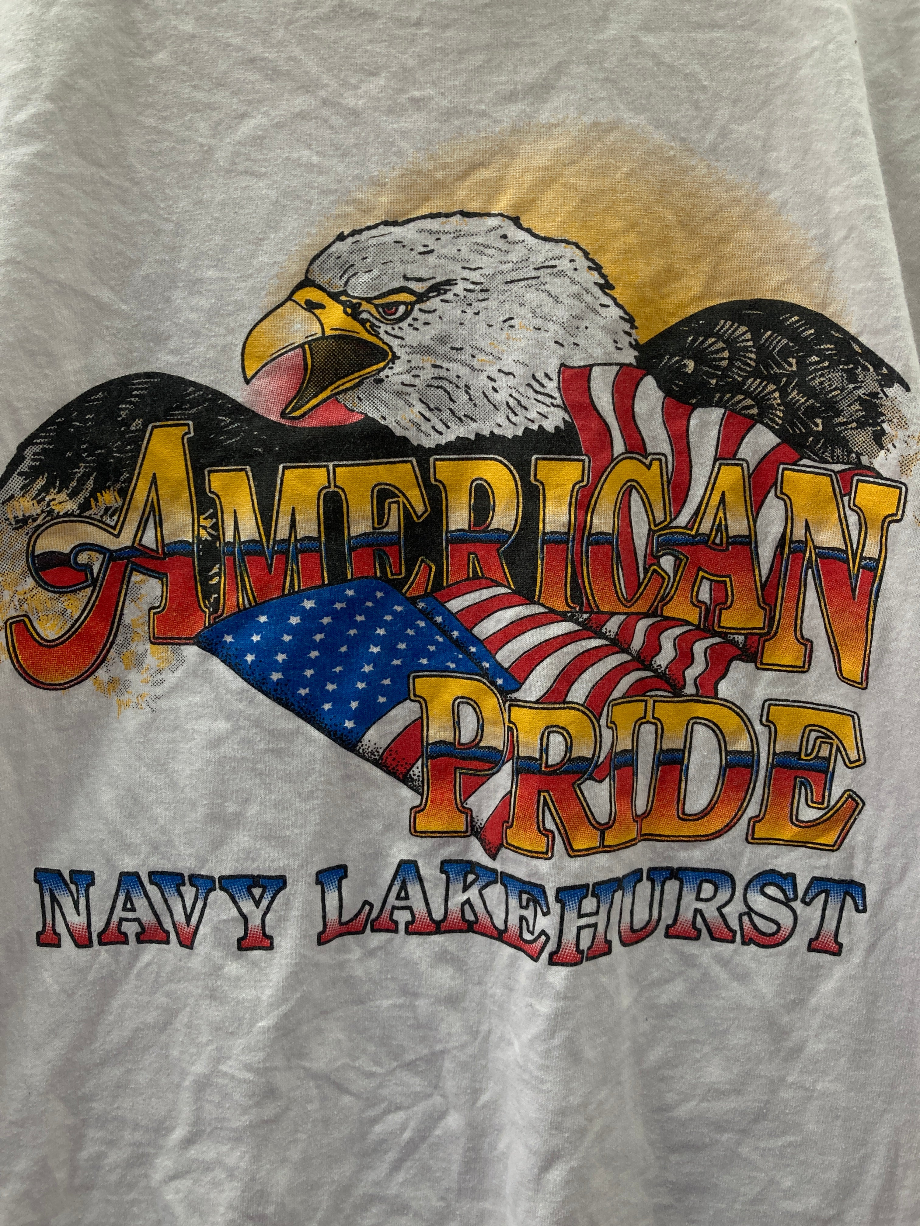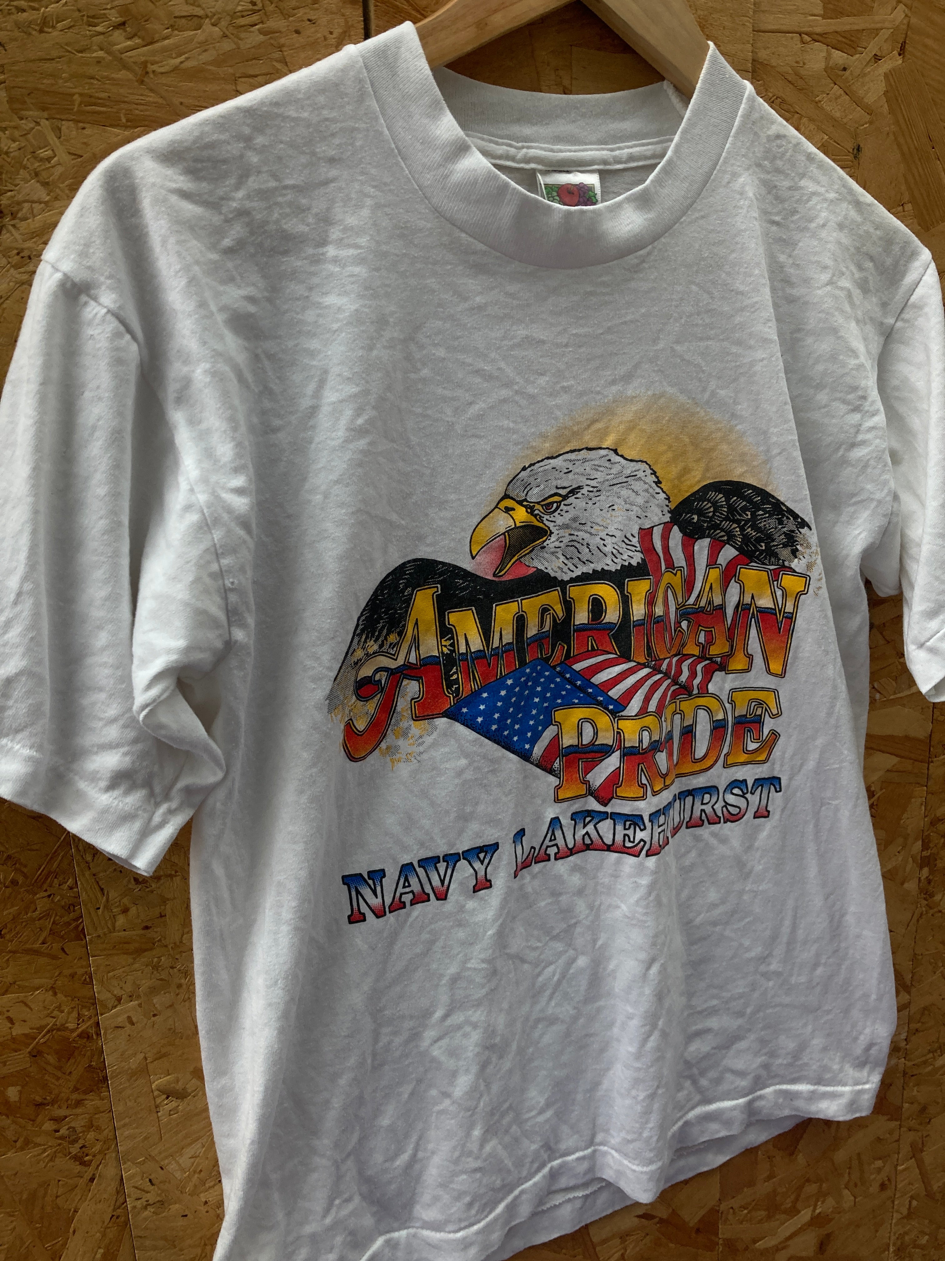 Vintage 90s Eagle American Pride Navy Lakehurst single stitch white souvenir t-shirt size medium by Fruit of the loom.