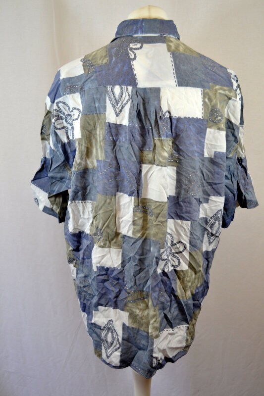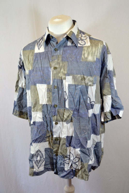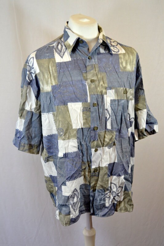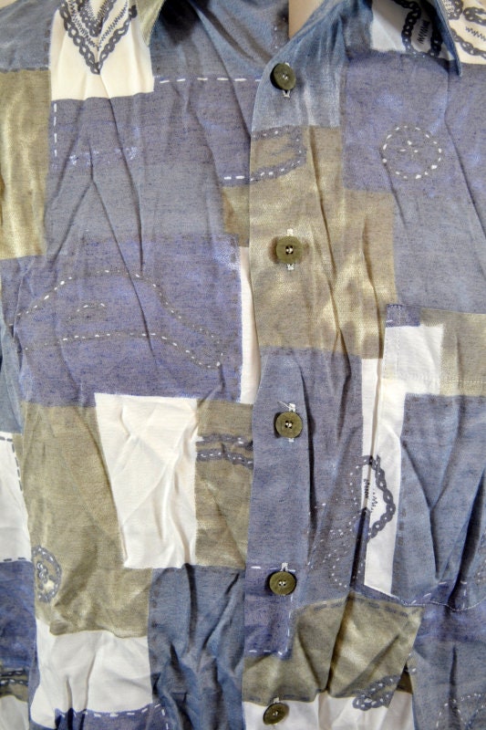 Vintage 90s faded grey geometric abstract pastel beige ugly shirt size XL