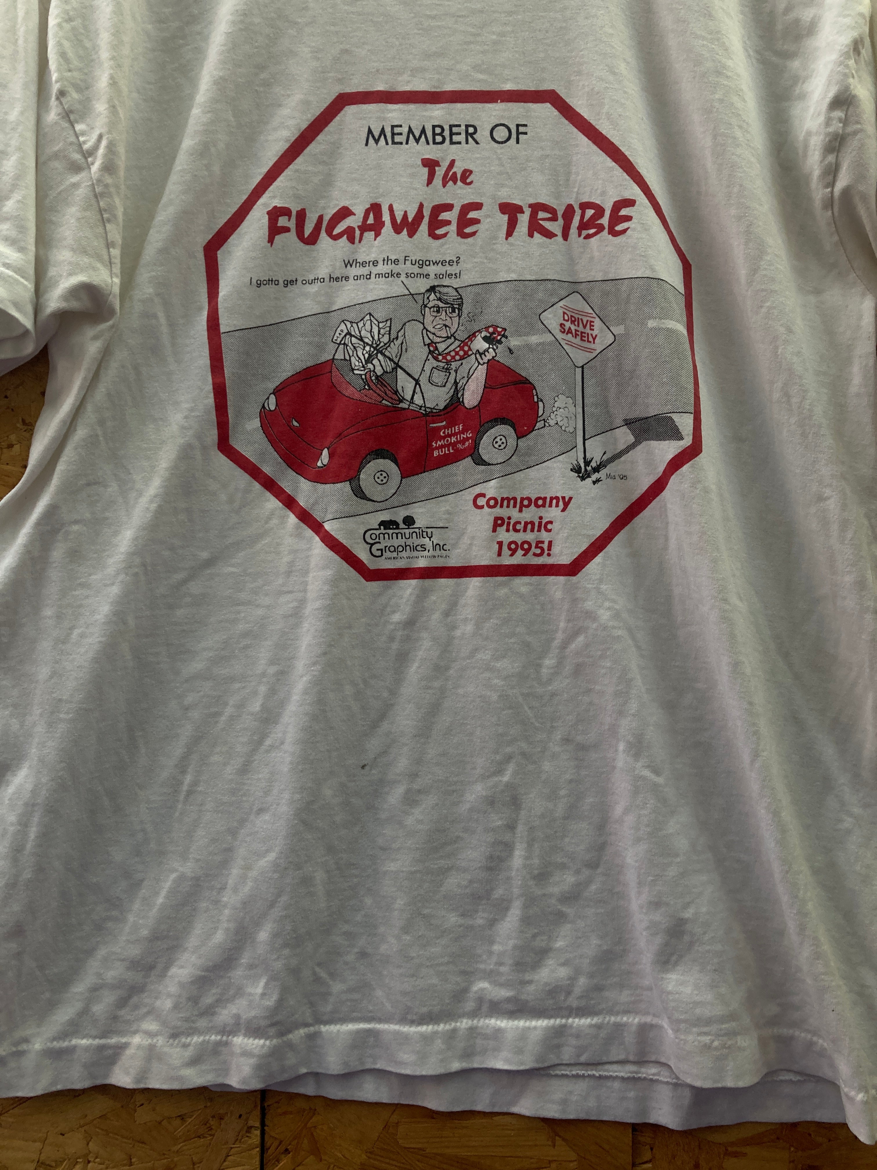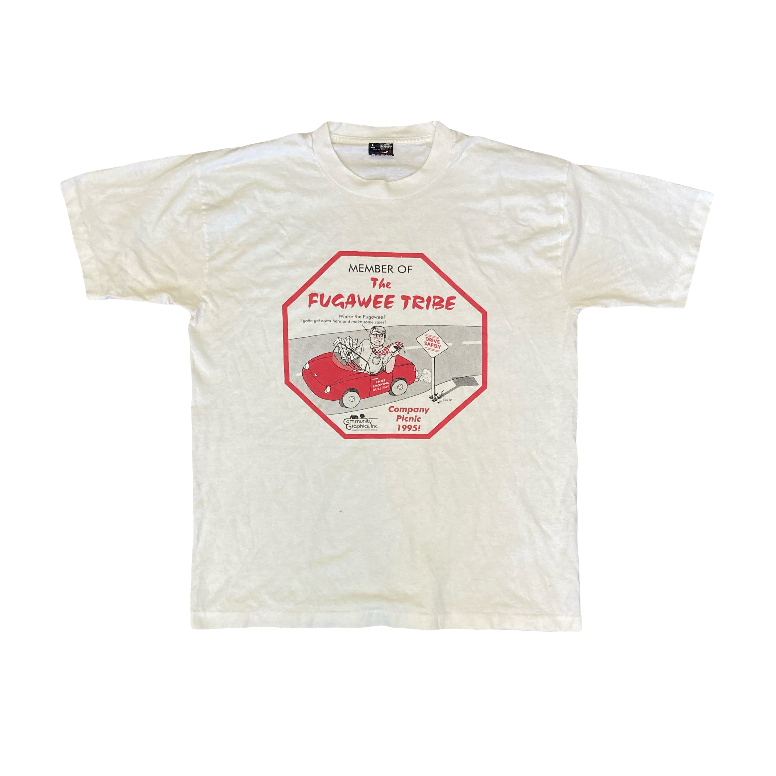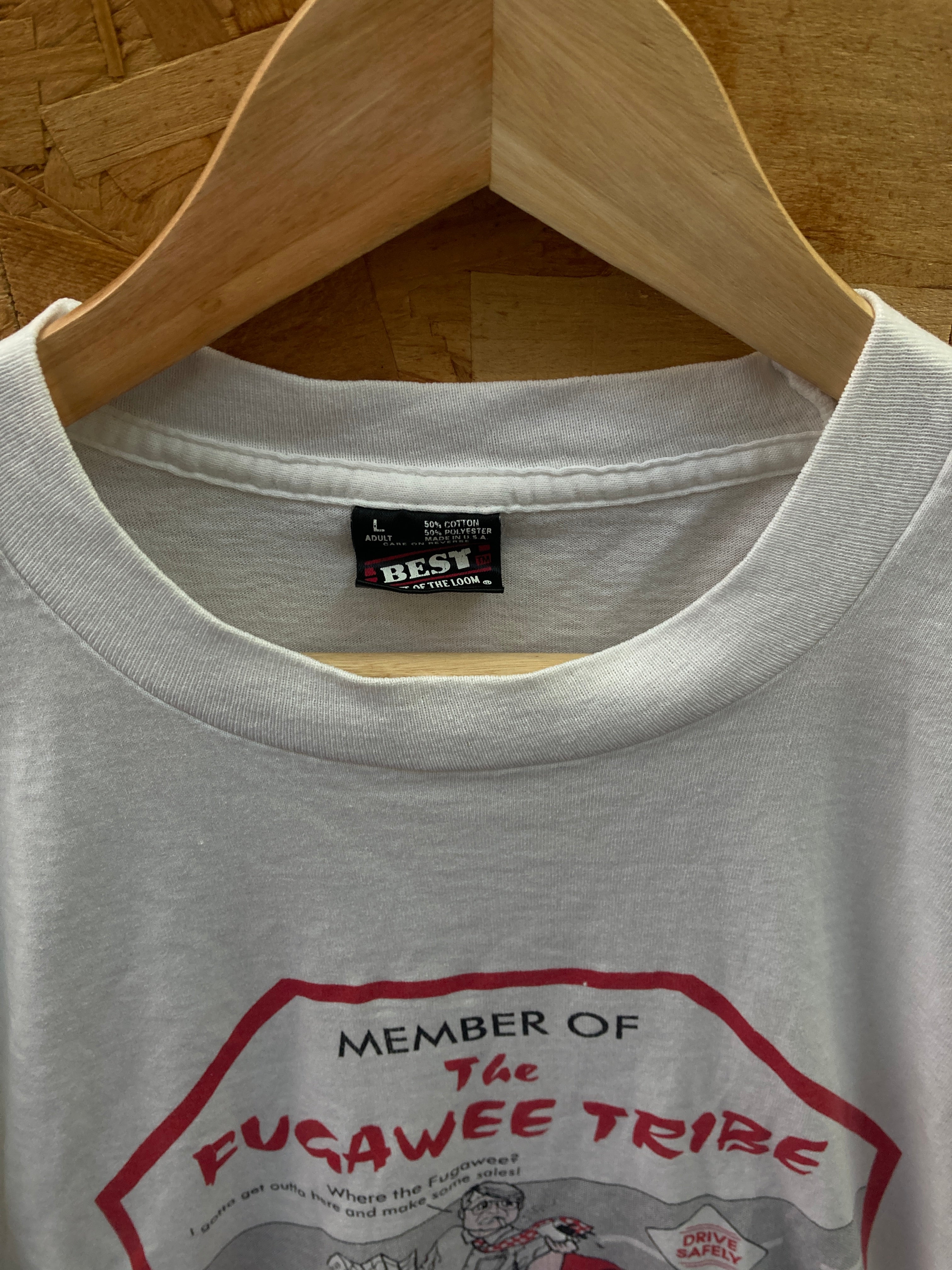 Vintage 90s Fugawee Tribe quirky company picnic single stitch t-shirt size large by screenstars - Unique company sales picnic souvenir white t-shirt - Excellent condition, 1 tiny ink mark on front, less than 2mm