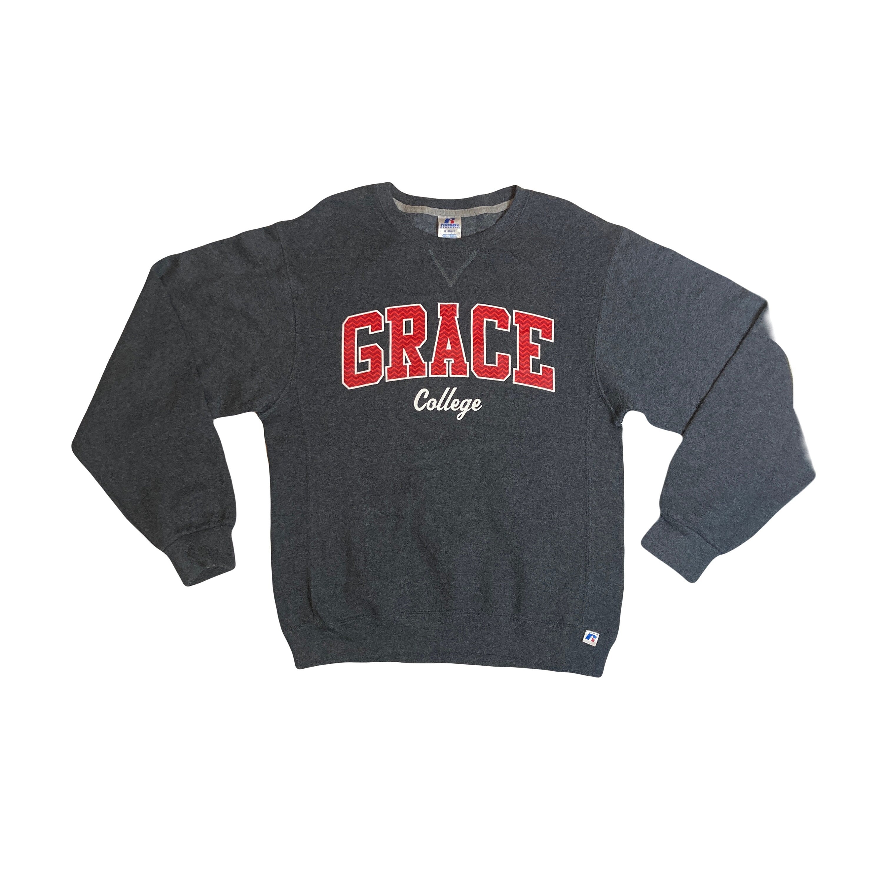 Vintage 90s Grace College grey red crew neck sweater size small by Russel Athletic