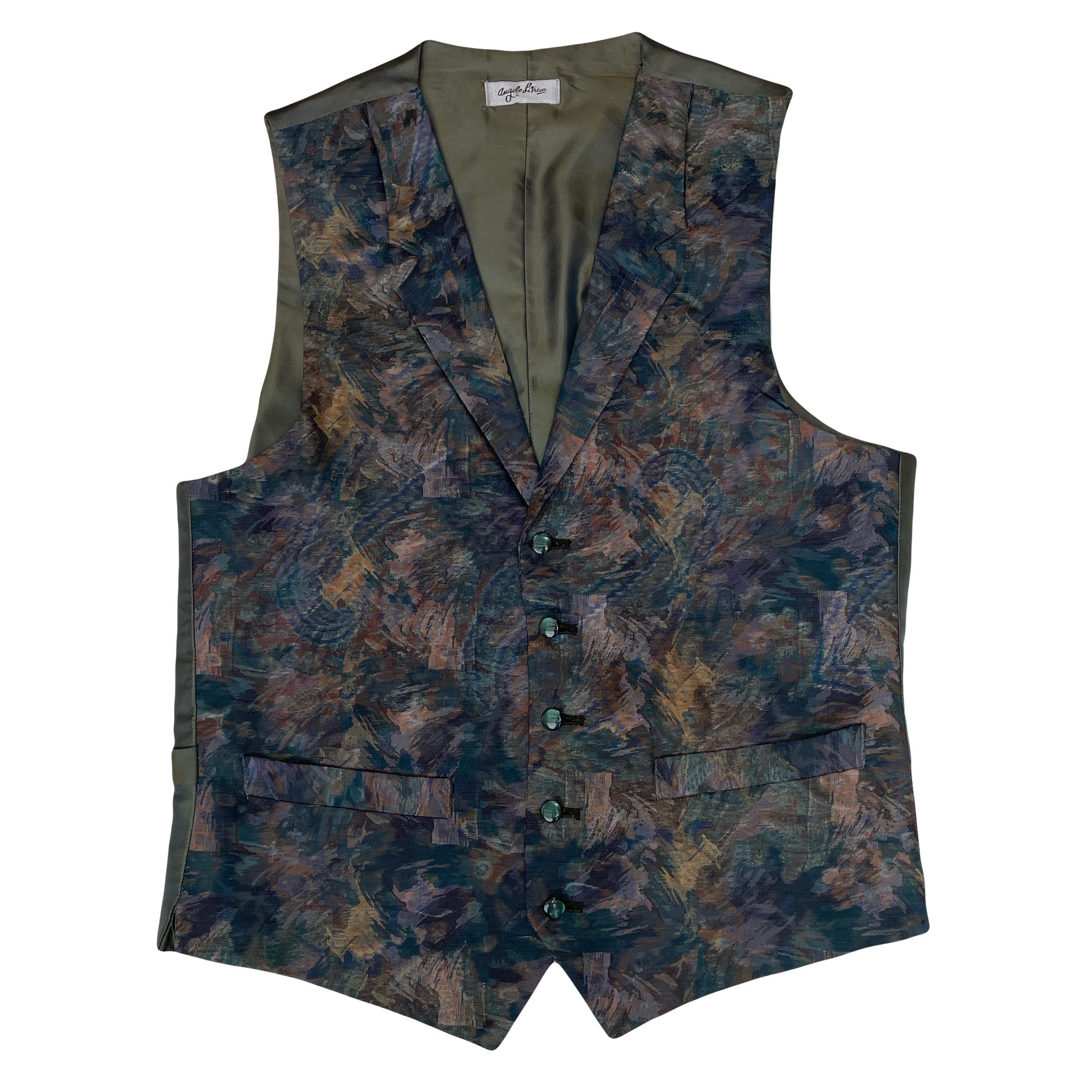 Vintage 90s green purple abstract ugly print men’s waistcoat size medium by Angelo Litrico. features emerald pearlescent buttons