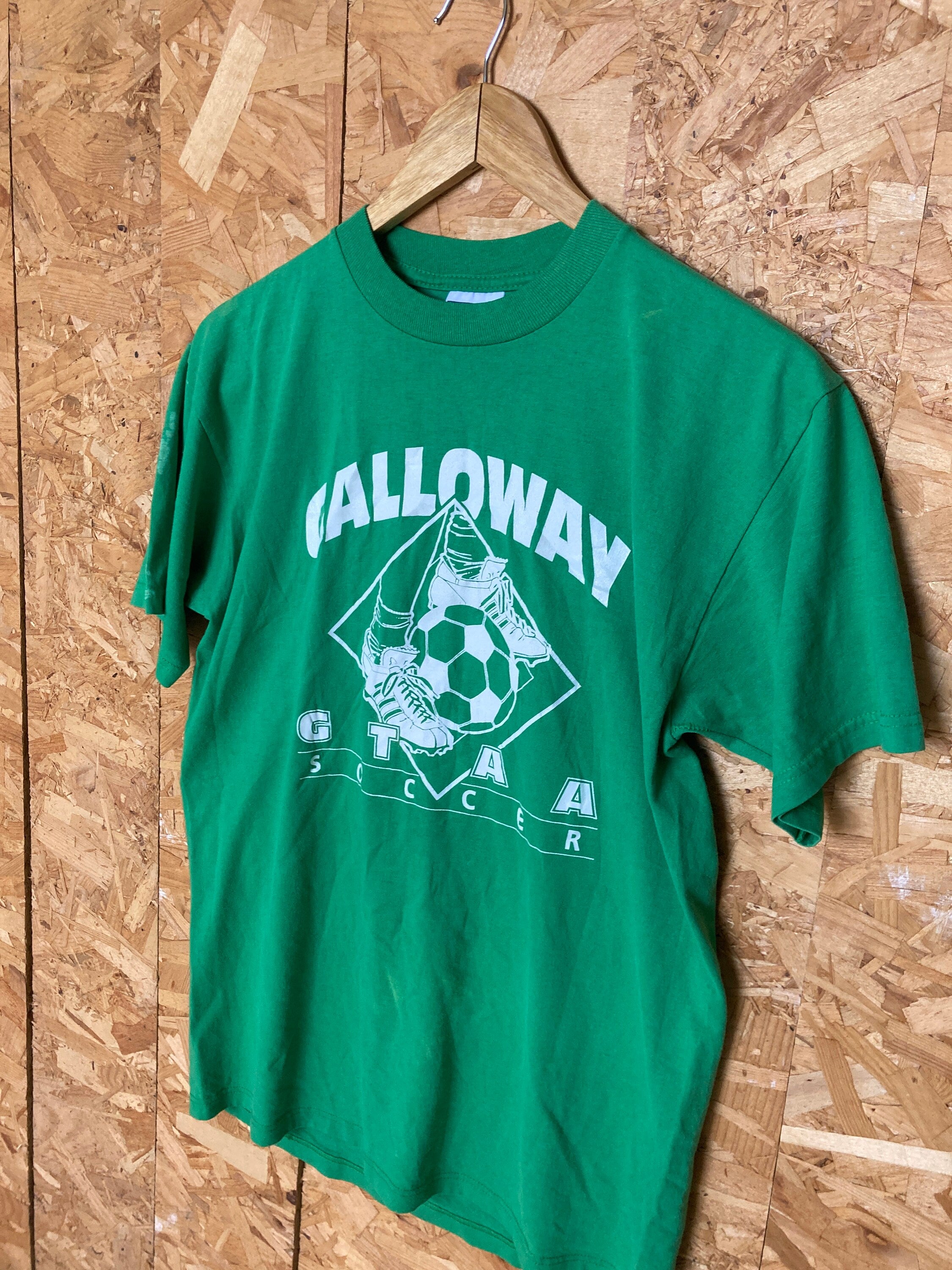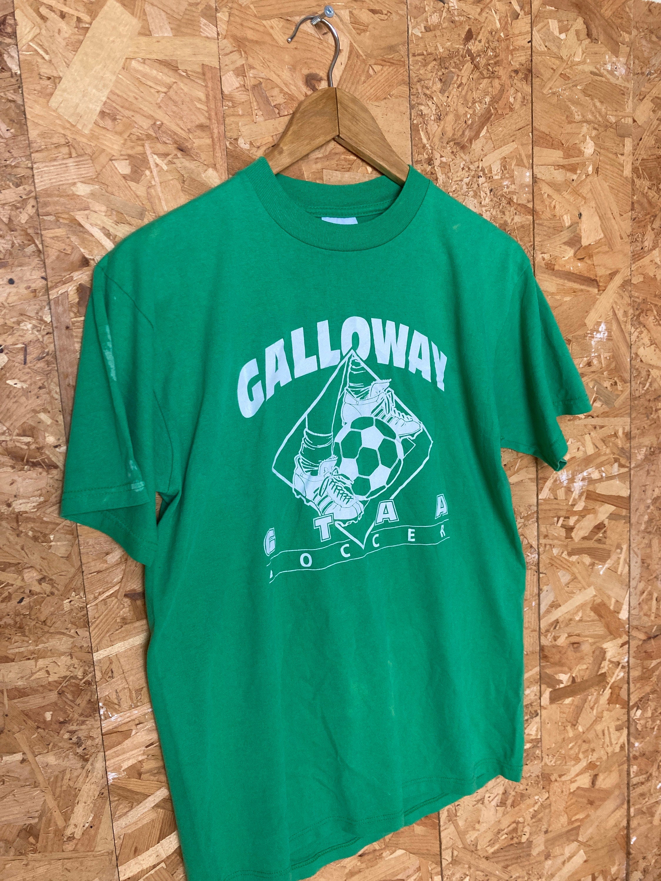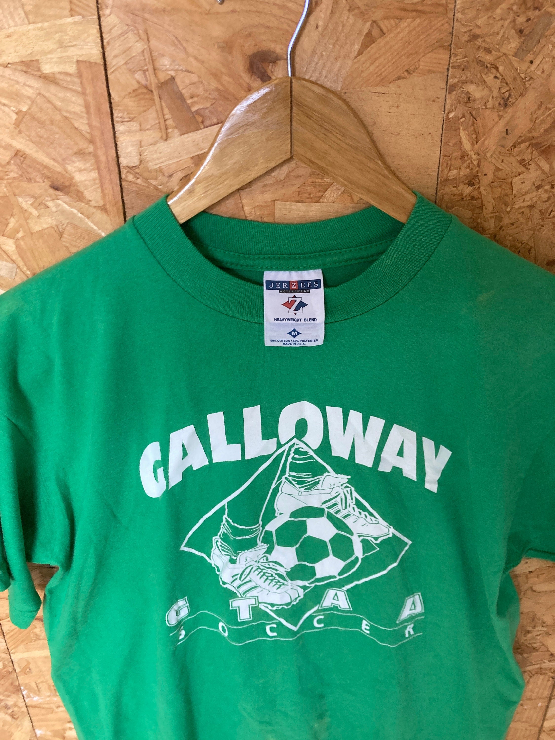 Vintage 90s green & white Galloway CTAA high school soccer team souvenir USA t-shirt size medium