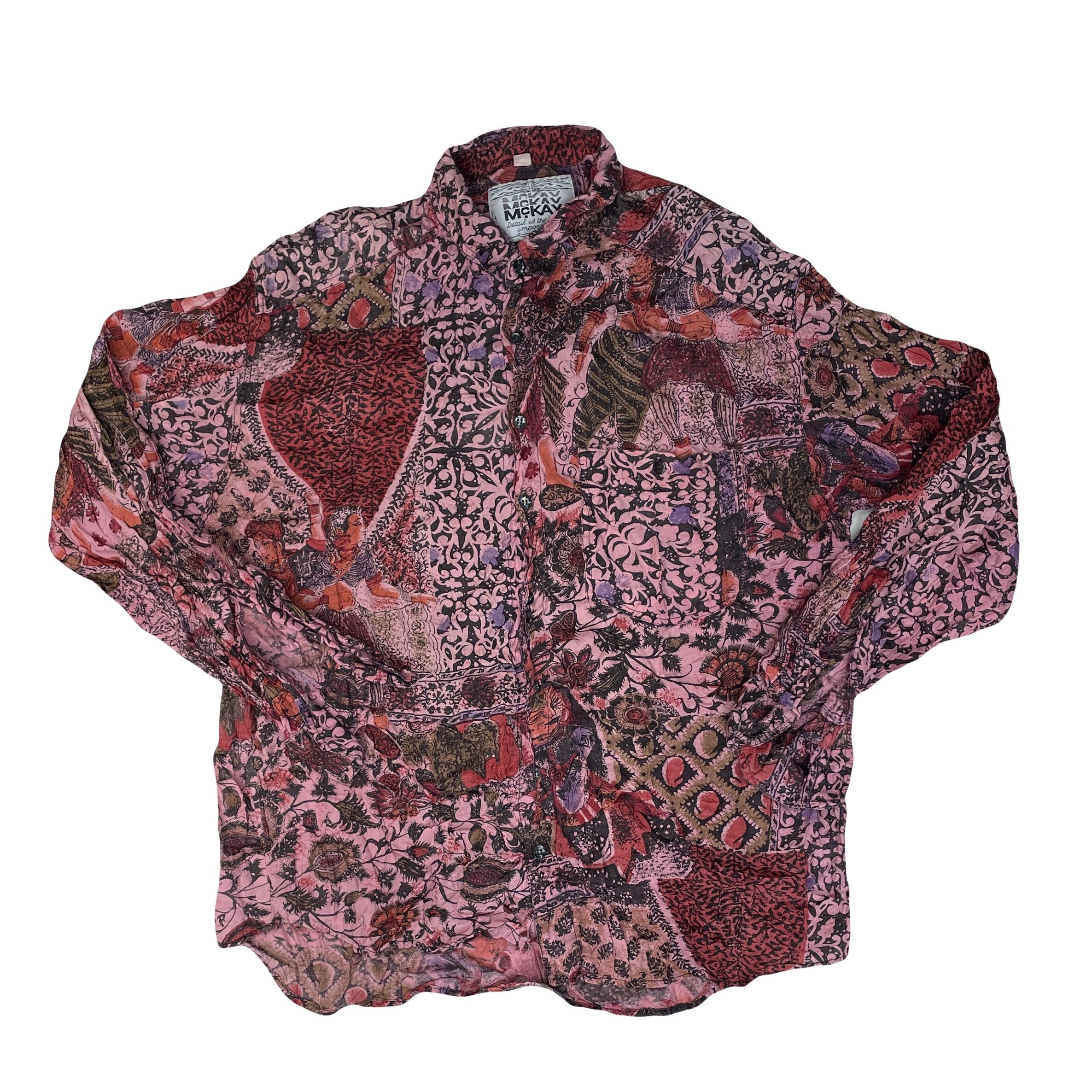 Vintage 90s grungy ethnic block print crazy patter long sleeve ugly shirt size large by McKay