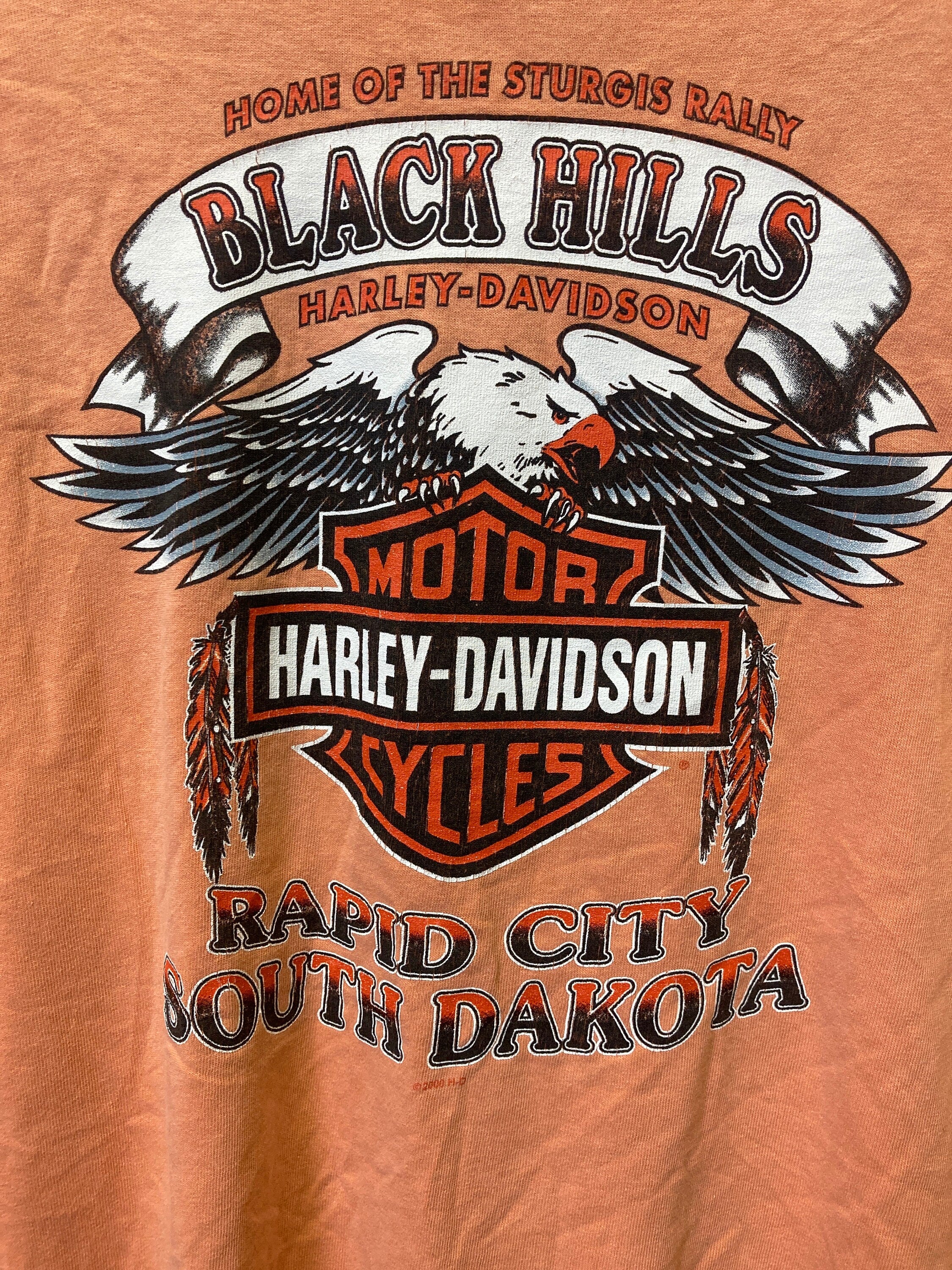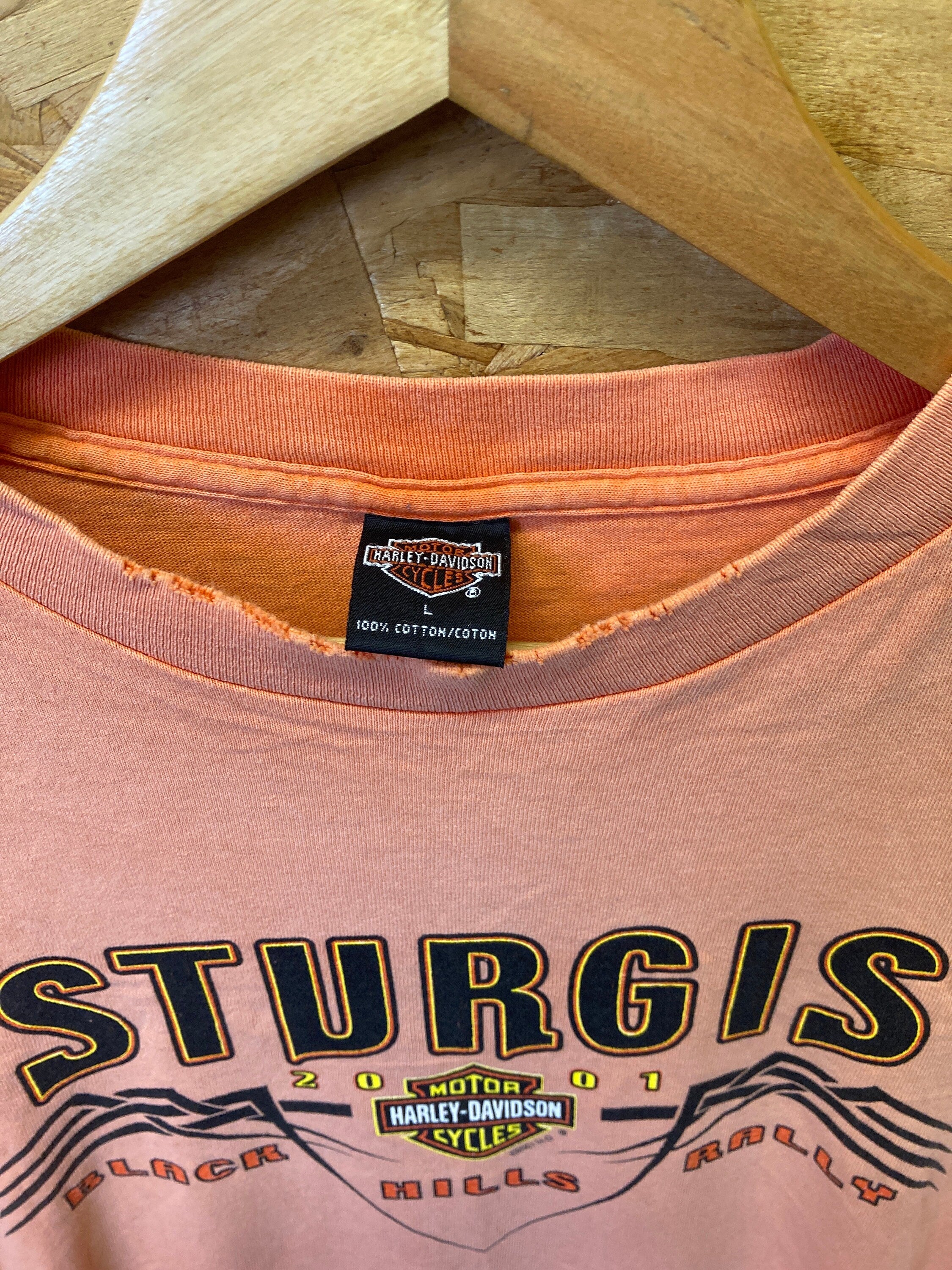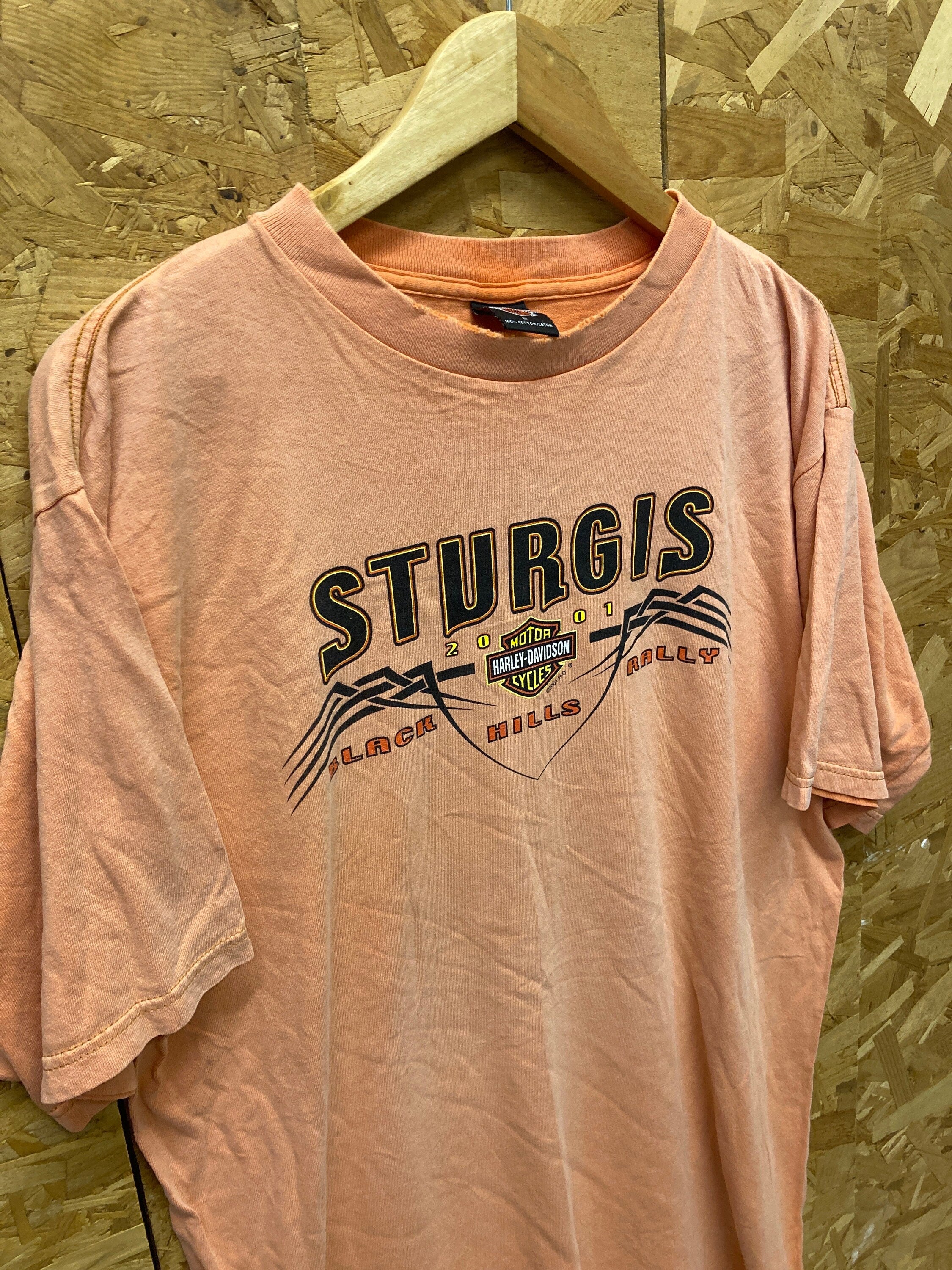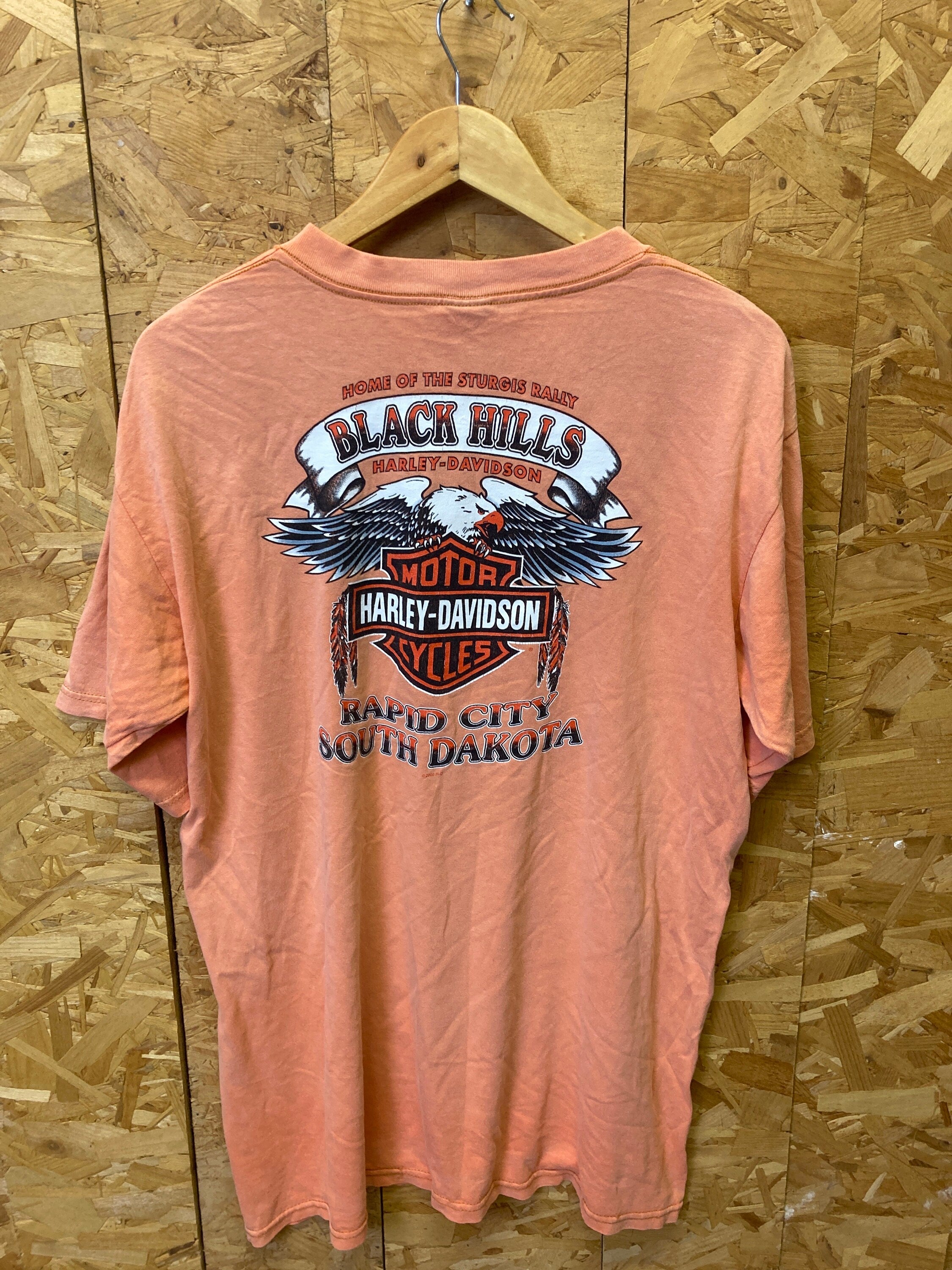 Vintage 90s Harley Davidson Sturgis Black Hills Rally Dakota branch distressed salmon pink double side print t shirt size large