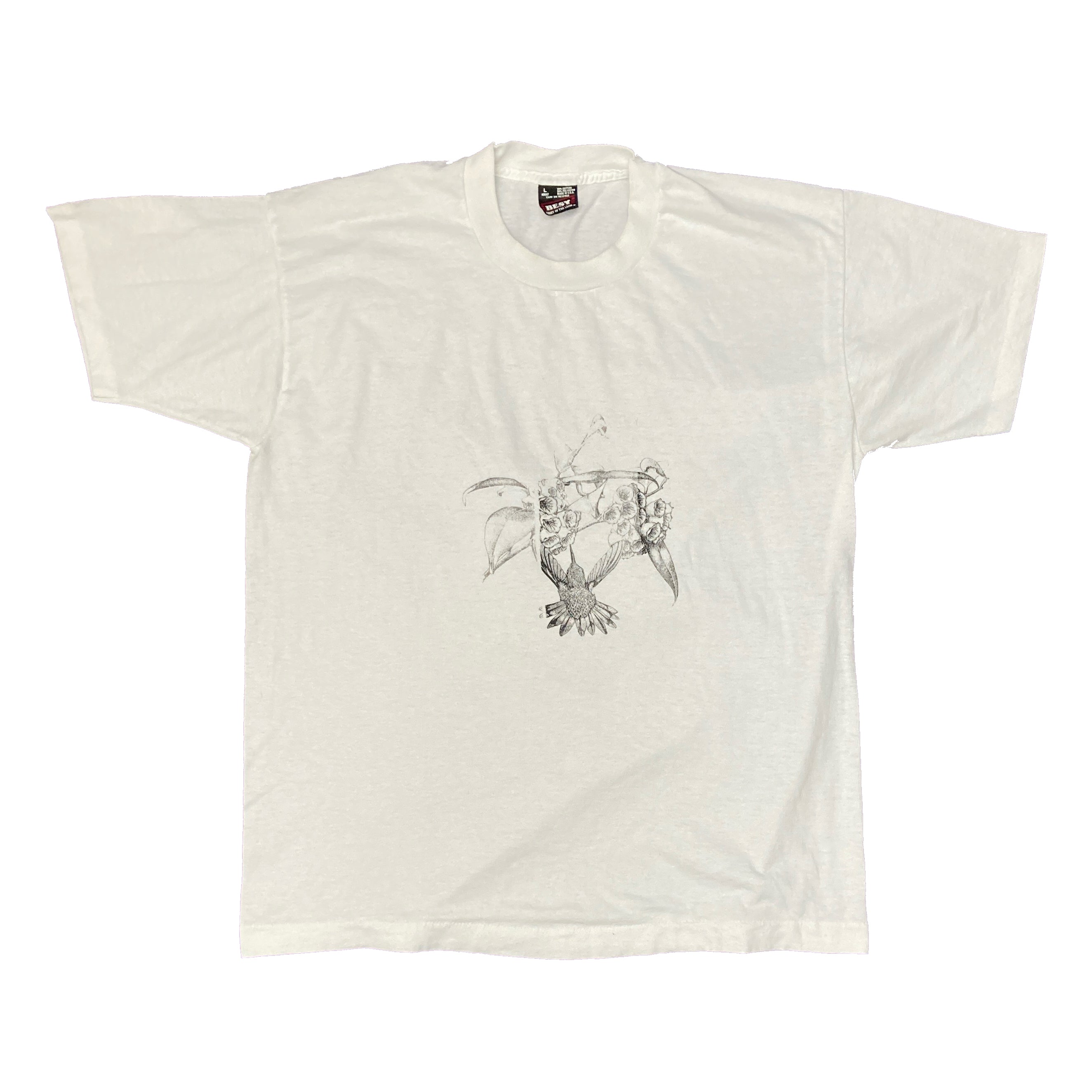 Vintage 90s Hummingbird illustration single stitch white t-shirt size large by BEST