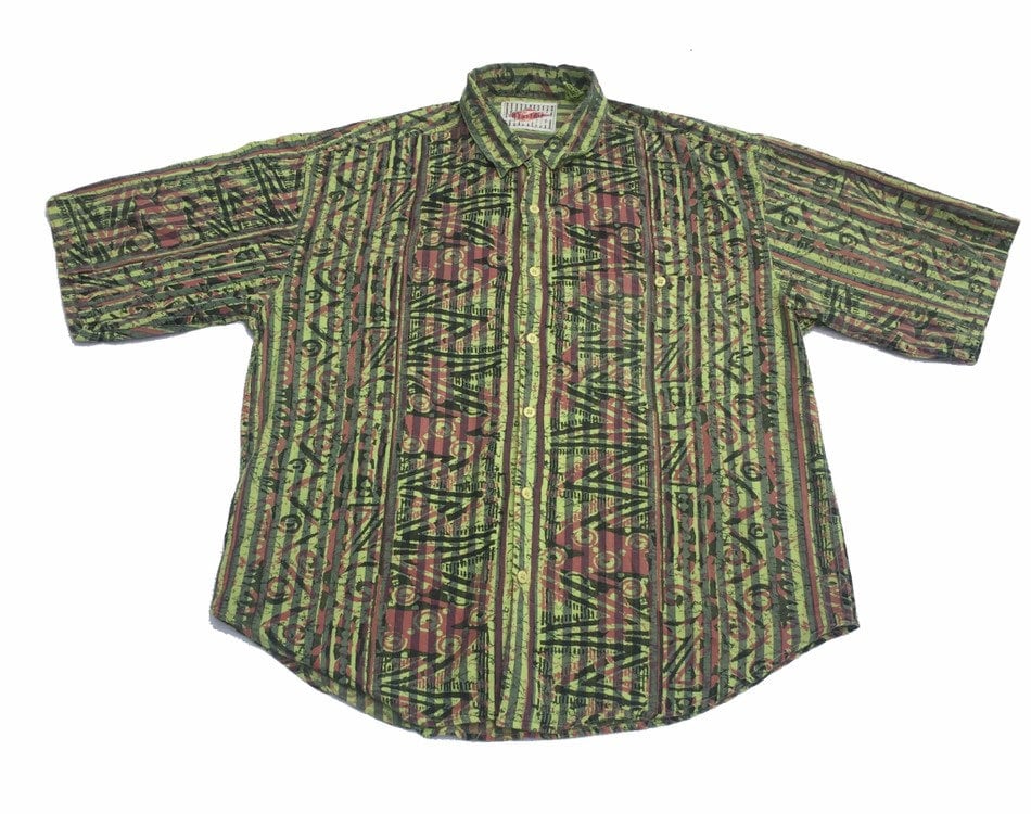 Vintage 90s lime green batik print pattern striped oversized shirt sleeve shirt oversized size medium