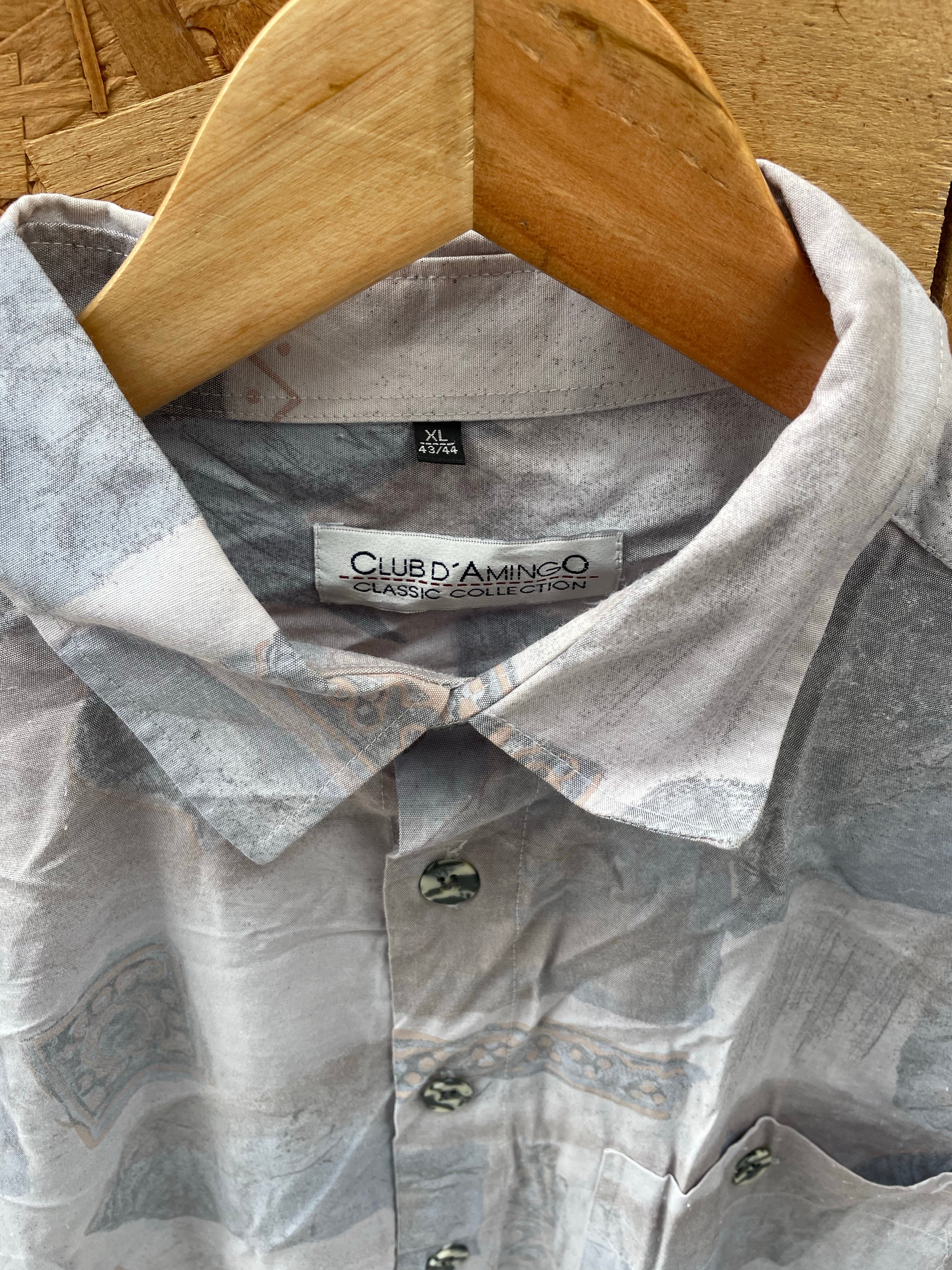 Vintage Club D'amingo Classic Collection men's long sleeve button-up shirt. Size XL. Gray and beige pastel abstract print. Excellent pre-owned condition. Color: Gray.