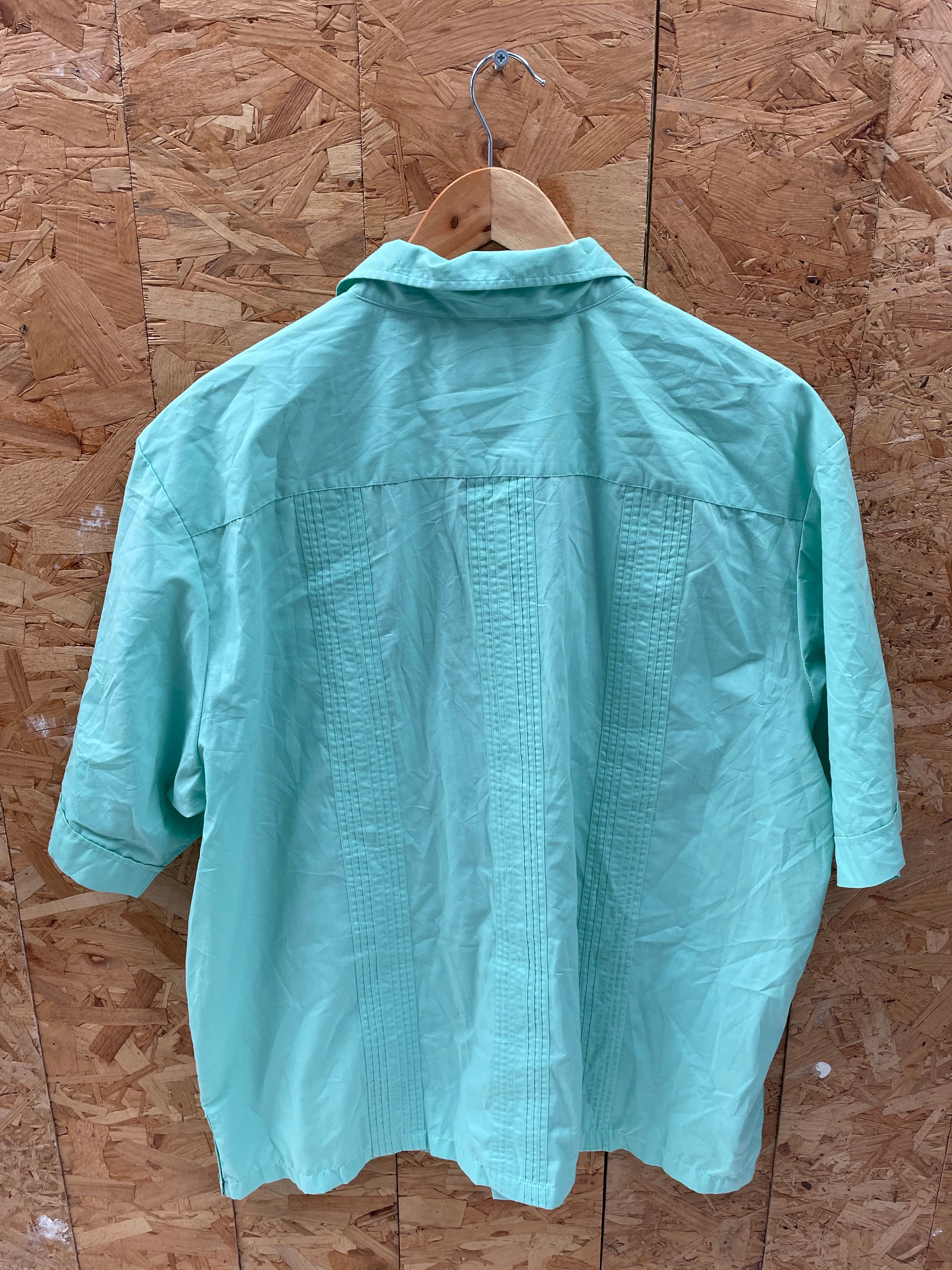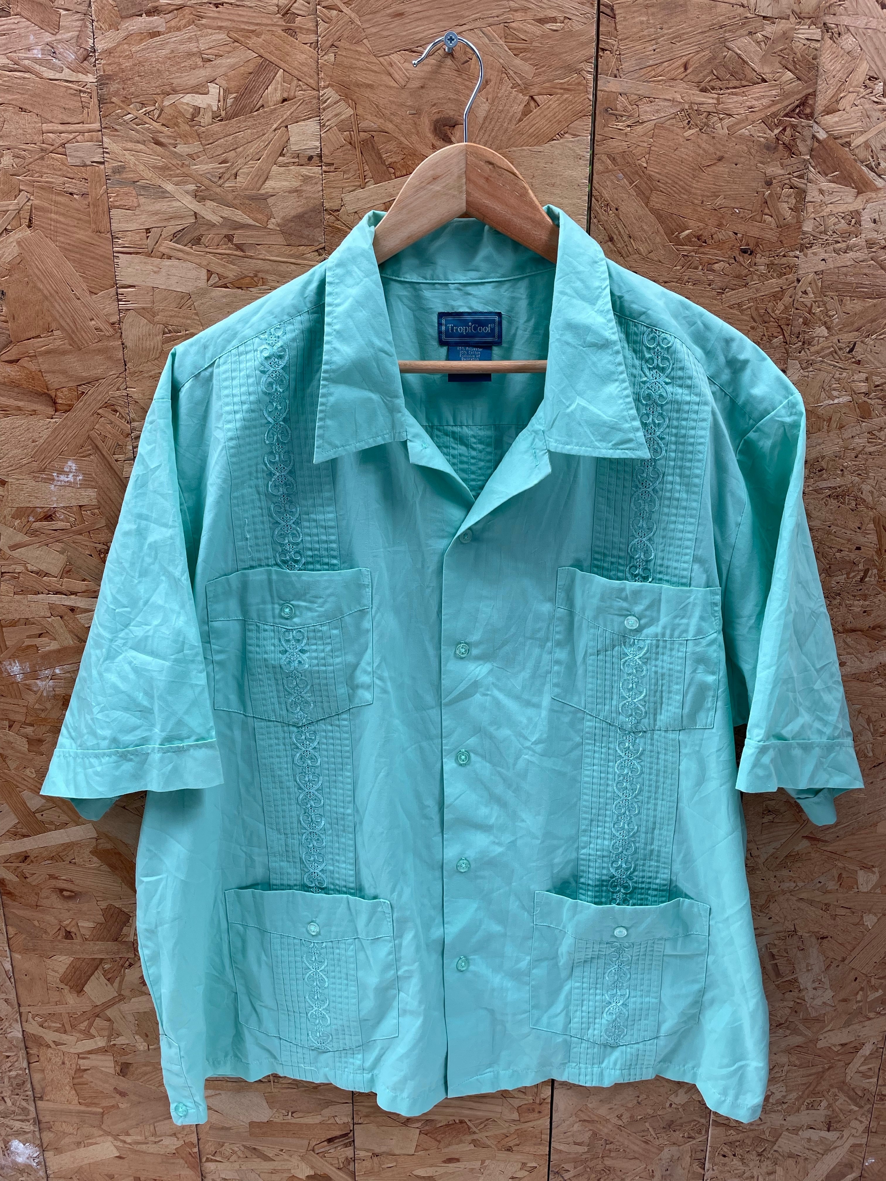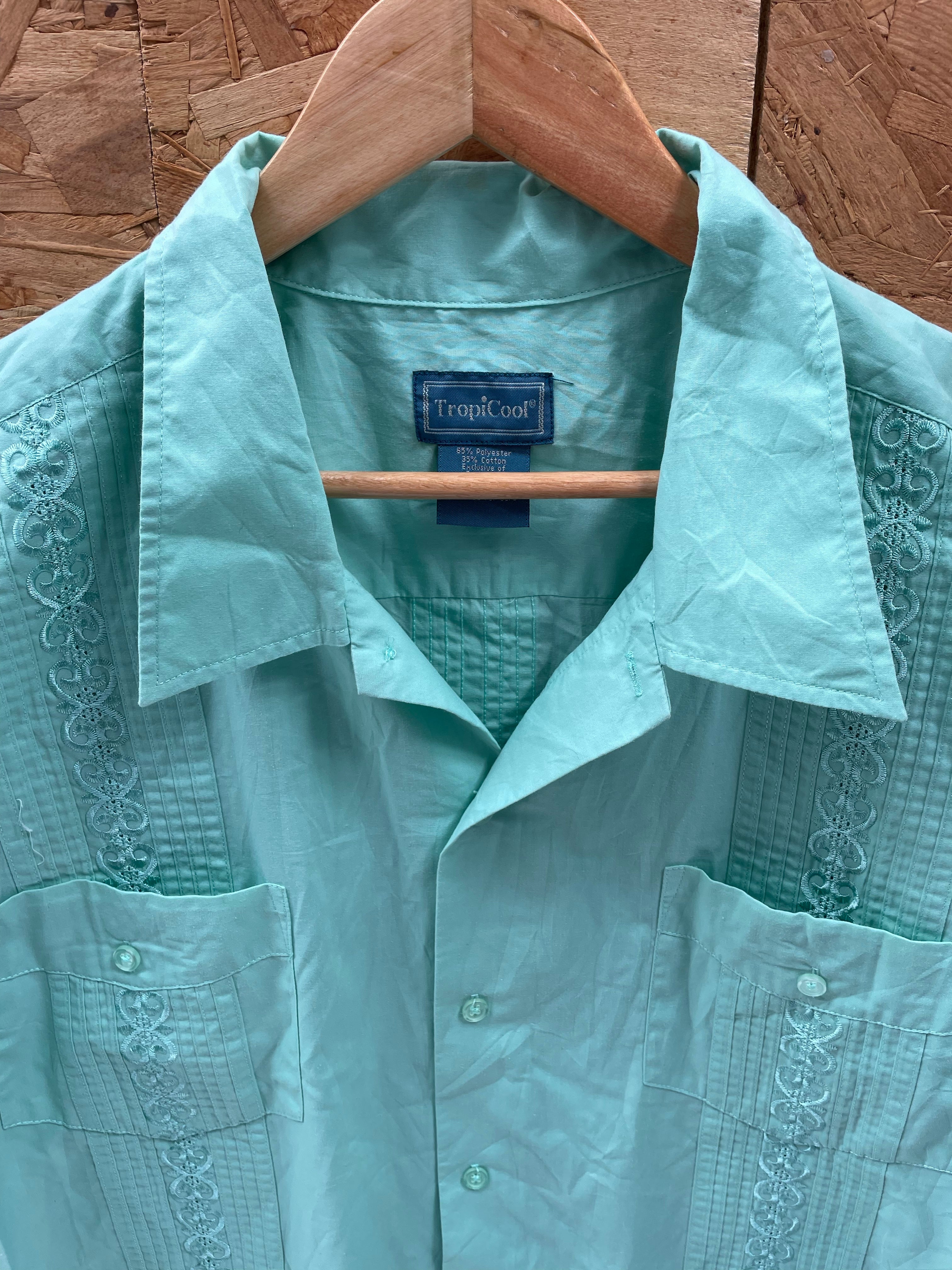 TropicCool men's guayabera shirt in mint green. Features embroidered details and classic guayabera styling. Size Large. Excellent pre-owned condition. Color: Mint Green.