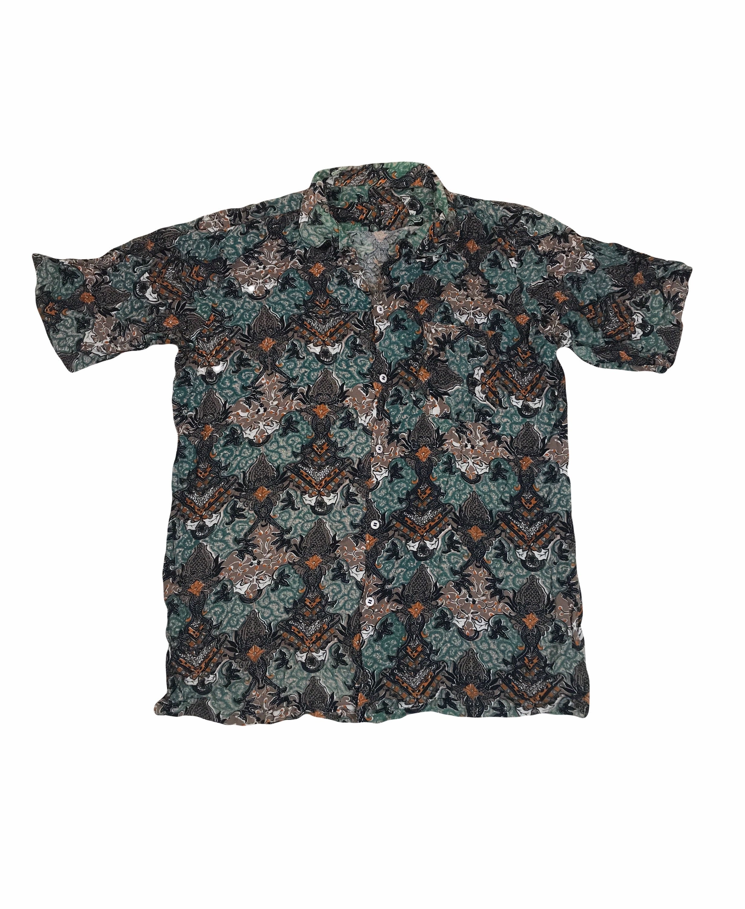 Vintage 90s mens ugly grungy green brown abstract paisley pattern shirt sleeve summer party shirt size large
