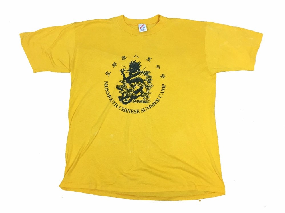 Vintage 90s Monmouth Chinese Summer Camp quirky USA yellow t shirt size XL
