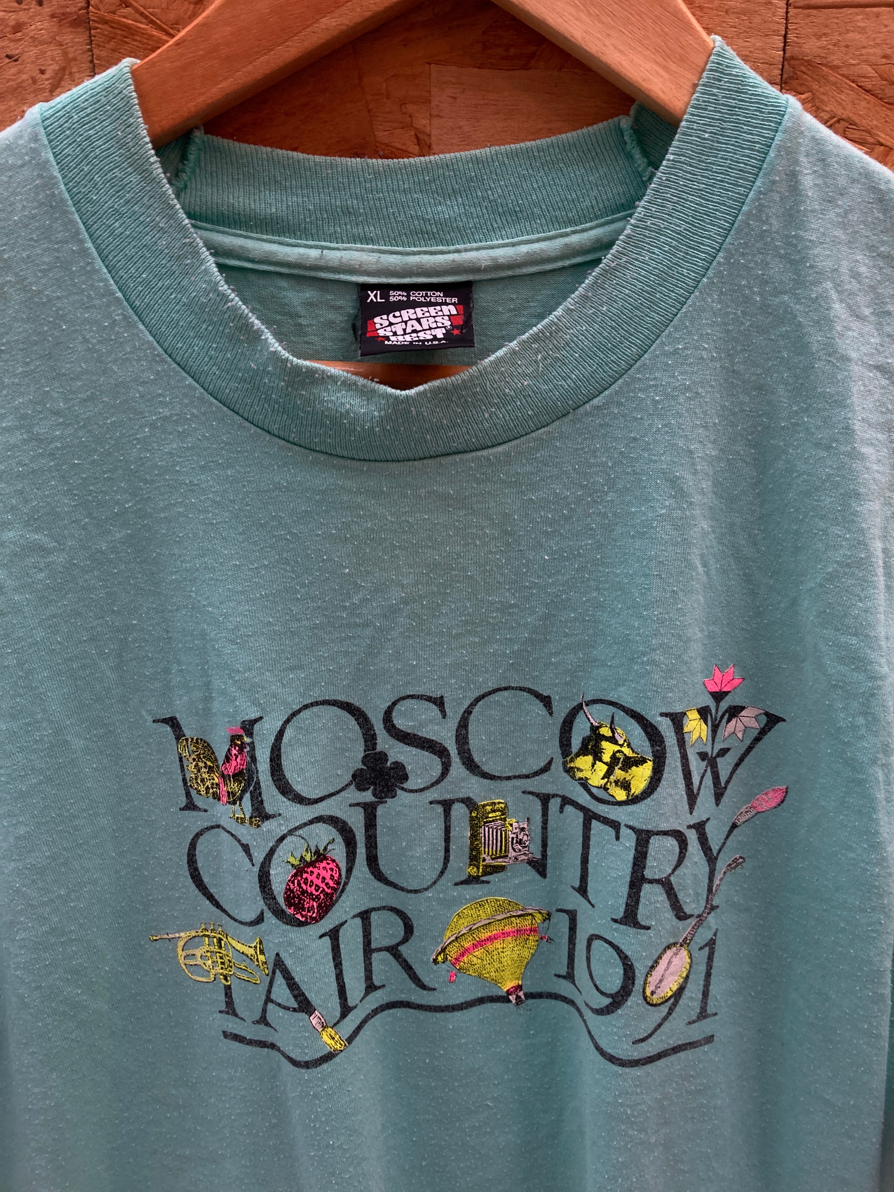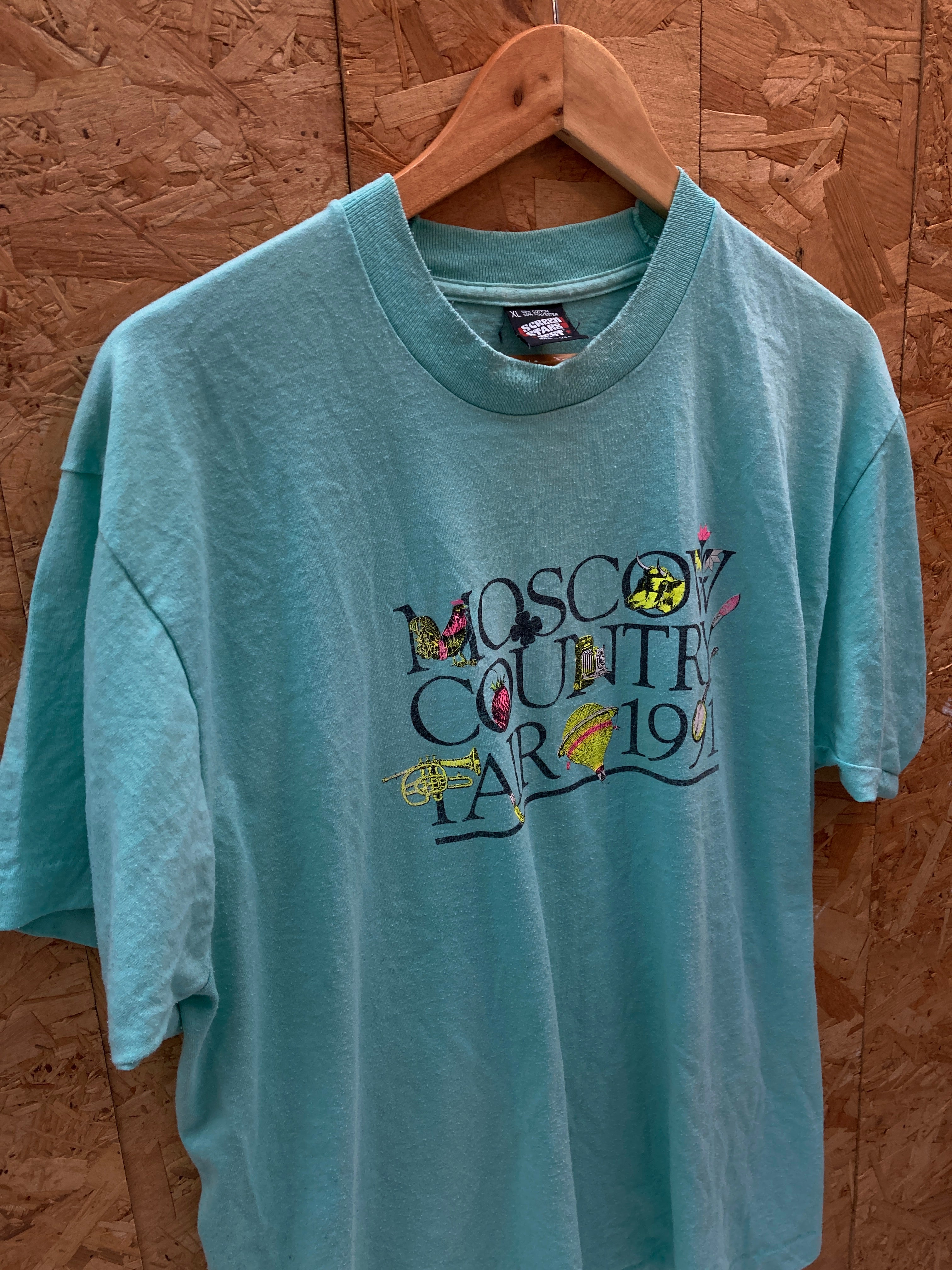 Vintage 90s Moscow country fair turquoise blue single stitch t-shirt size XL by Fruit of the loom Best