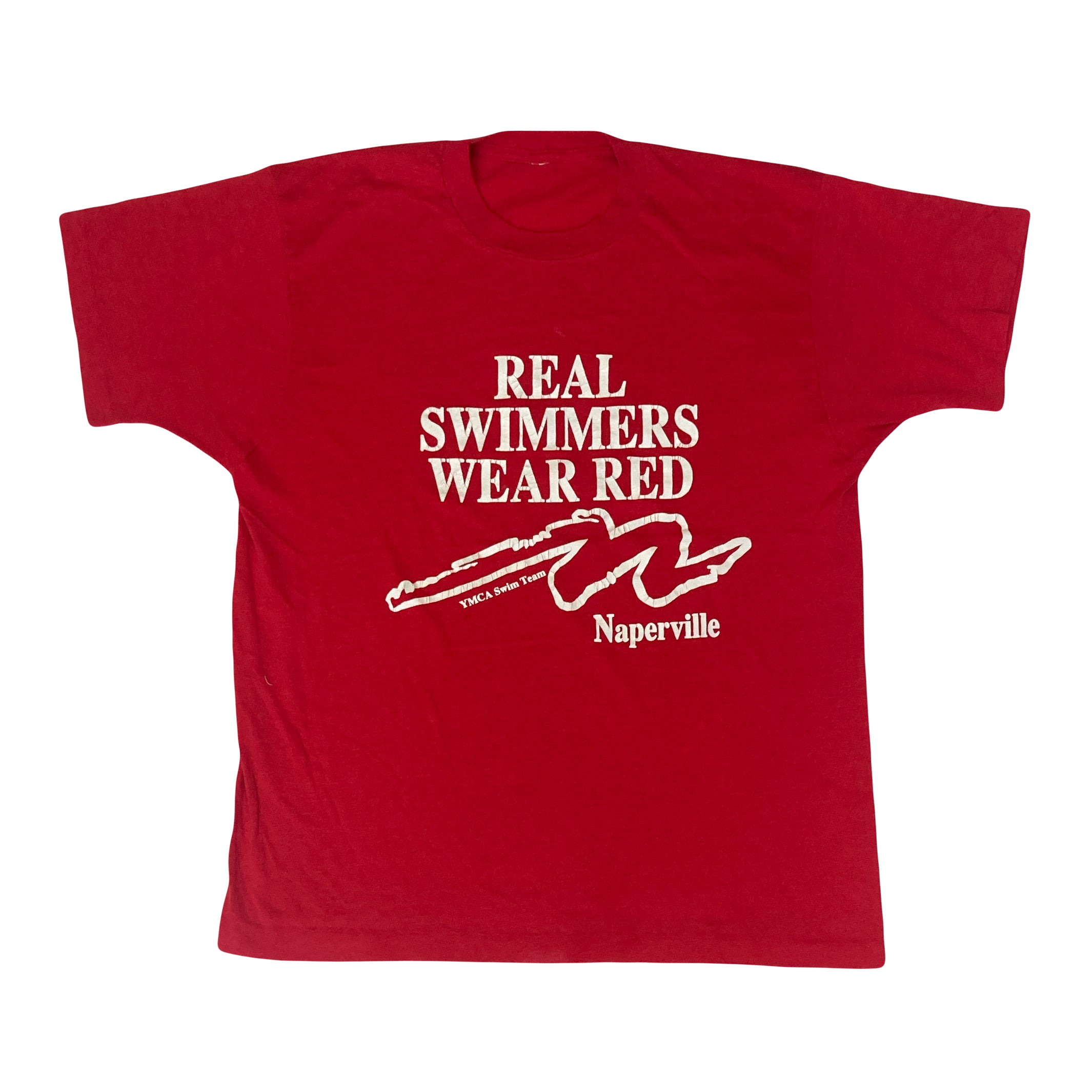 Vintage 90s Naperville Swimmers souvenir single stitch red t-shirt size large