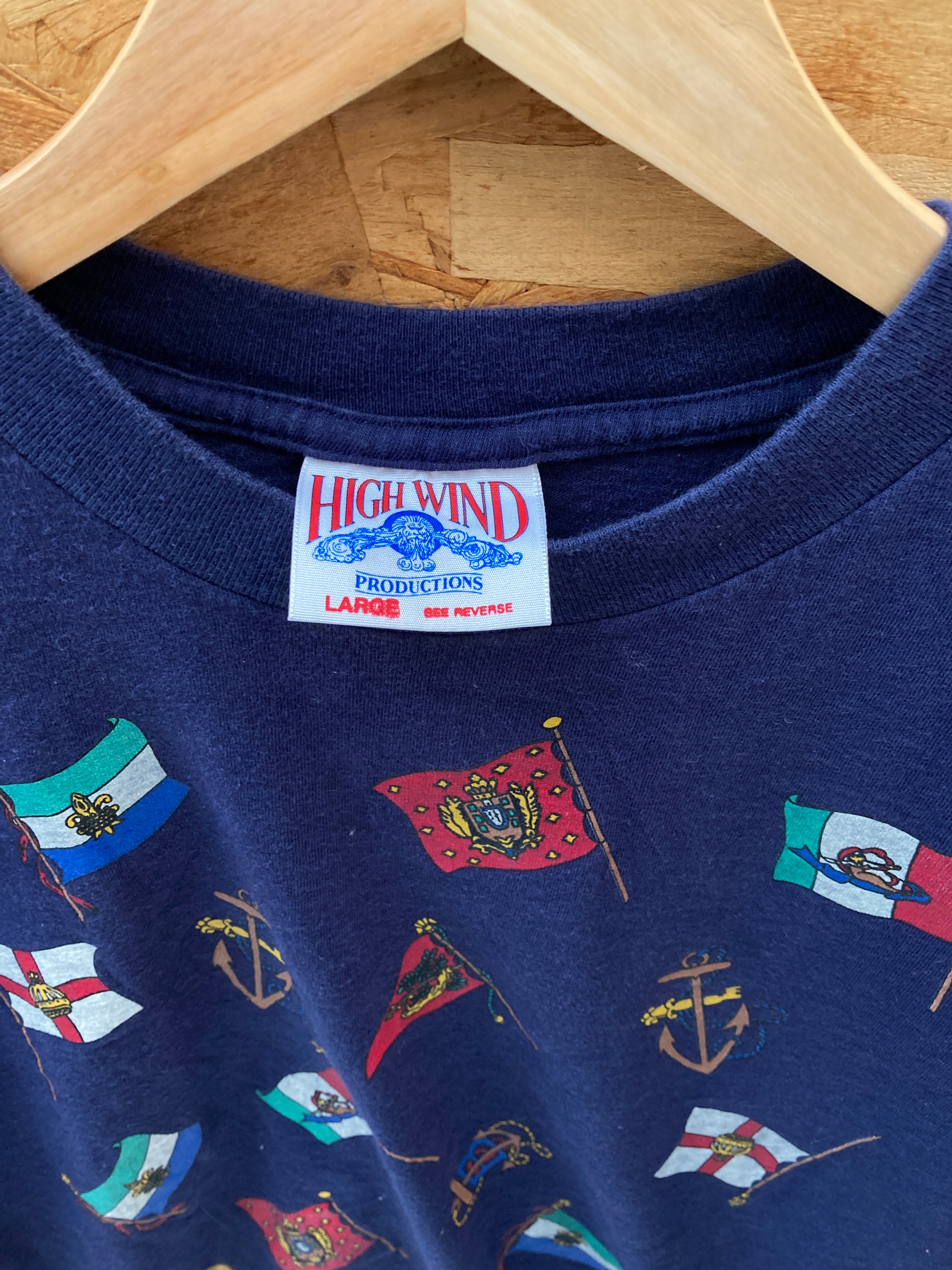 Vintage 90s nautical flags navy blue single stitch souvenir t-shirt size large by High Wind
