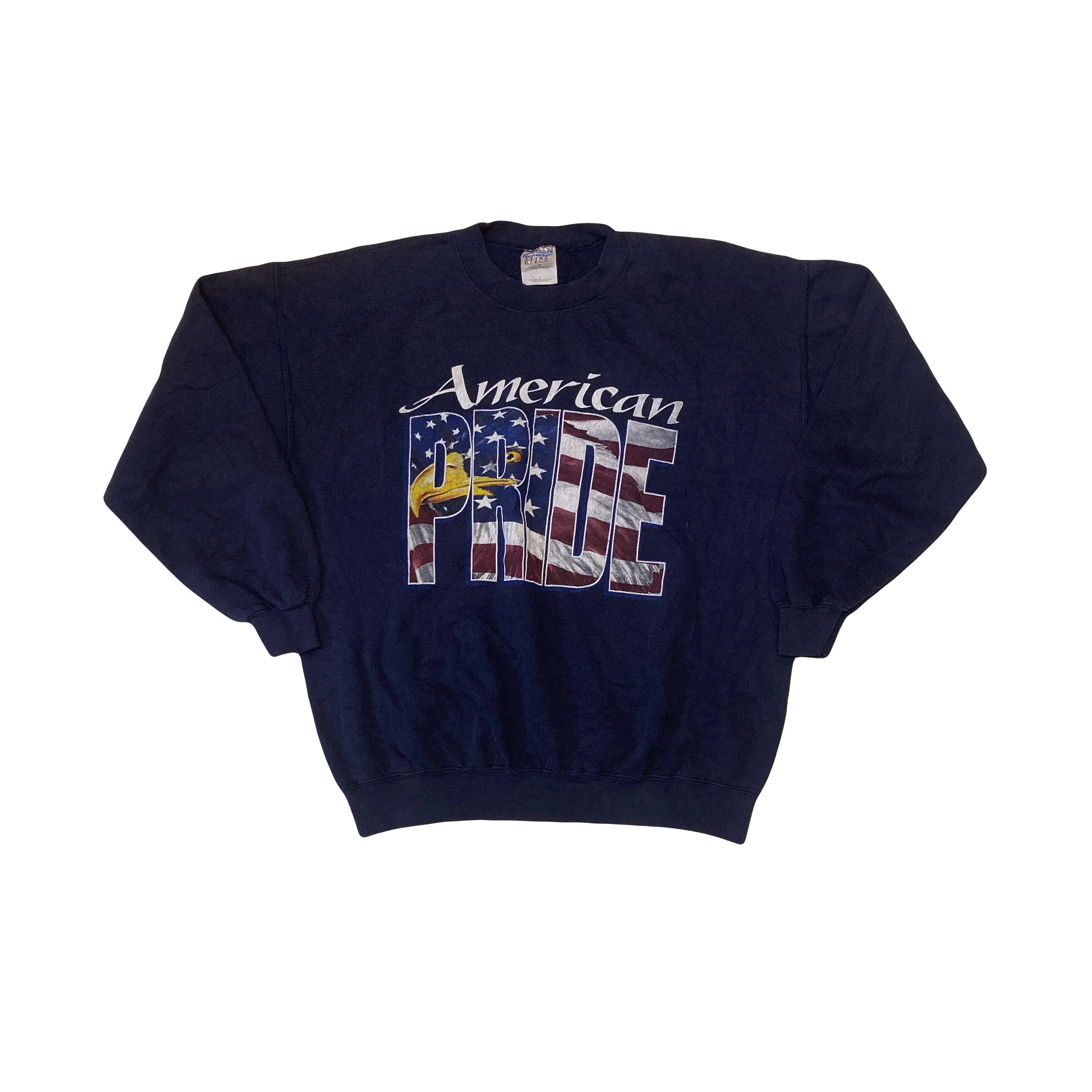Vintage 90s navy blue American pride eagle print USA souvenir crew neck sweater size large