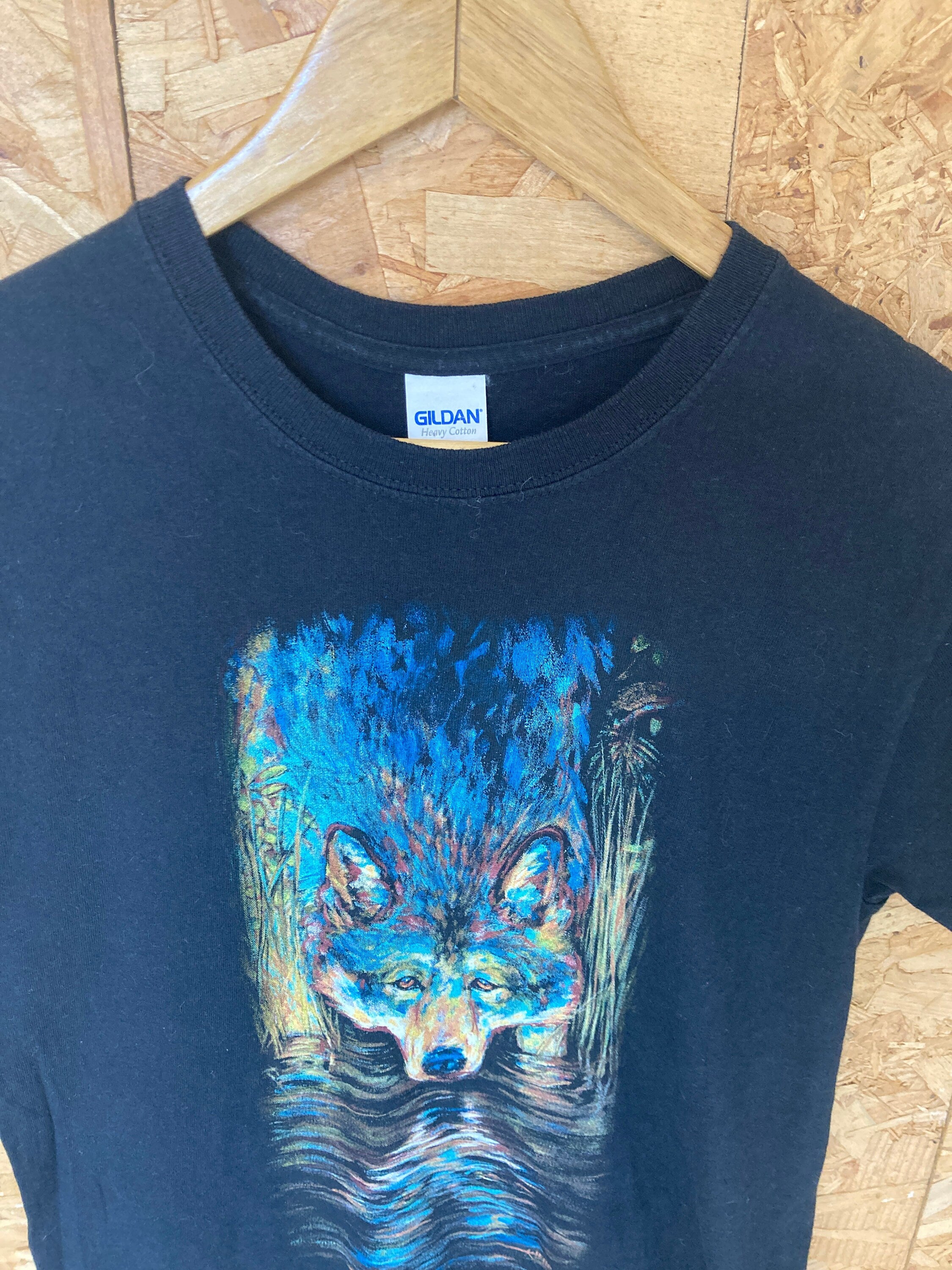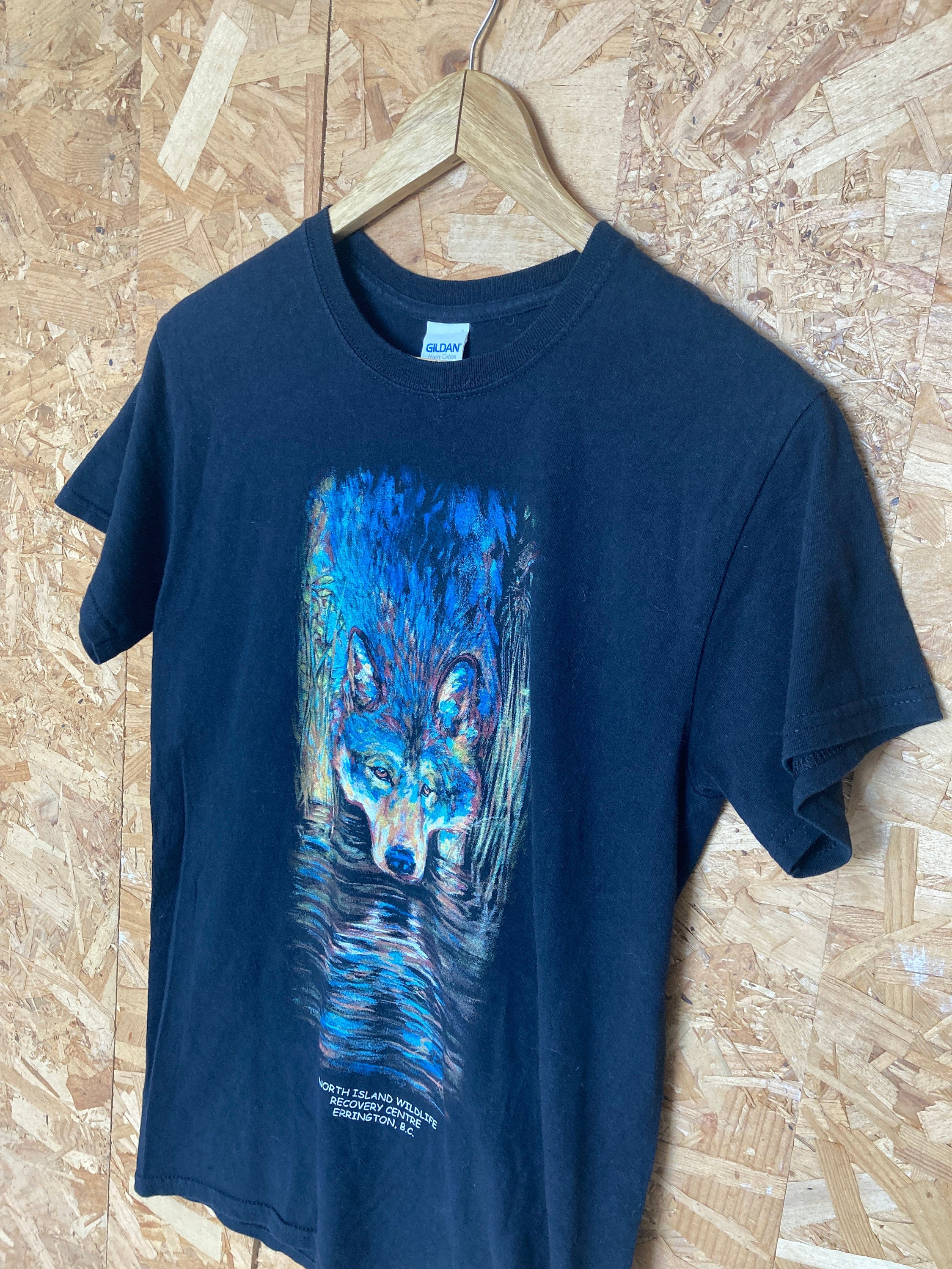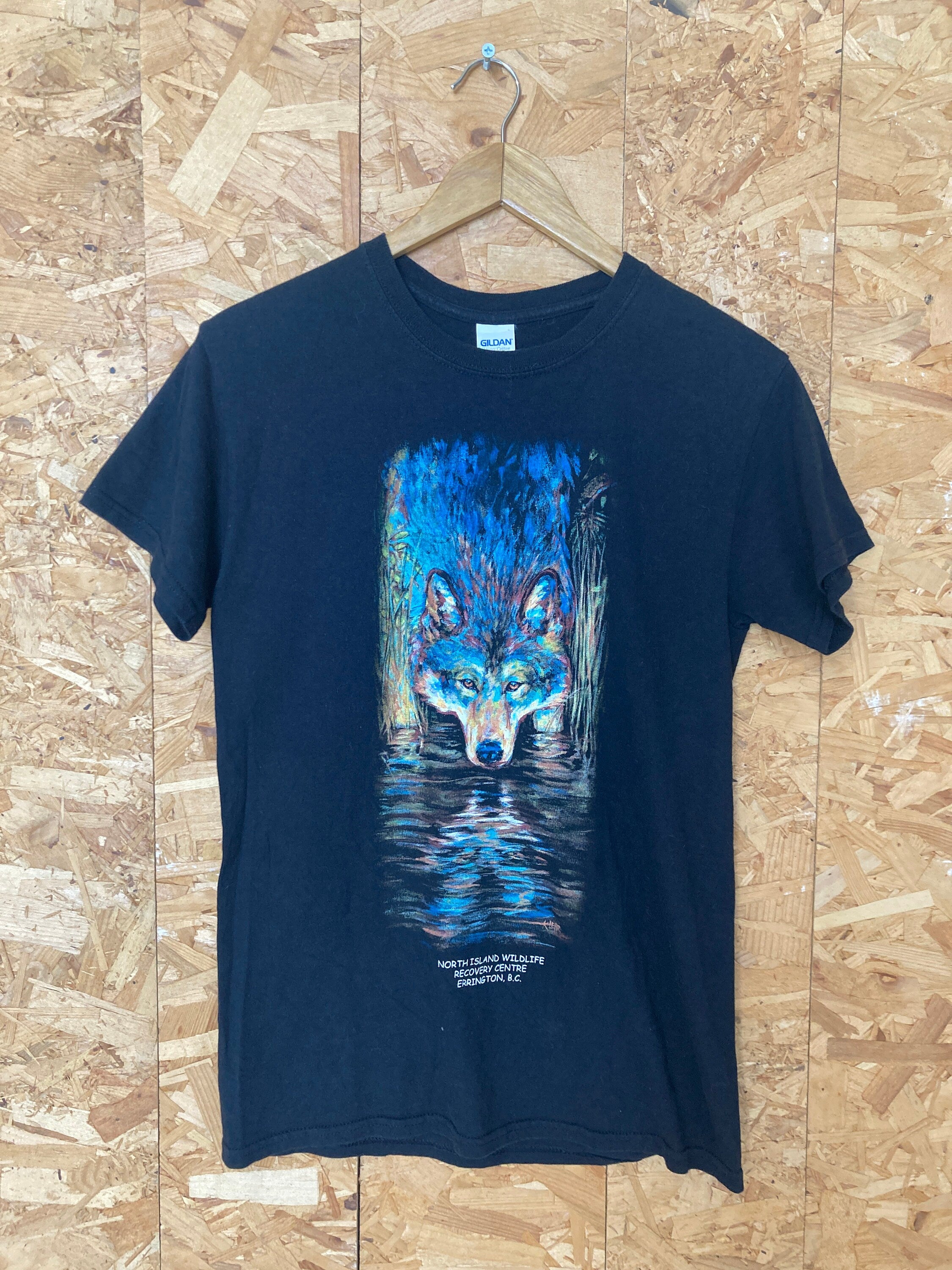 Vintage 90s North Island Recovery Wolf reflection gouache pastel artwork print black souvenir t-shirt size small