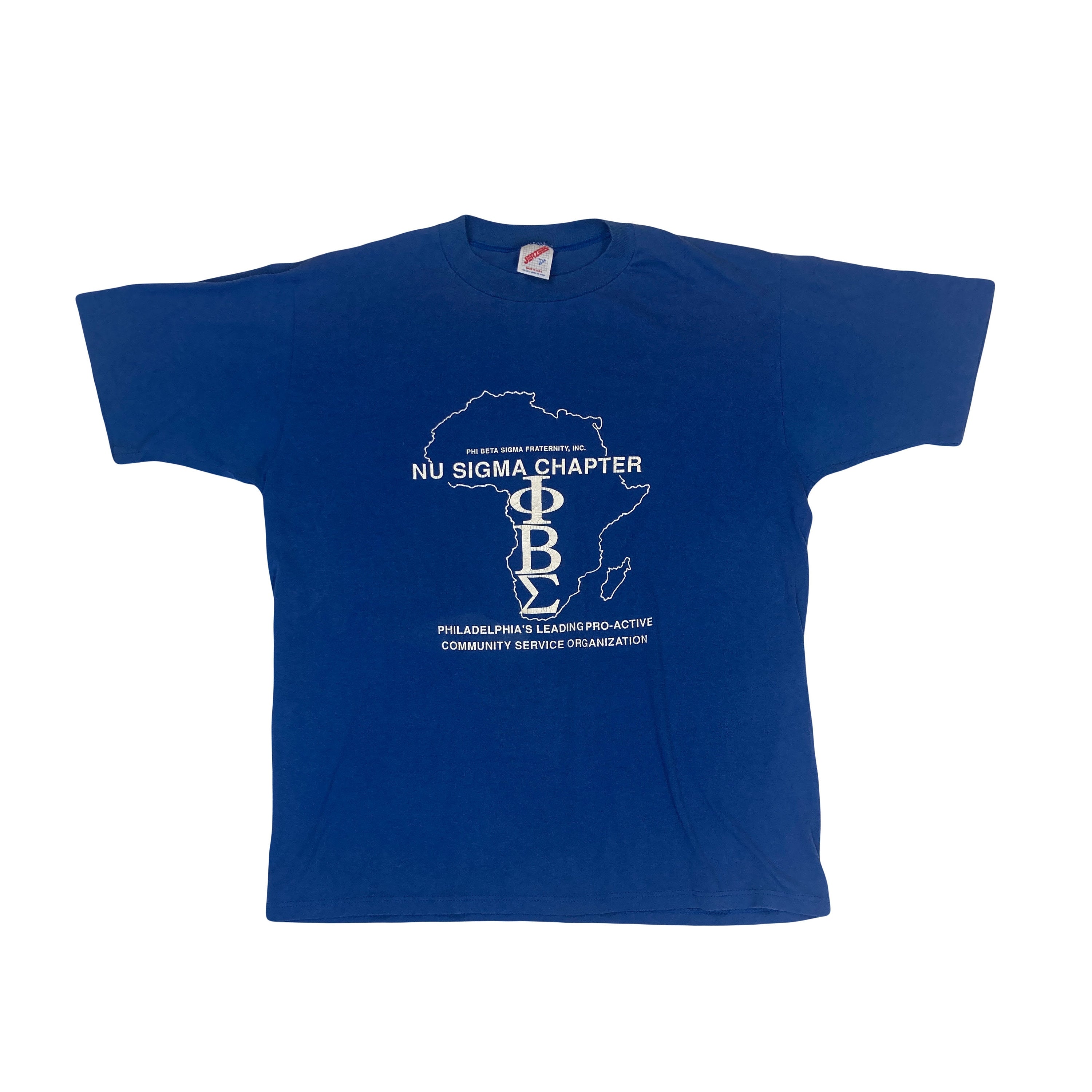 Vintage 90s Nu Sigma Chapter Philadelphia USA souvenir blue t shirt size large