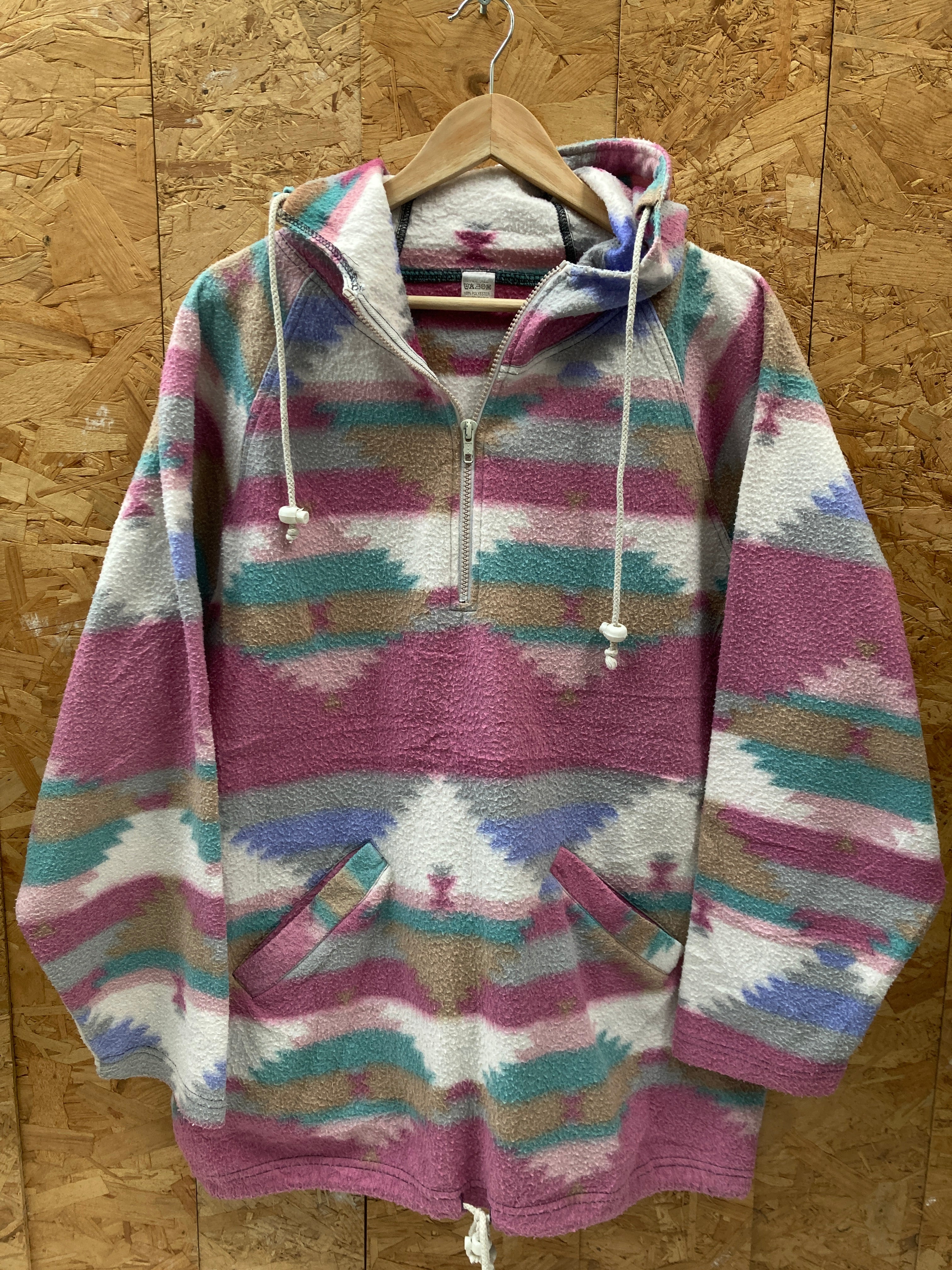 Vintage 90s pastel pink green aztec navajo pattern quarter zip fleece size XL - size label faded, fits as XL