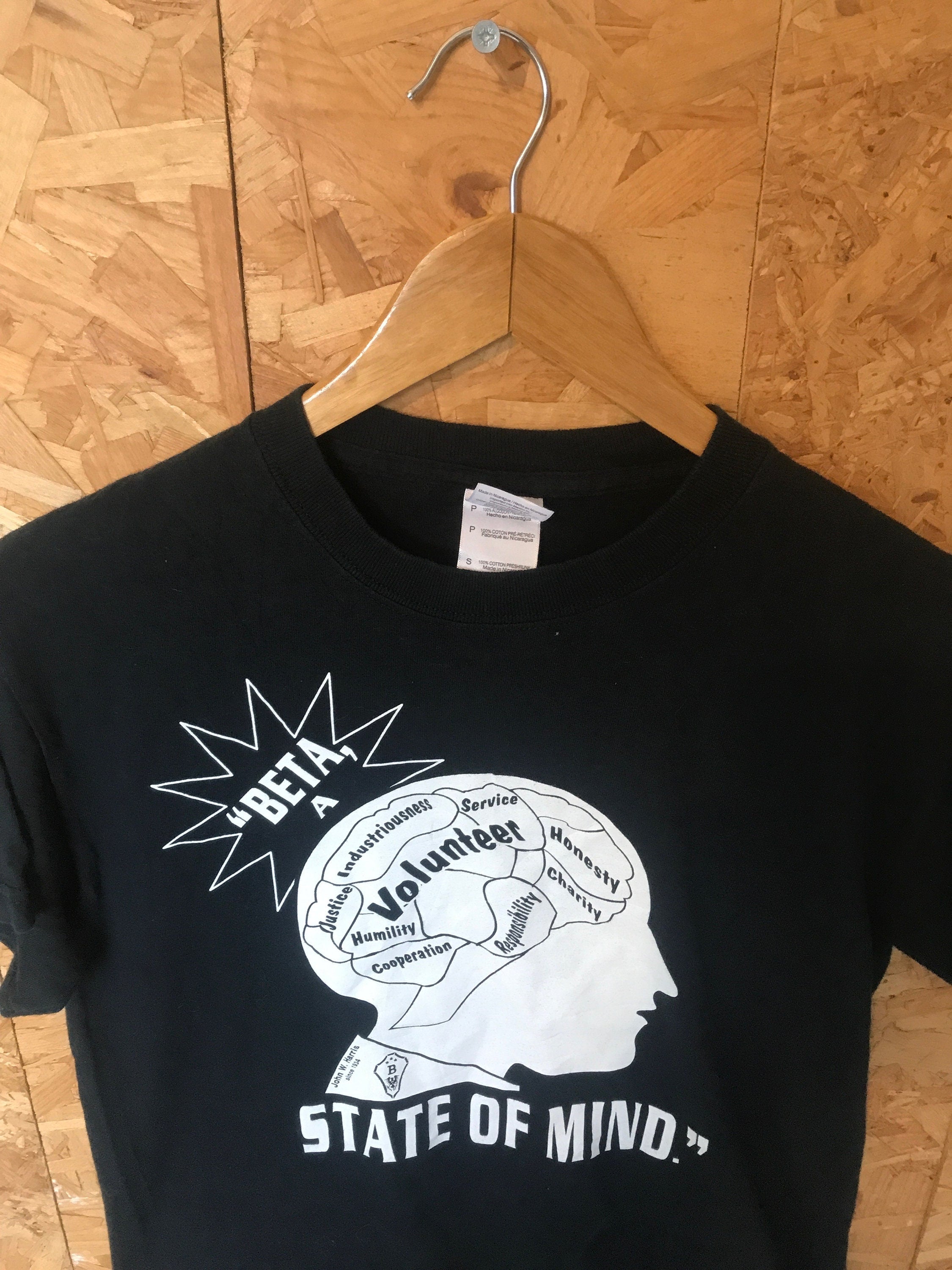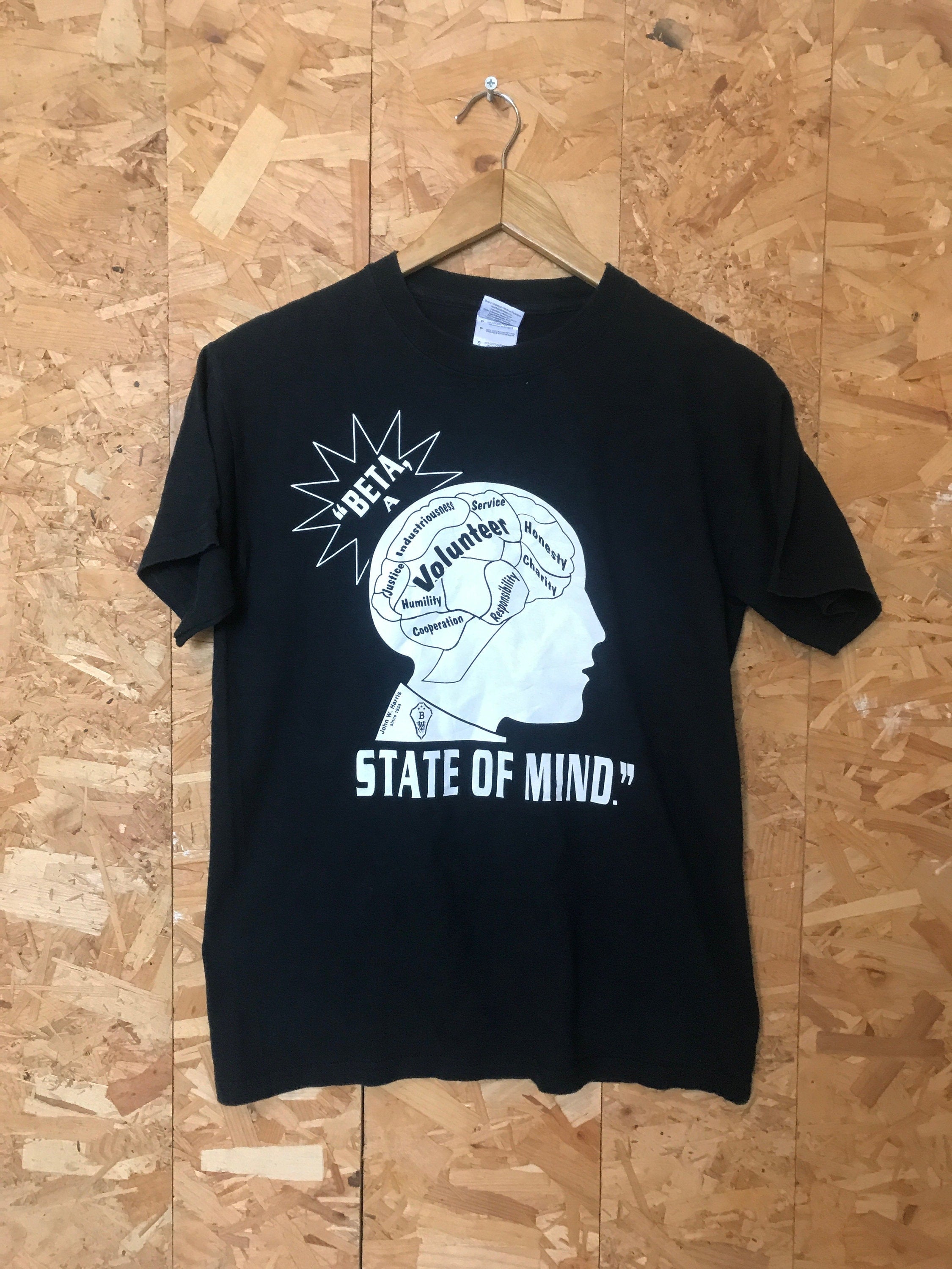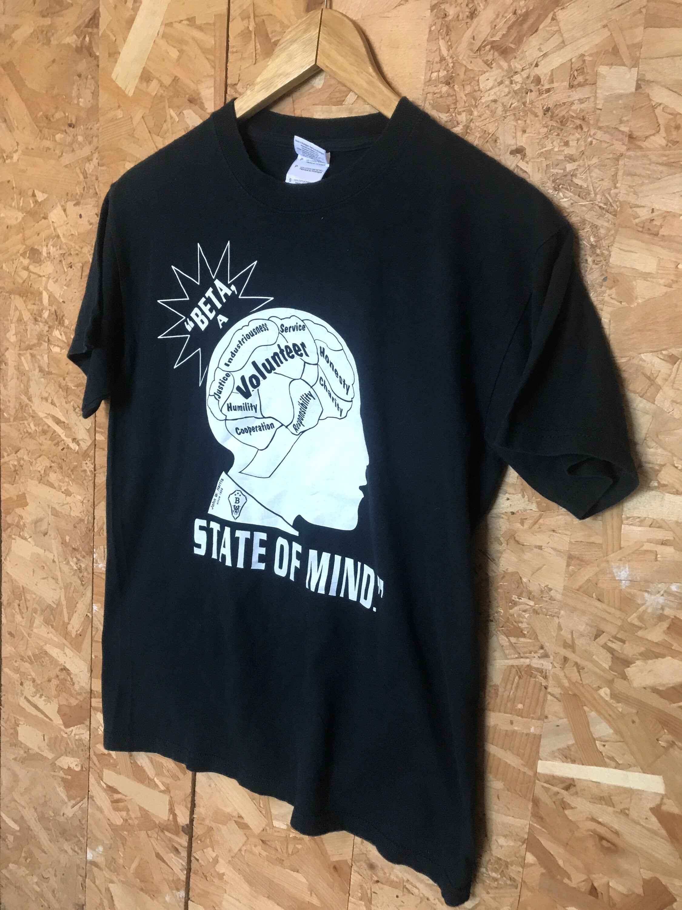 Vintage 90s quirky nerdy science Beta A 'State of Mind' USA faded black souvenir t-shirt size small