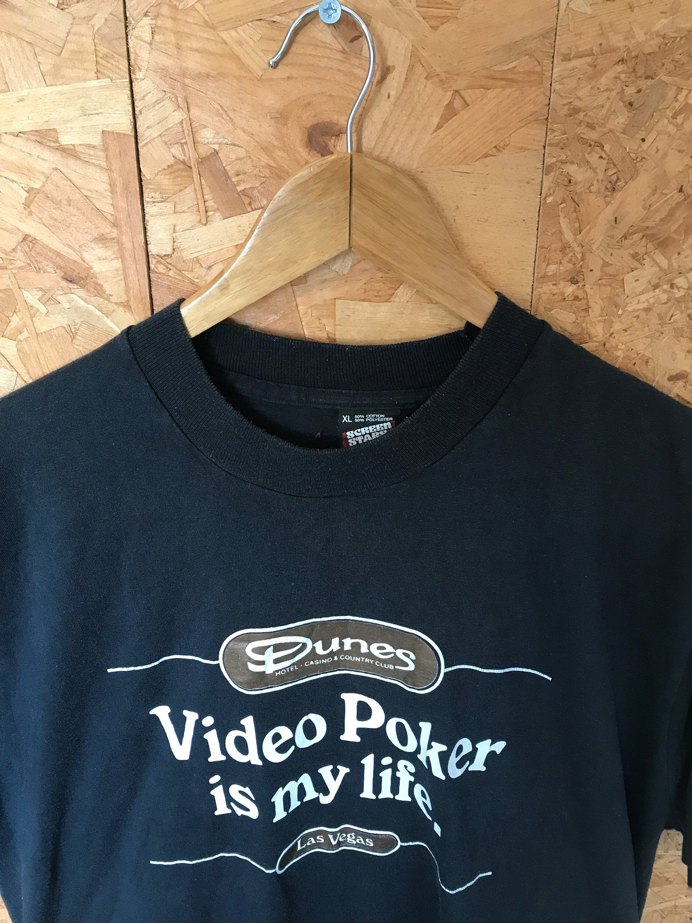 Vintage 90s quirky Video Poker Is My Life Dunes Las Vegas USA black souvenir t-shirt size X-Large