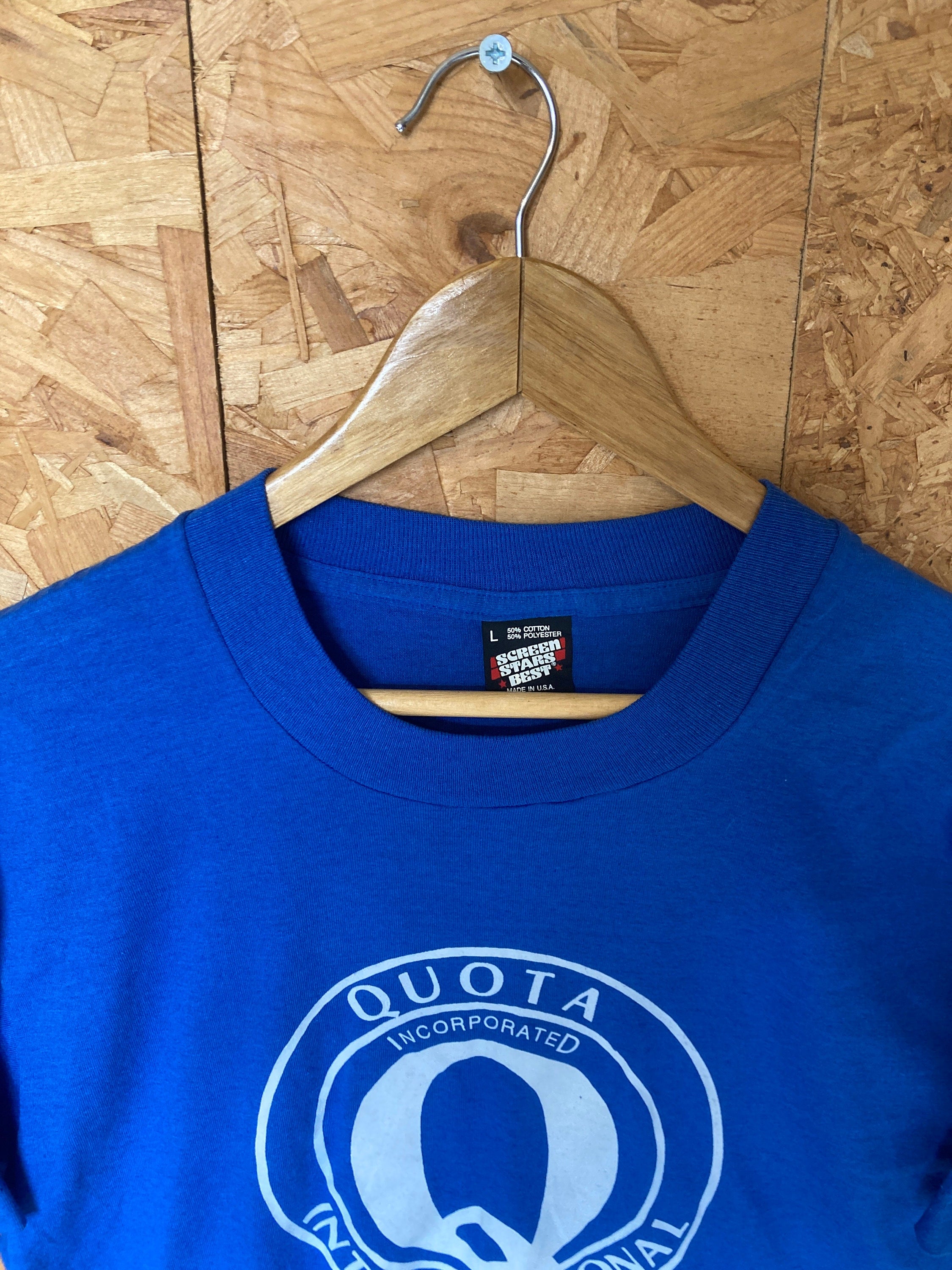 Vintage 90s Quota Club of Monroe USA souvenir workers promotional blue single stitch quirky t-shirt size large
