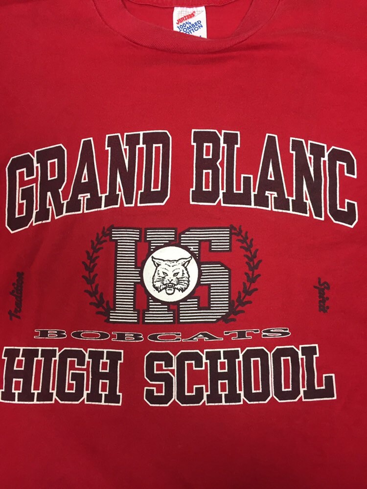 Vintage 90s red Grand Blanc Bobcats High School USA college souvenir t shirt size large