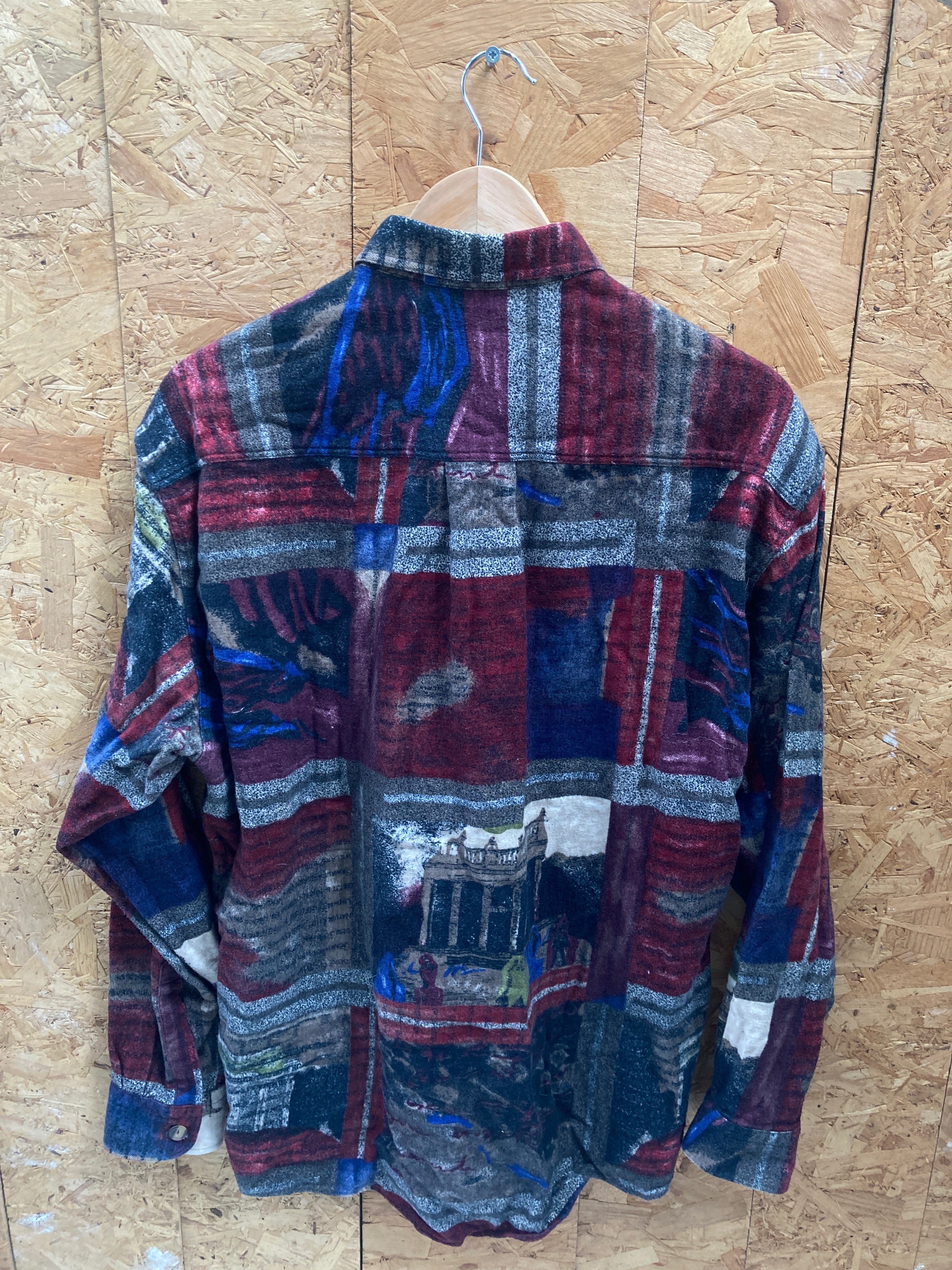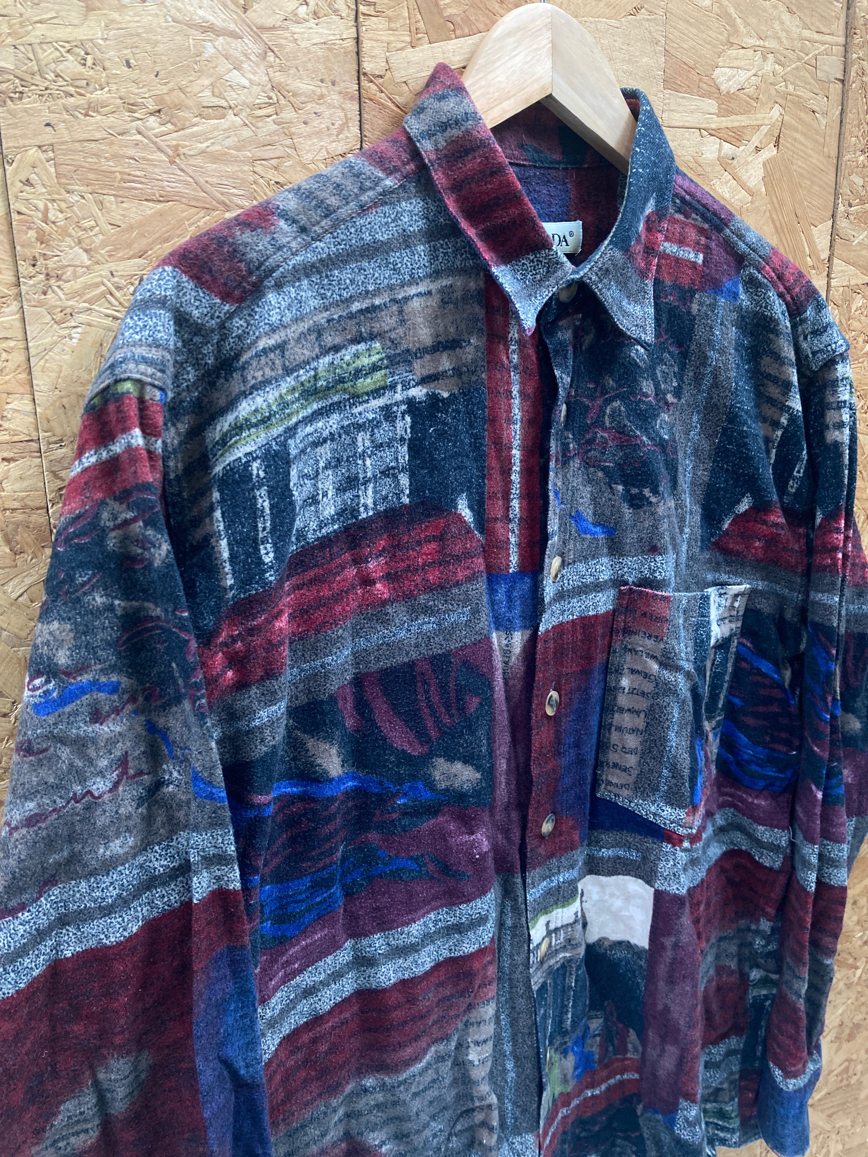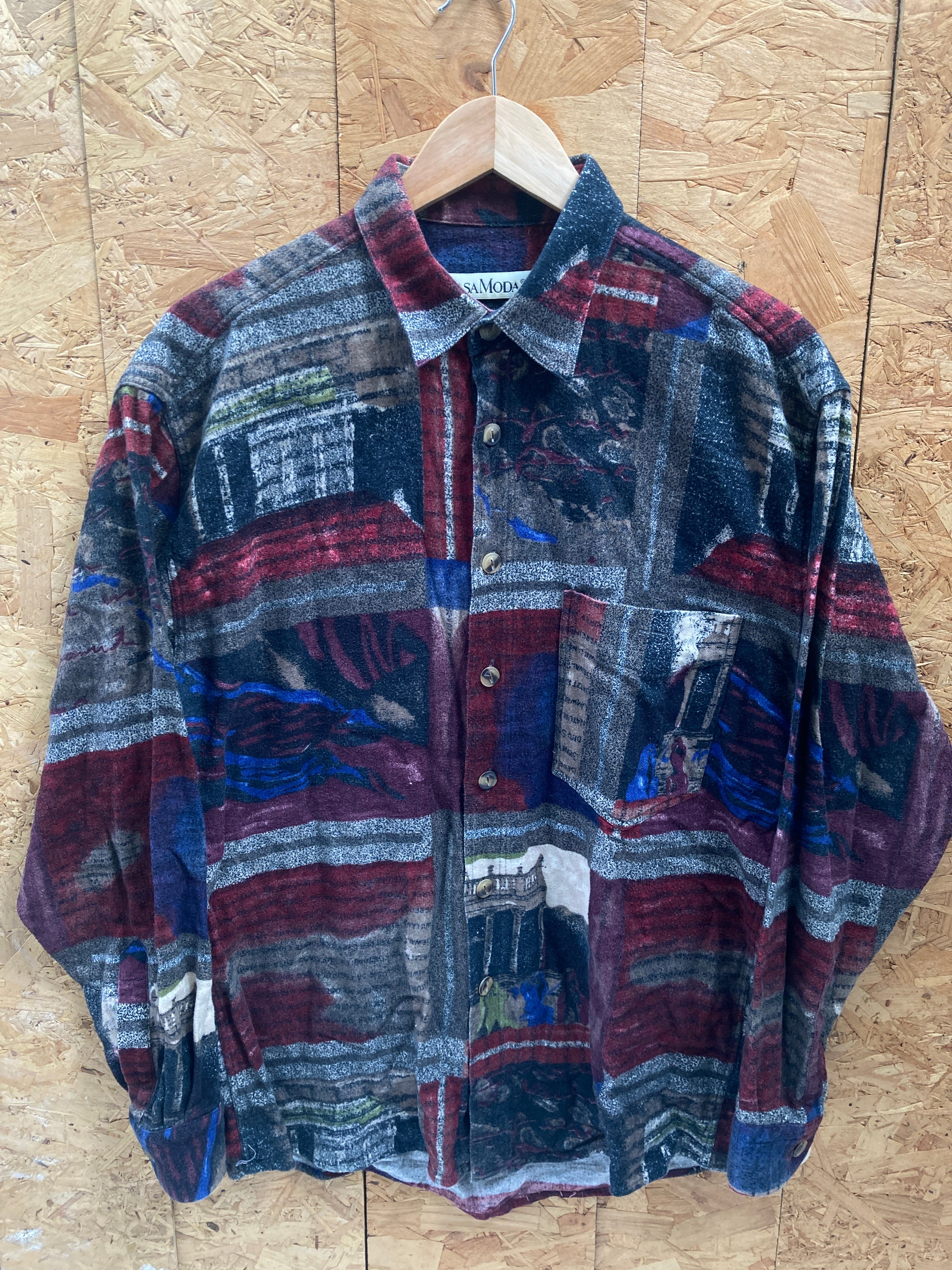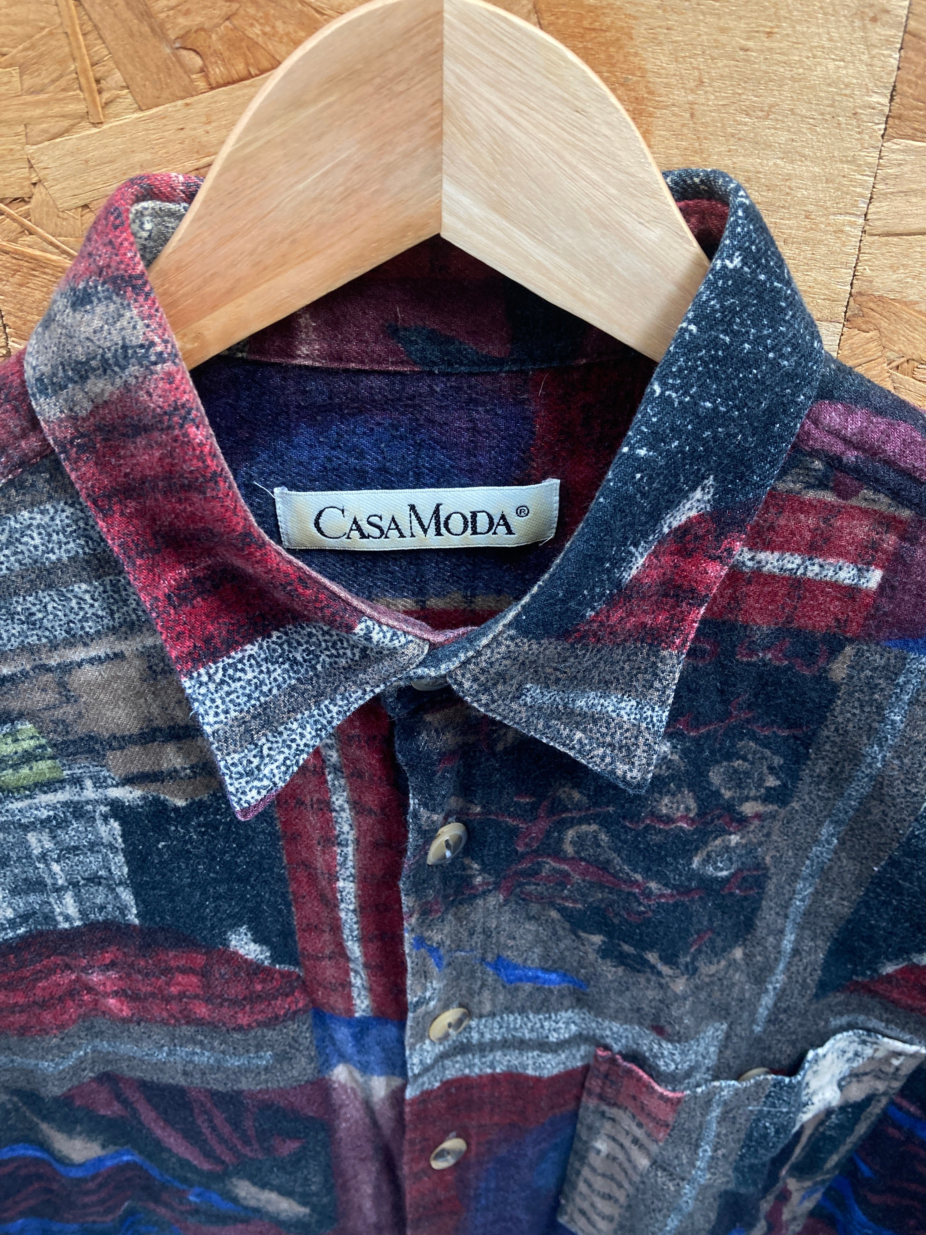 Vintage 90s red grey blue abstract pattern chamois felt long sleeve shirt size large by CasaModa - size label faded fits as a UK large or US medium please check measurements.