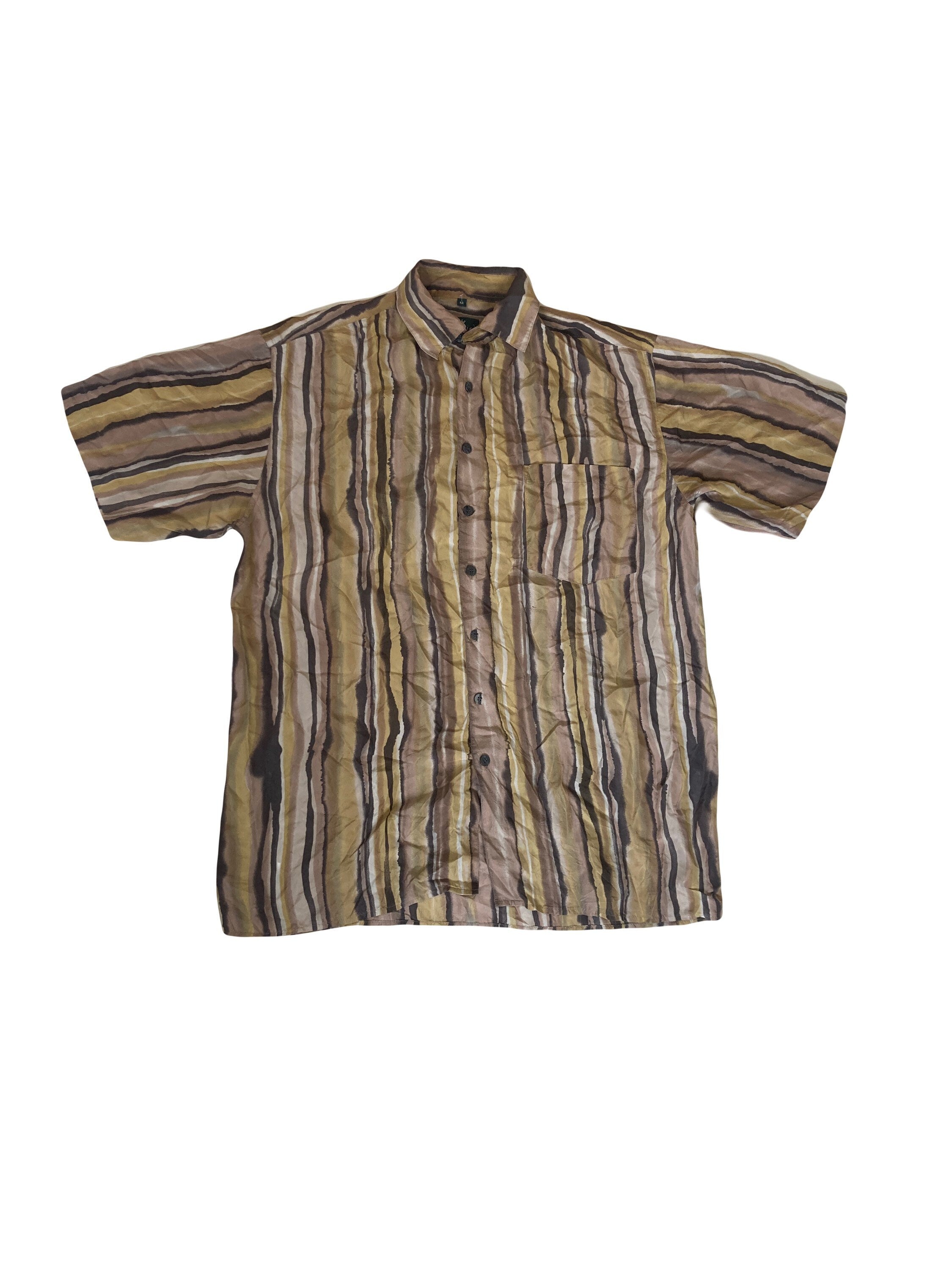 Vintage 90s Silk striped shirt with abstract ethnic brown and beige animal