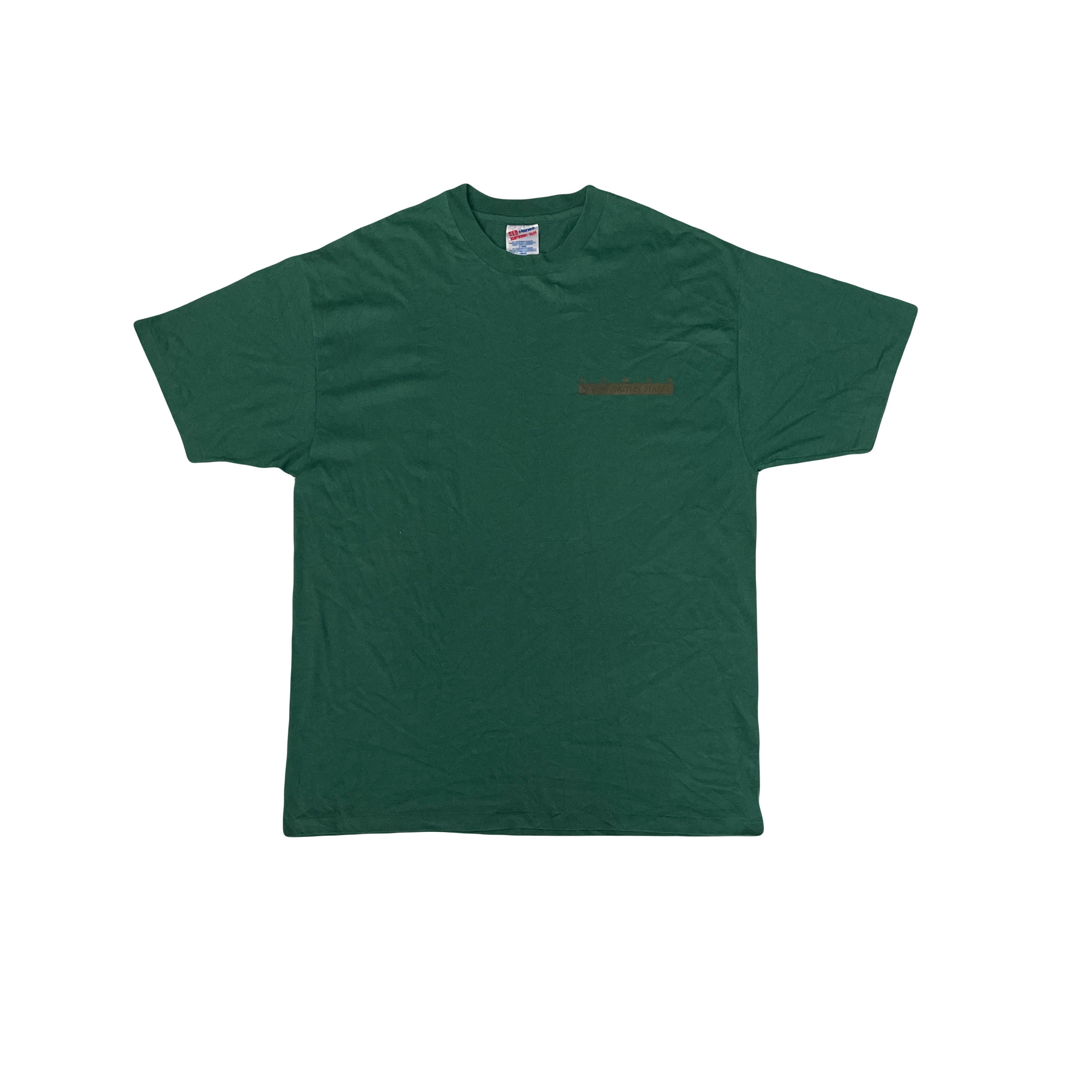 Vintage Hanes t-shirt in dark green. Size XL. Features a small graphic print on the chest. 84 Bennington Street Great condition, minimal wear. Perfect for casual wear. Color: Green.