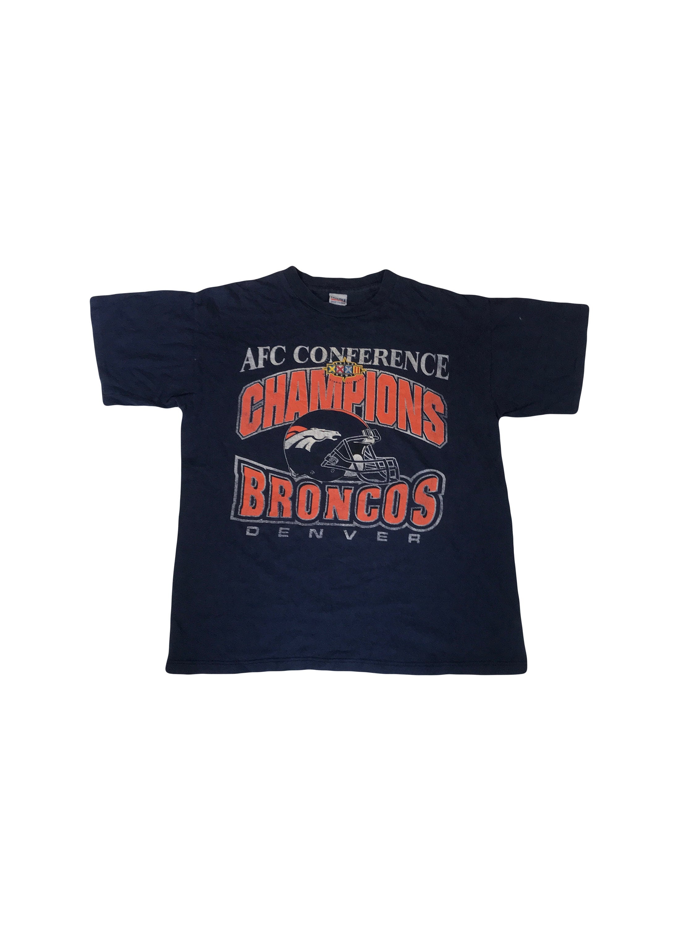 Vintage 90s superbowl XXXII Denver Broncos AFC champions USA souvenir distressed navy blue t-shirt size large