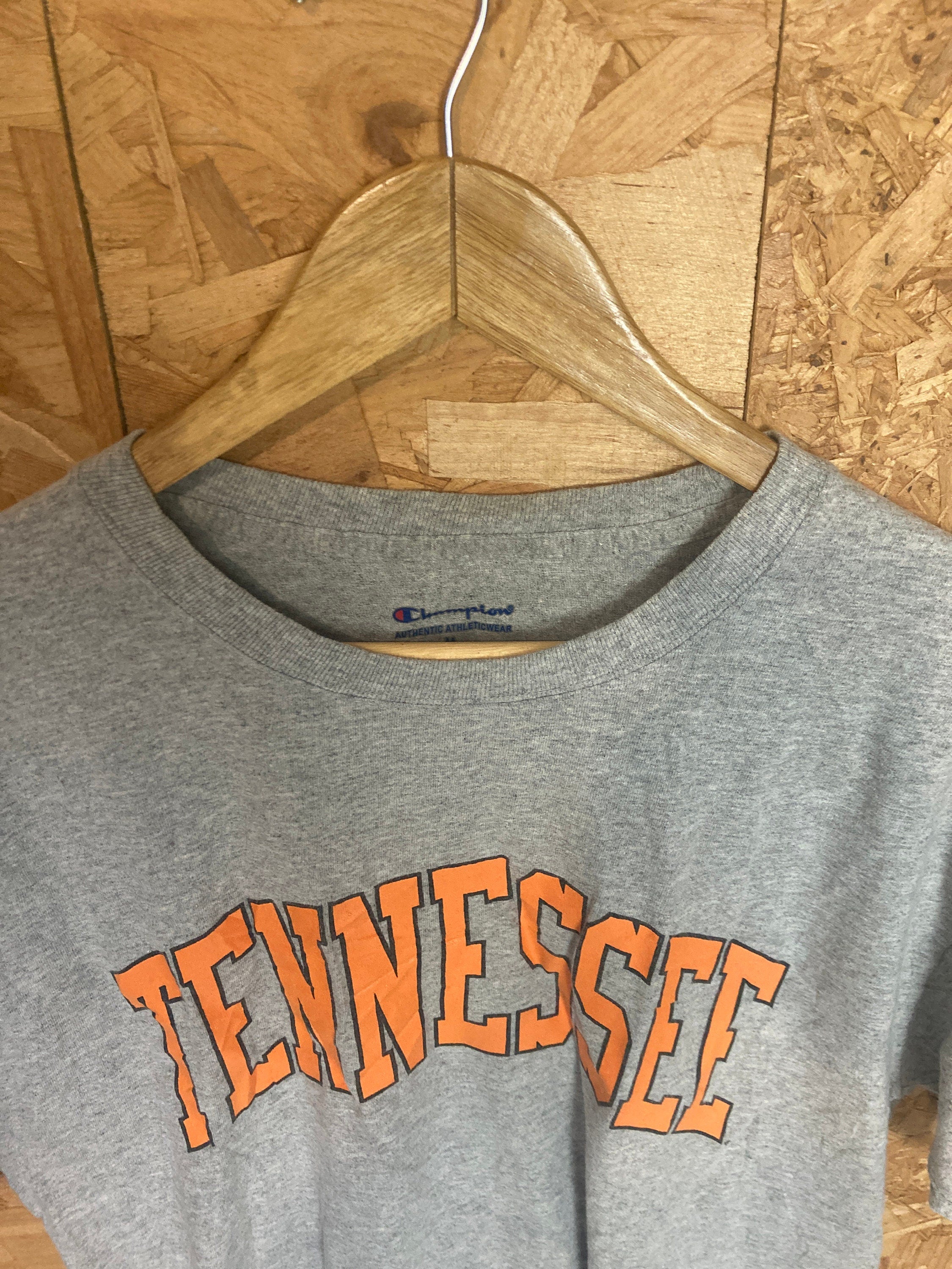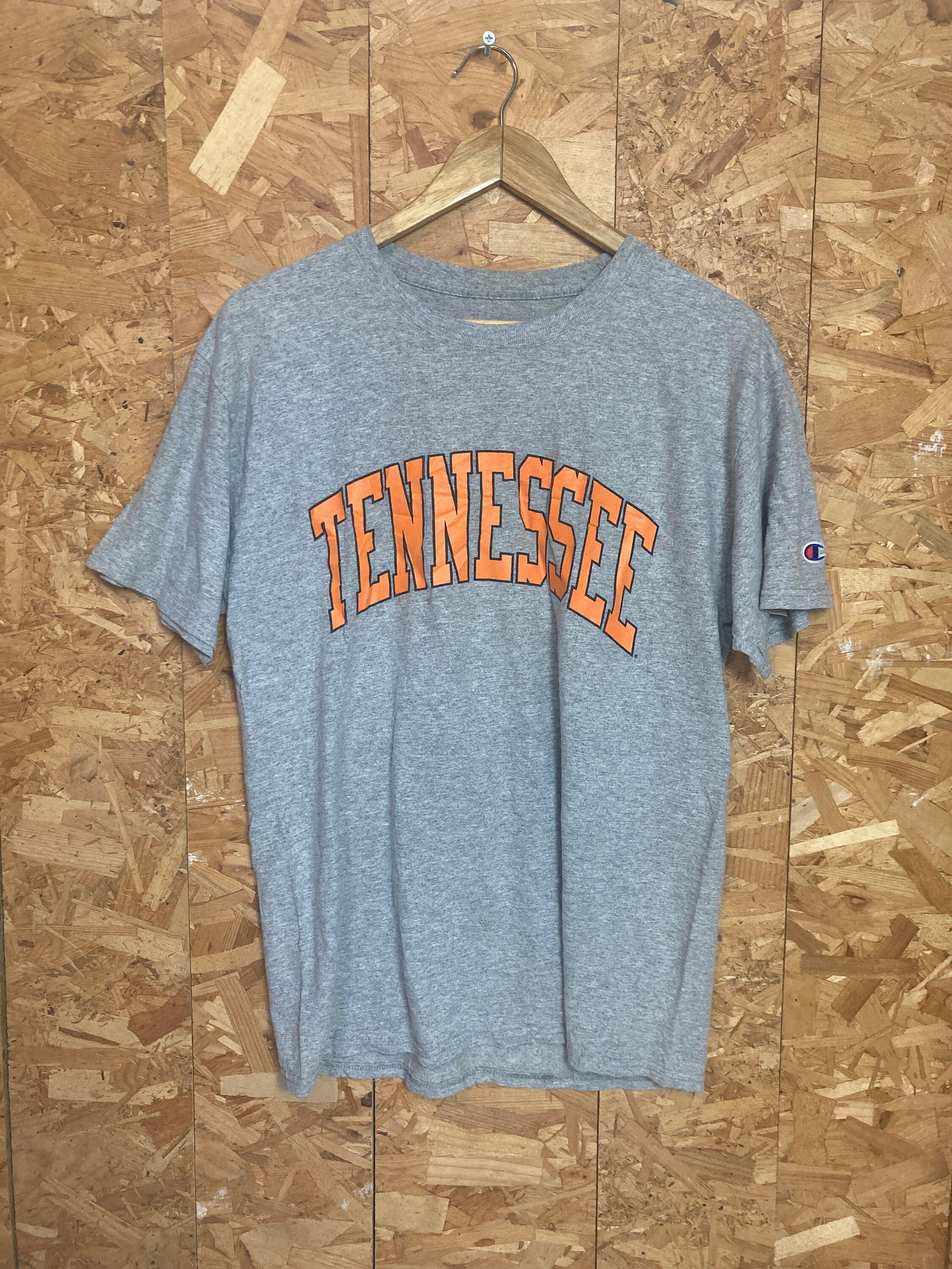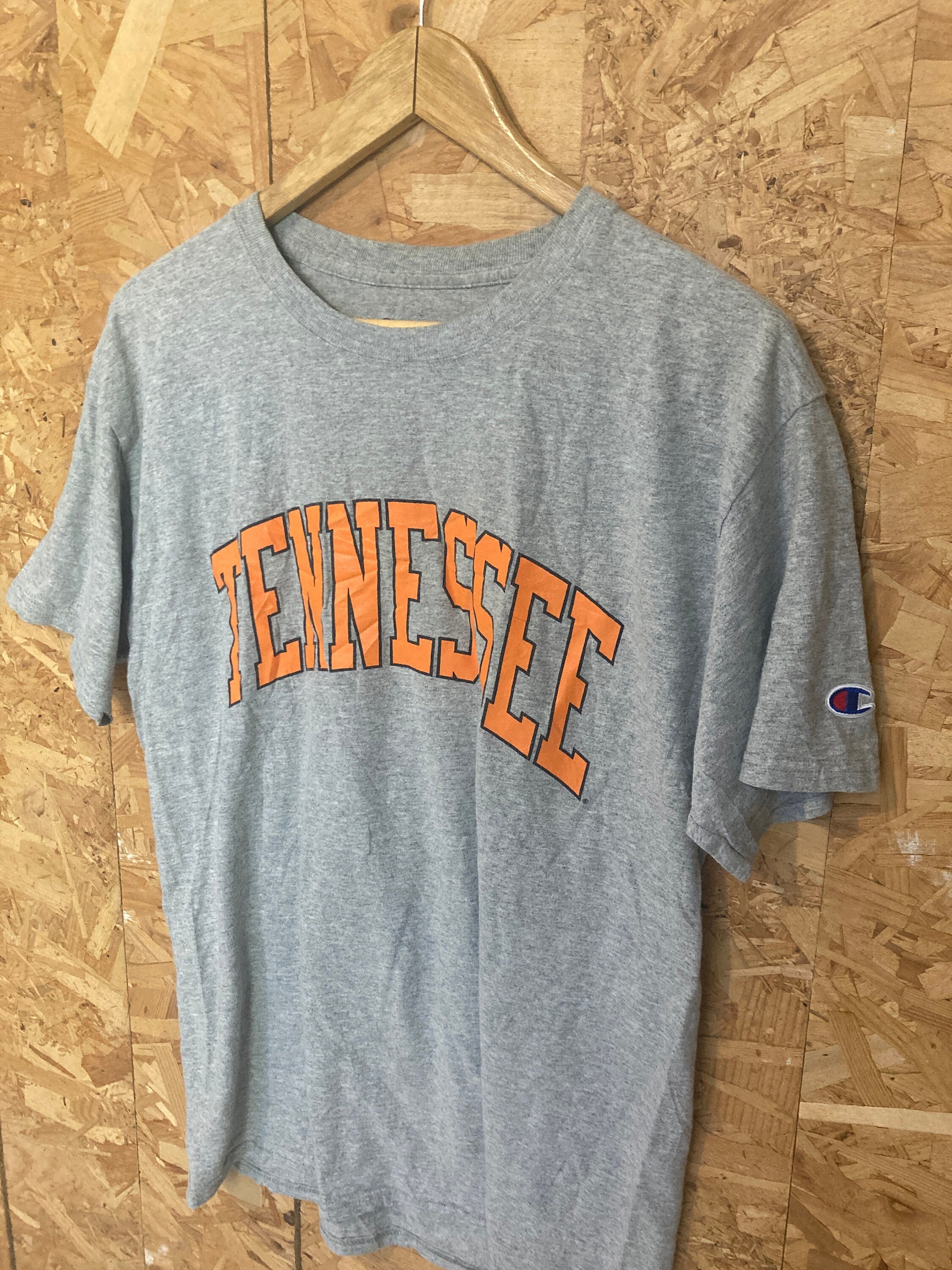 Vintage 90s Tennessee yellow spell out USA college athletics souvenir grey marl t-shirt size medium by Champion