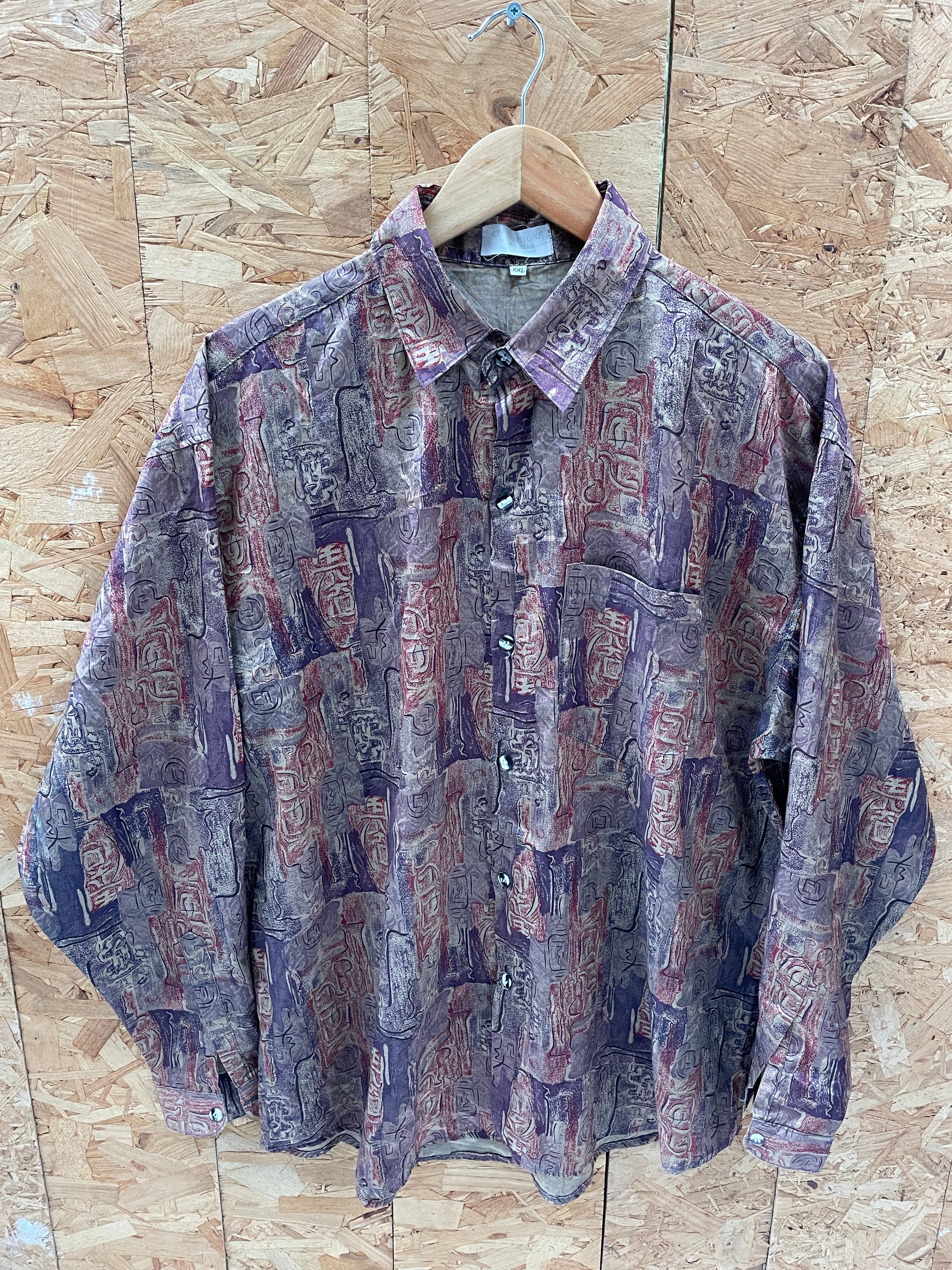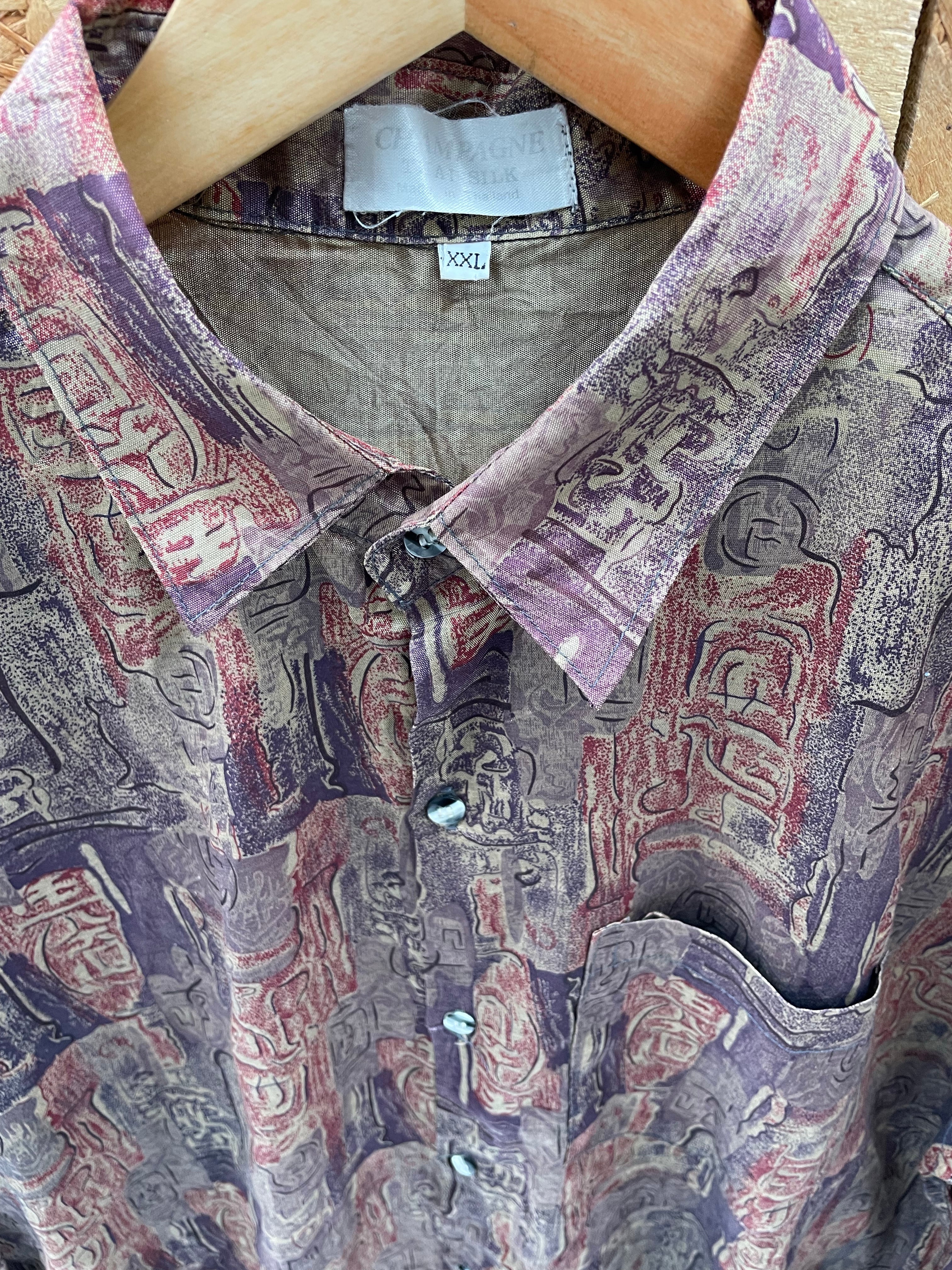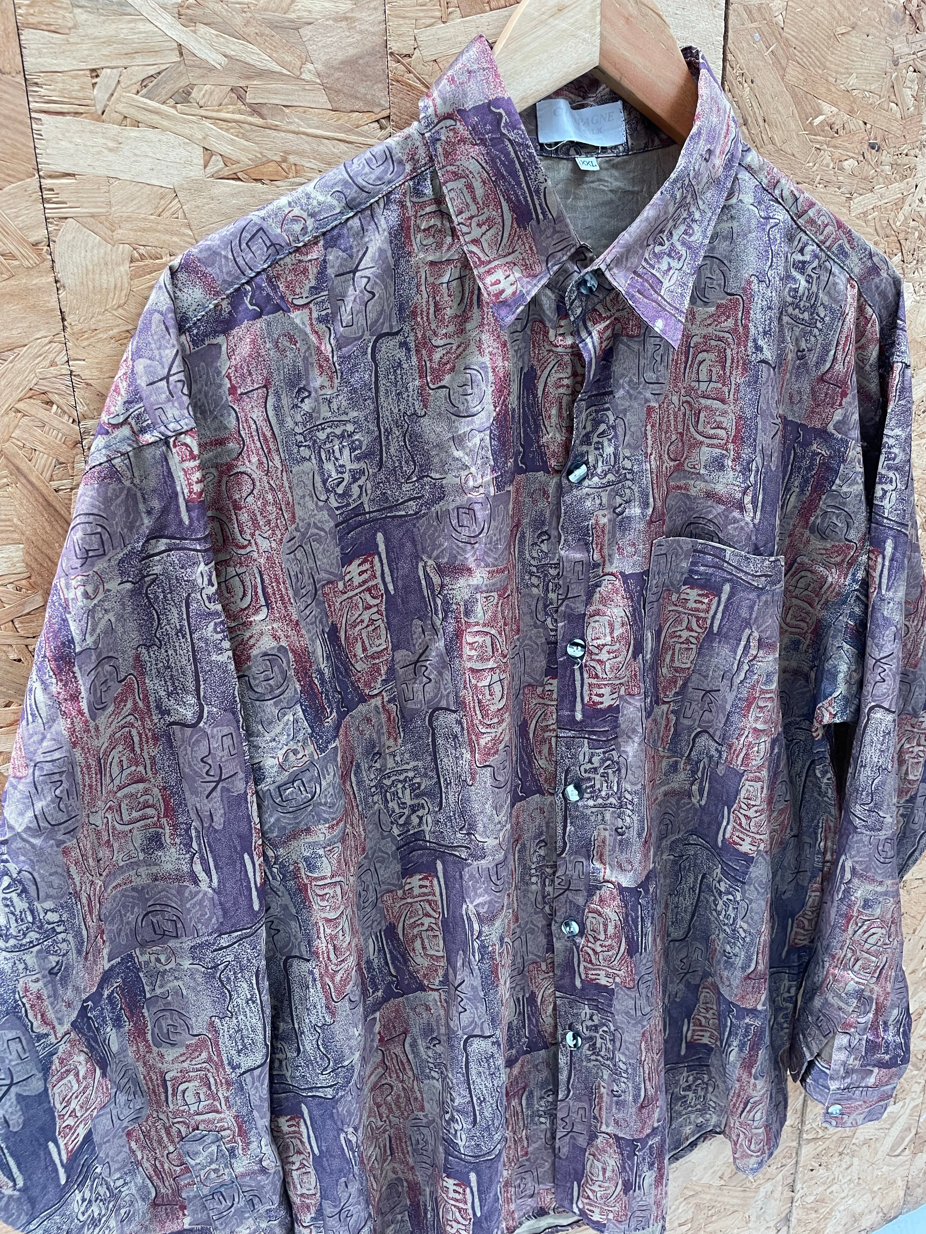 Vintage long sleeve button up shirt with an abstract print. The shirt is in good condition and is a size XXL. Perfect for adding a unique touch to your wardrobe. Fits as XL Color: Multicolor.