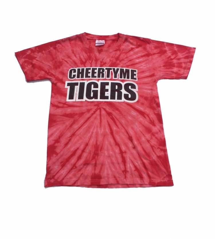 Vintage 90s tie dye red pink Cheertyme Tigers USA college psychedelic rave t shirt size small